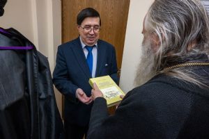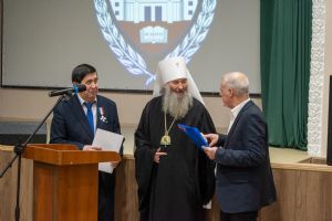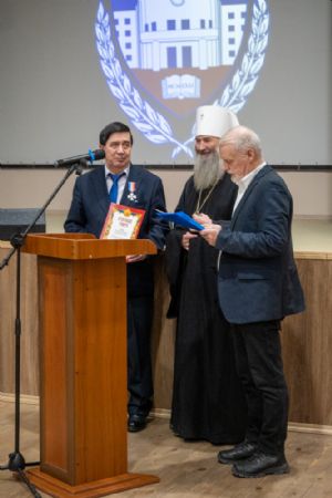 Митрополит Иоанн также за большой вклад в изучении истории Православия в Марийском крае отметил Архиерейской грамотой заведующего кафедрой всеобщей истории МарГУ, доктора исторических наук Юрия Анатольевича Зеленева.