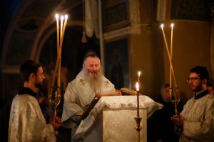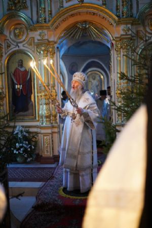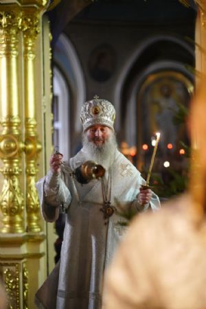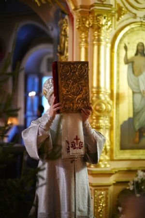 Сегодня мы стали участниками великого водоосвящения, когда Господь послал Духа святого, утешающего каждого человека, и освятилась вода, которую каждый из нас возьмет с собой, как великую святыню – агиасму, которою будет с верою вкушать, с благоговением окроплять свое тело, свои дома… Великой святыней этой освящается вся вселенная. Дух Святой, который управляет Церковью Христовой, оживотворяет всех, пришедших в храм Божий, и уже на всенощном бдении сегодня вечером перед нашим взором совершится великое таинство, непостижимое для ума человеческого, – Бог явит Себя в трех Лицах, открывая для каждого из нас милость и любовь Господню».