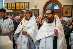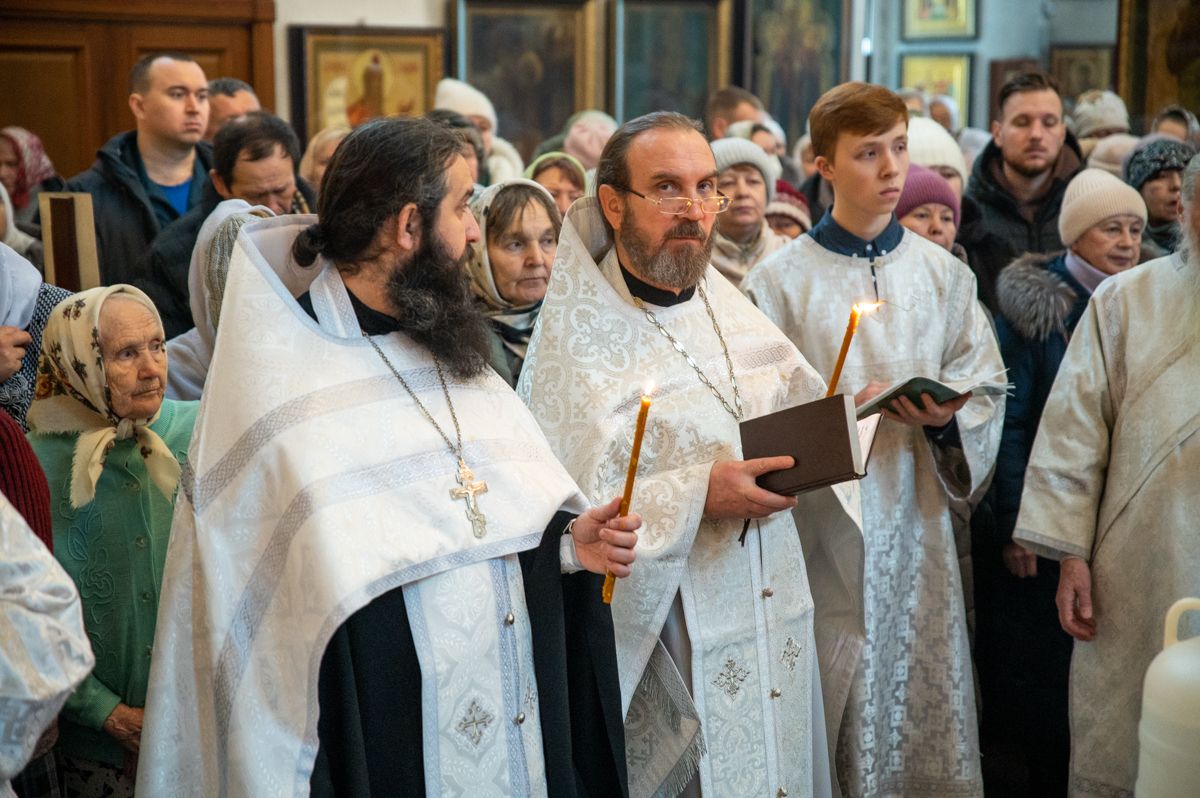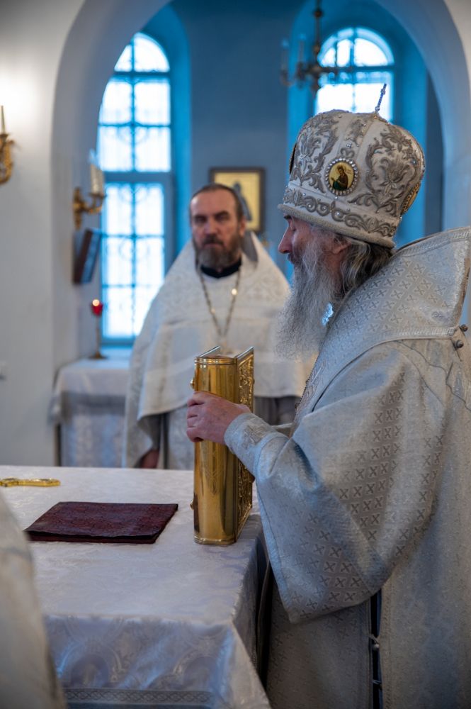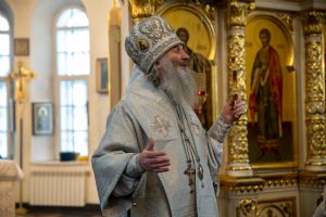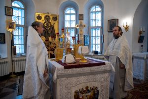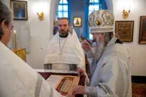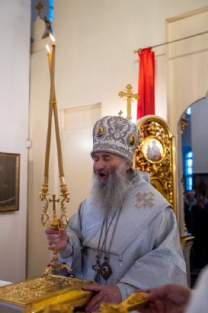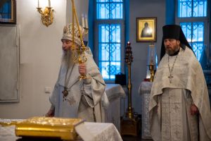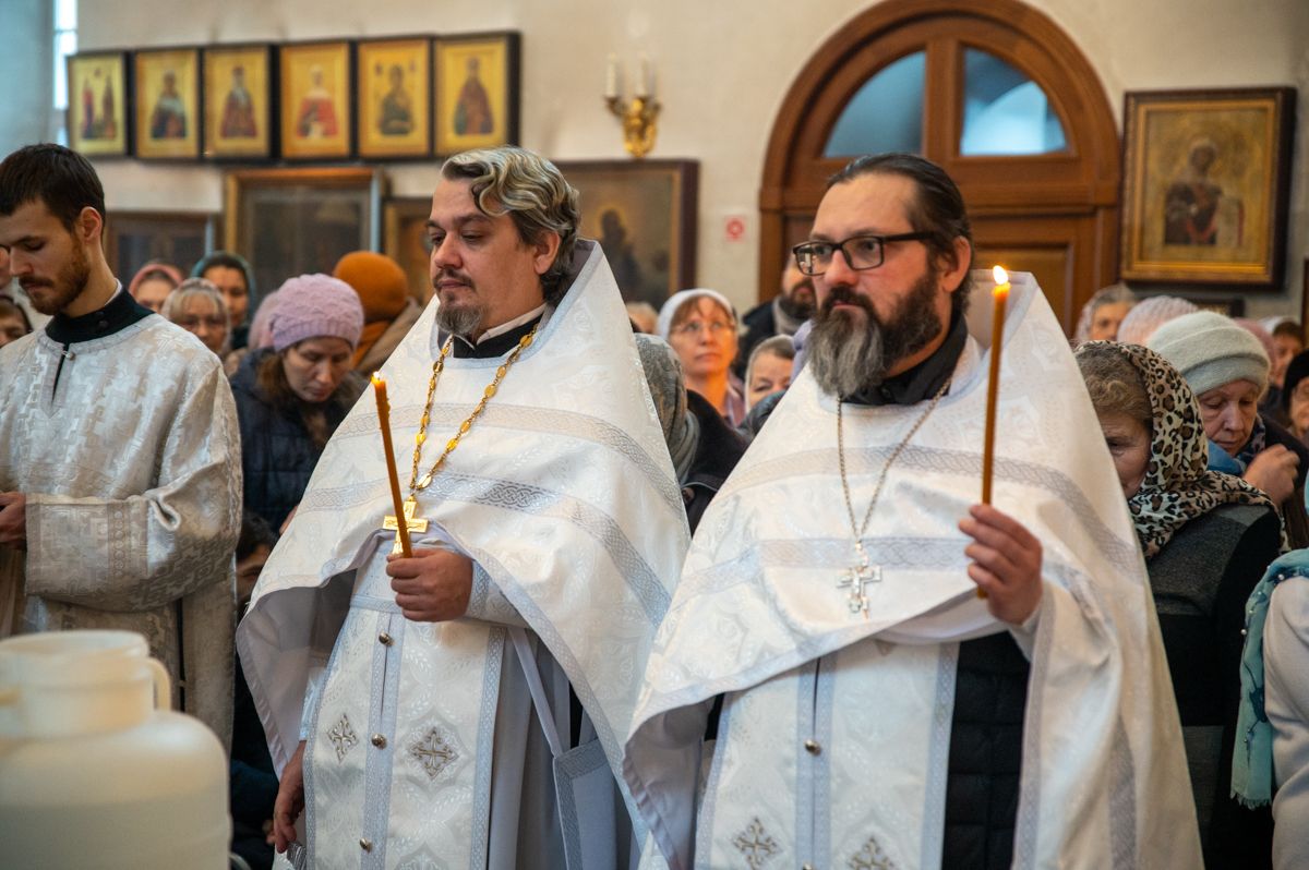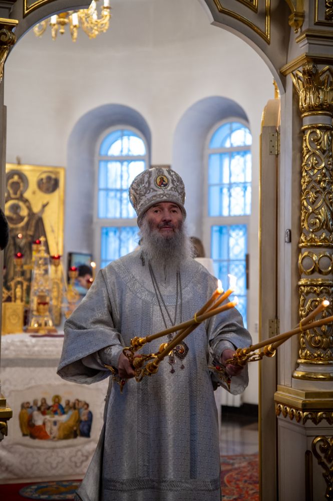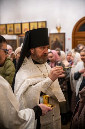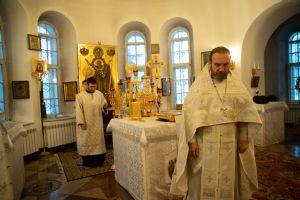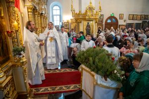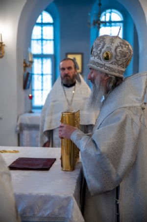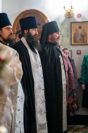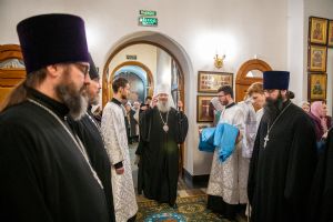 Его Высокопреосвященству сослужили секретарь Йошкар-Олинского епархиального управления иеромонах Серафим (Пасанаев), настоятель храма иерей Александр Лоскутов, клирики храма и протодиакон Михаил Козловский. Песнопения исполнял хор храма под управлением регента Наталии Поповой.