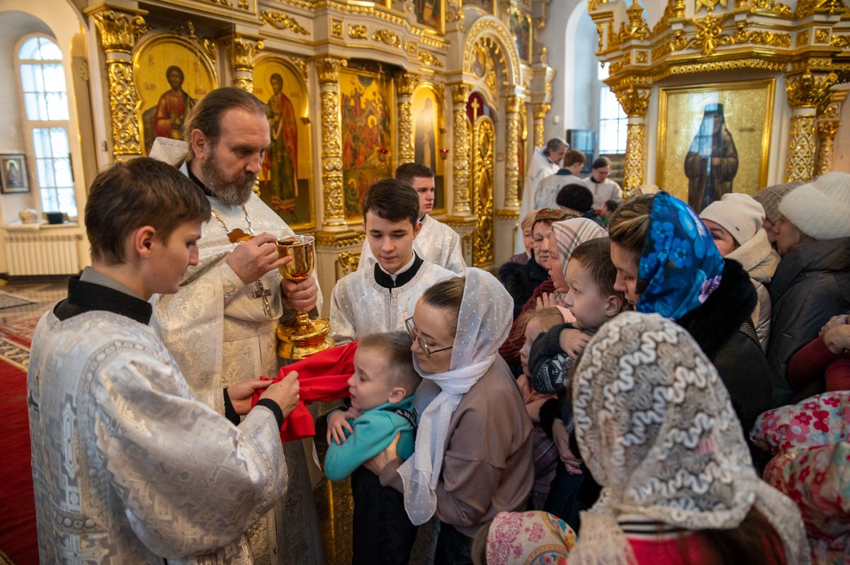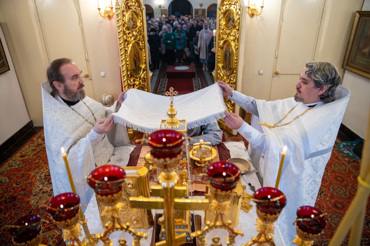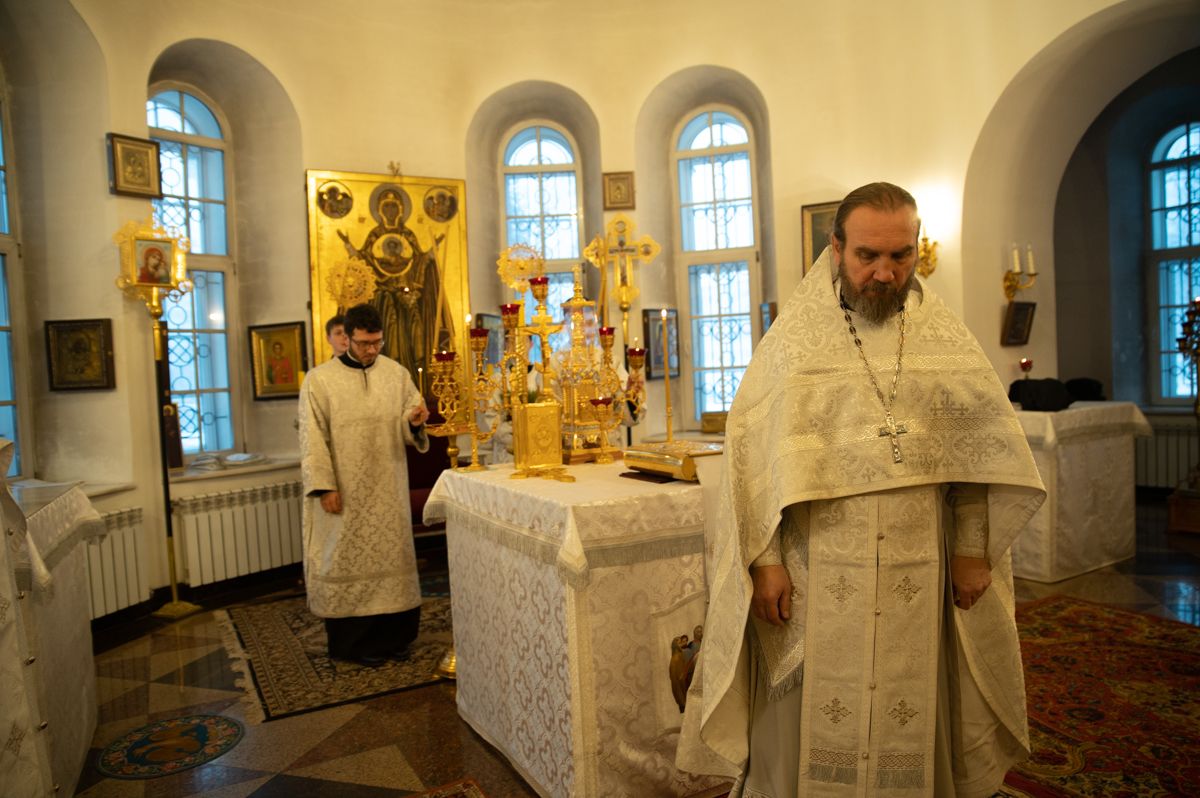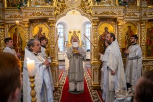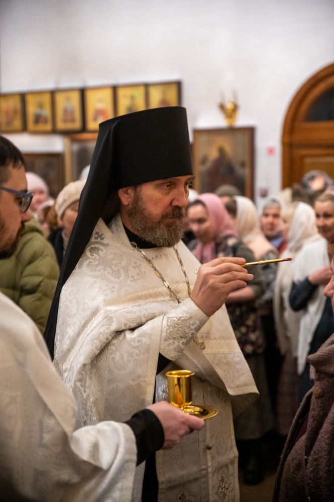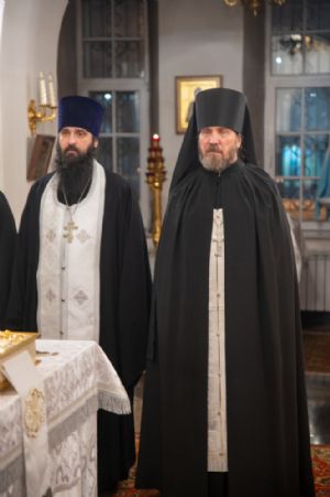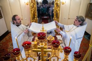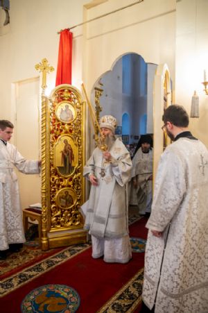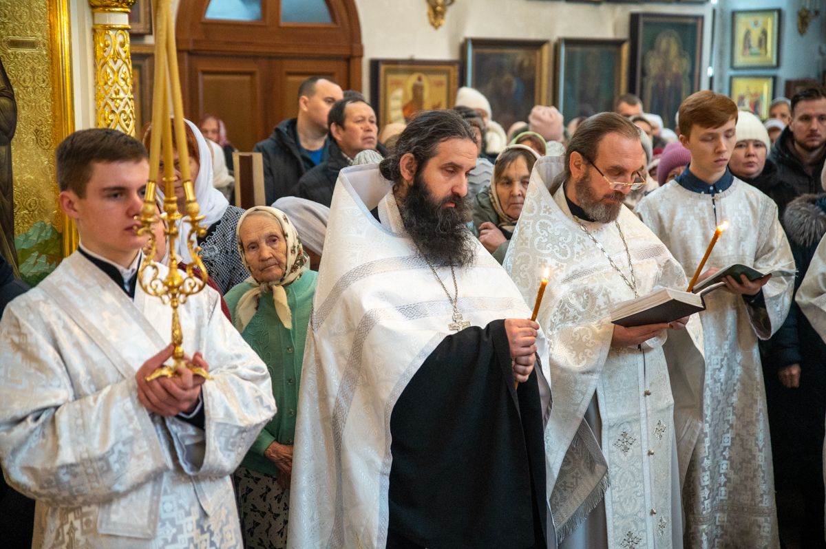 Его Высокопреосвященству сослужили секретарь Йошкар-Олинского епархиального управления иеромонах Серафим (Пасанаев), настоятель храма иерей Александр Лоскутов, клирики храма и протодиакон Михаил Козловский. Песнопения исполнял хор храма под управлением регента Наталии Поповой.