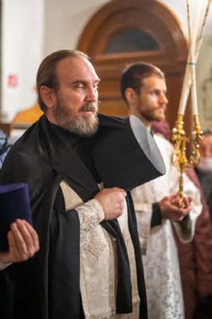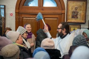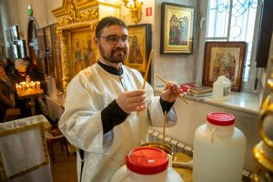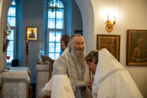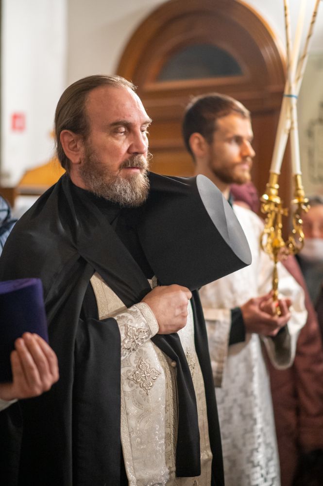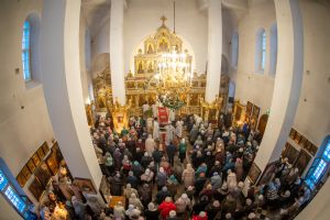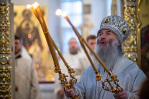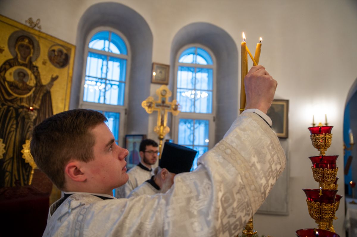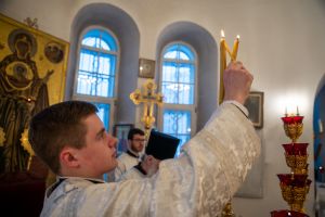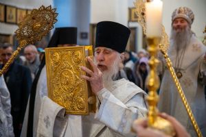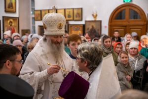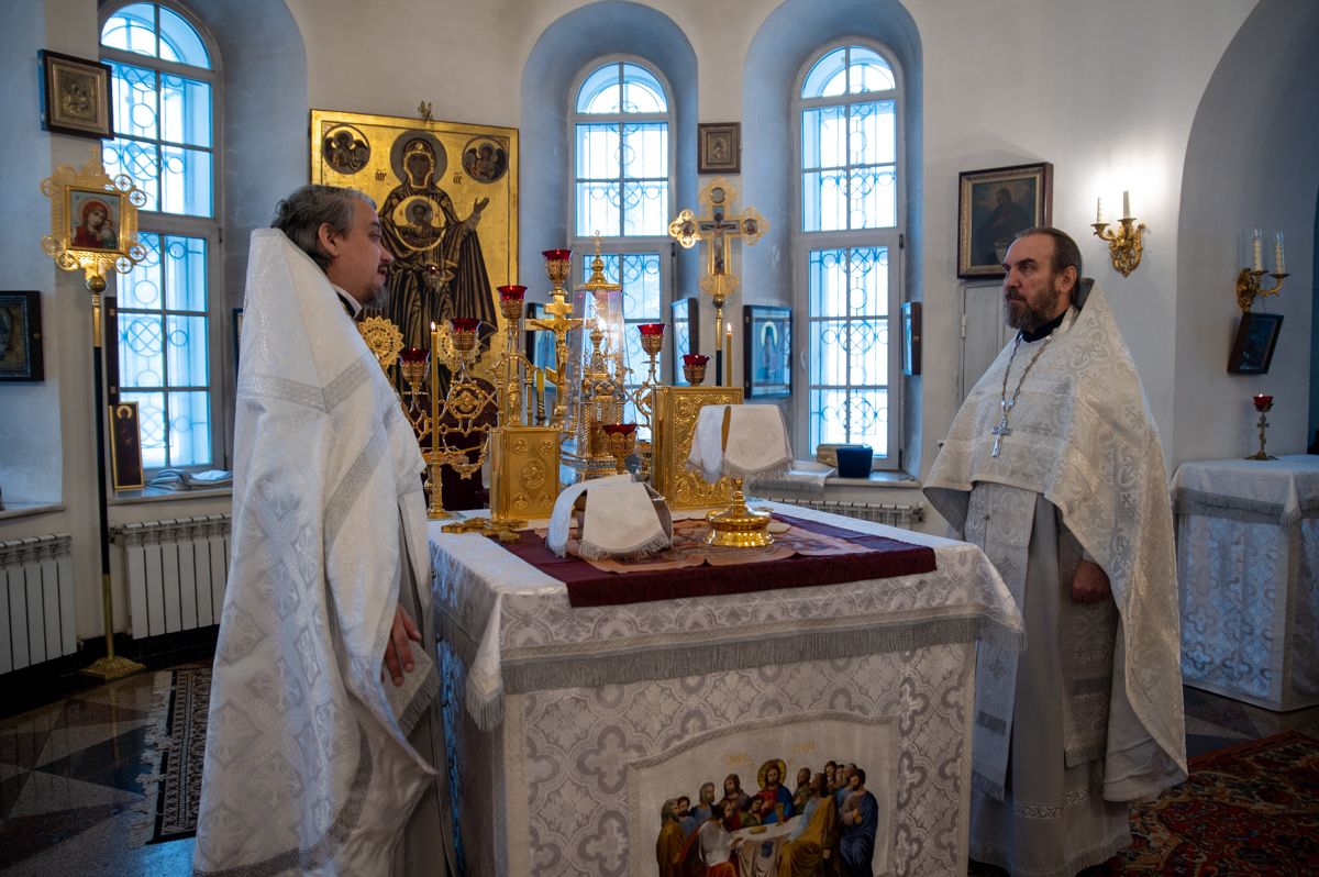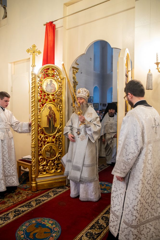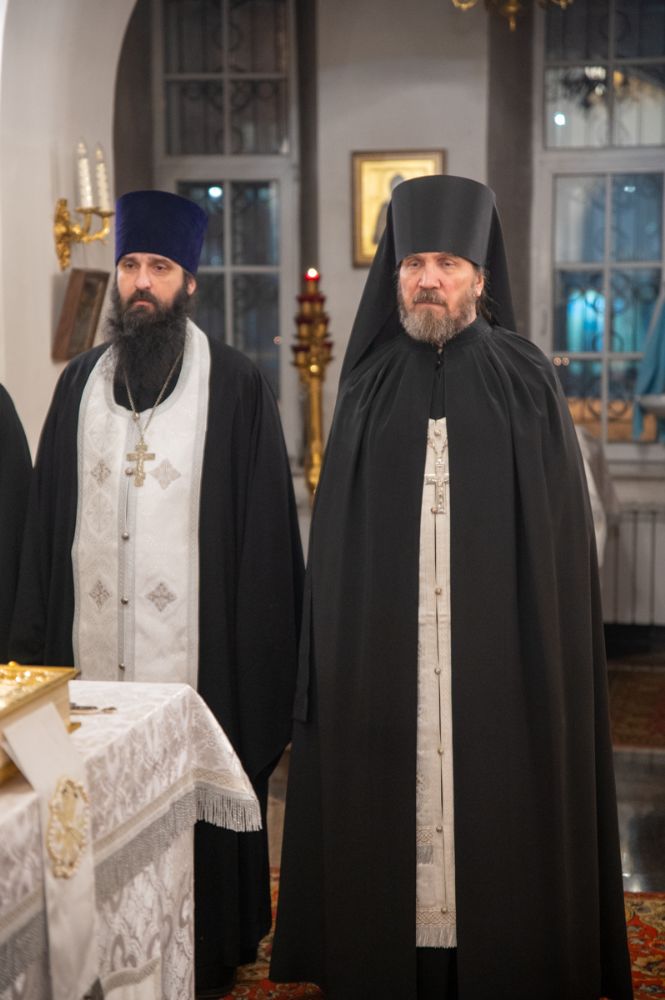Его Высокопреосвященству сослужили секретарь Йошкар-Олинского епархиального управления иеромонах Серафим (Пасанаев), настоятель храма иерей Александр Лоскутов, клирики храма и протодиакон Михаил Козловский. Песнопения исполнял хор храма под управлением регента Наталии Поповой.