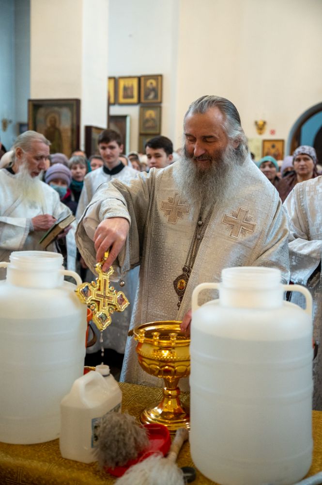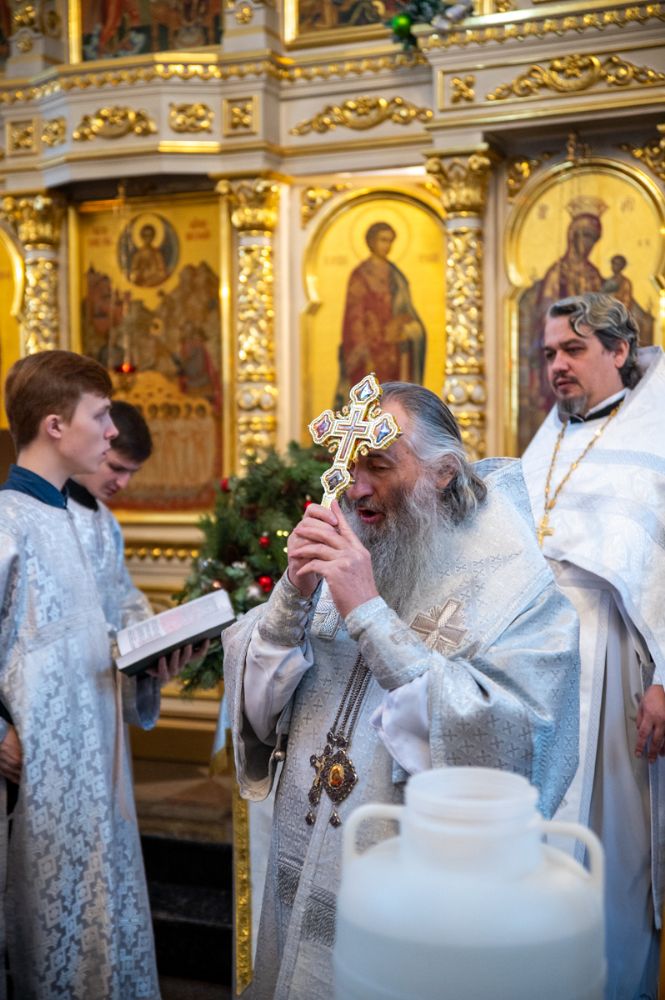 По окончании Литургии митрополит Иоанн возглавил чин великого освящения воды, после чего обратился к собравшимся с архипастырским словом, напомнив евангельские события праздника Богоявления и разъяснив его глубочайший духовный смысл.