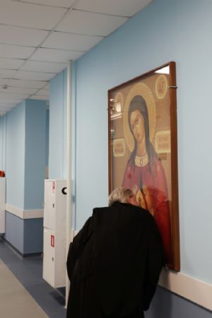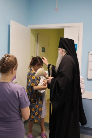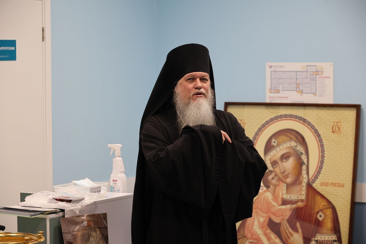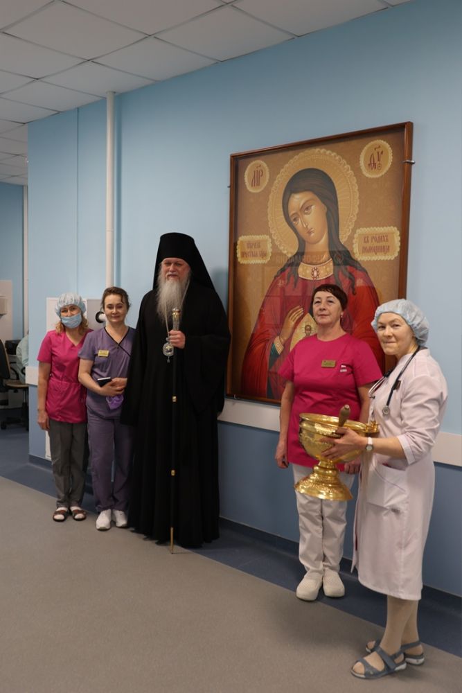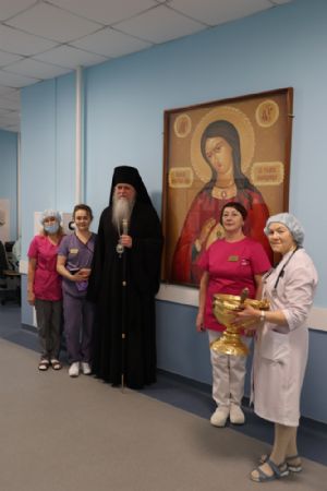 Владыка Феофан передал в дар на молитвенную помощь сотрудникам и пациентам отделения икону Божией Матери «Феодоровская», поздравил присутствующих с праздником Богоявления, окропил всех святой крещенской водой.