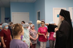 Медицинский персонал отделения архипастырь поблагодарил за их труд и подарил каждому книги духовного содержания.