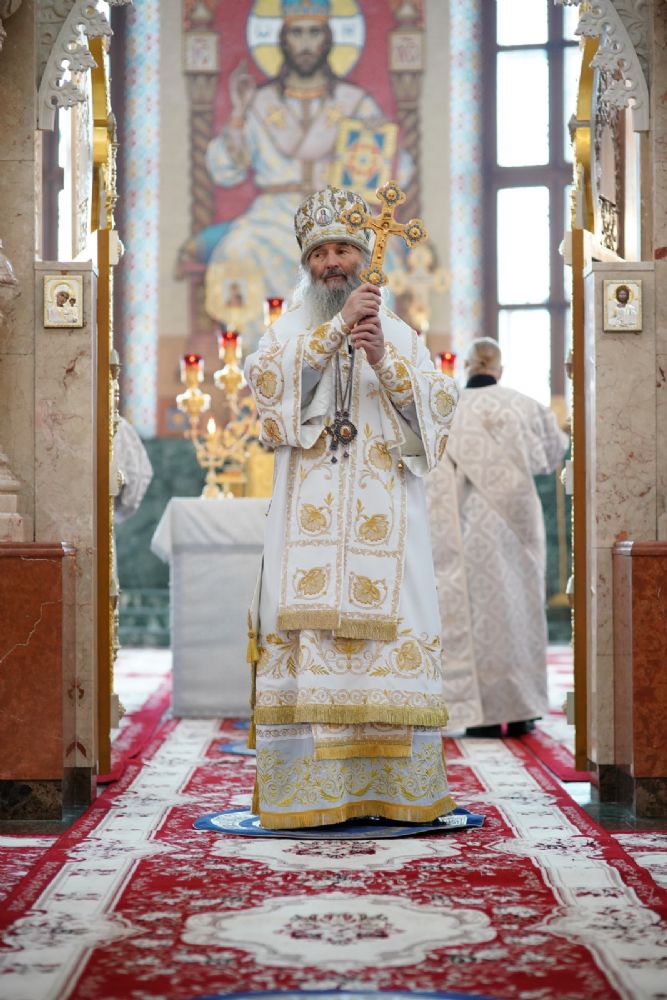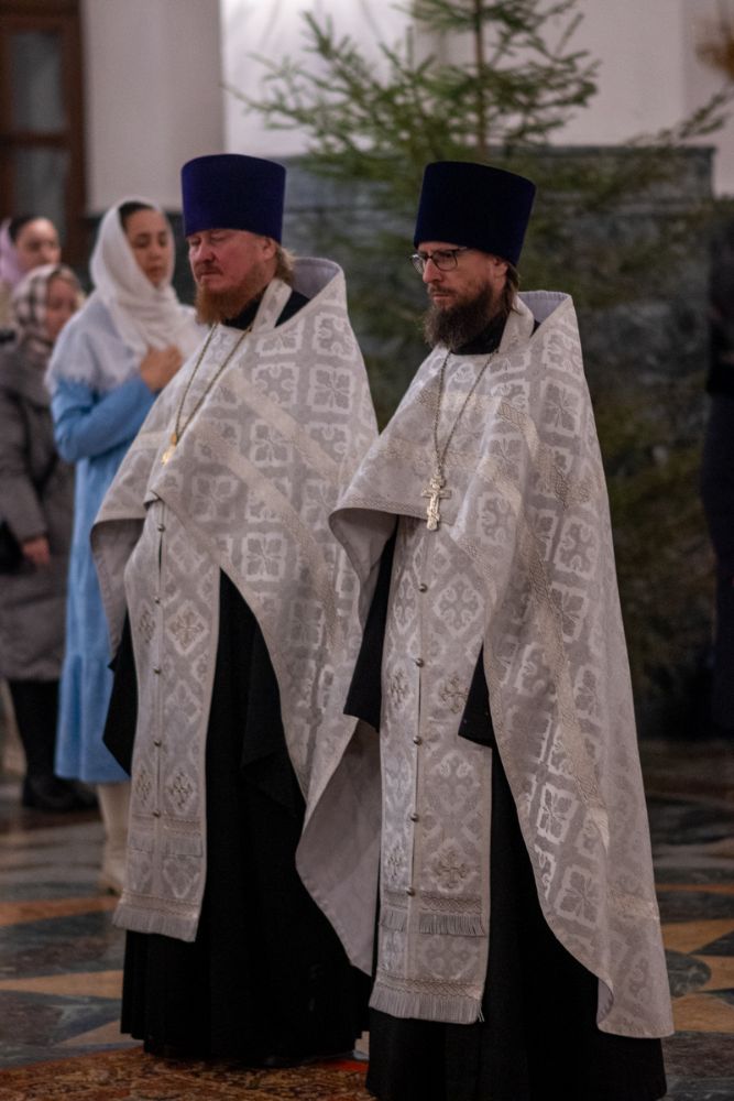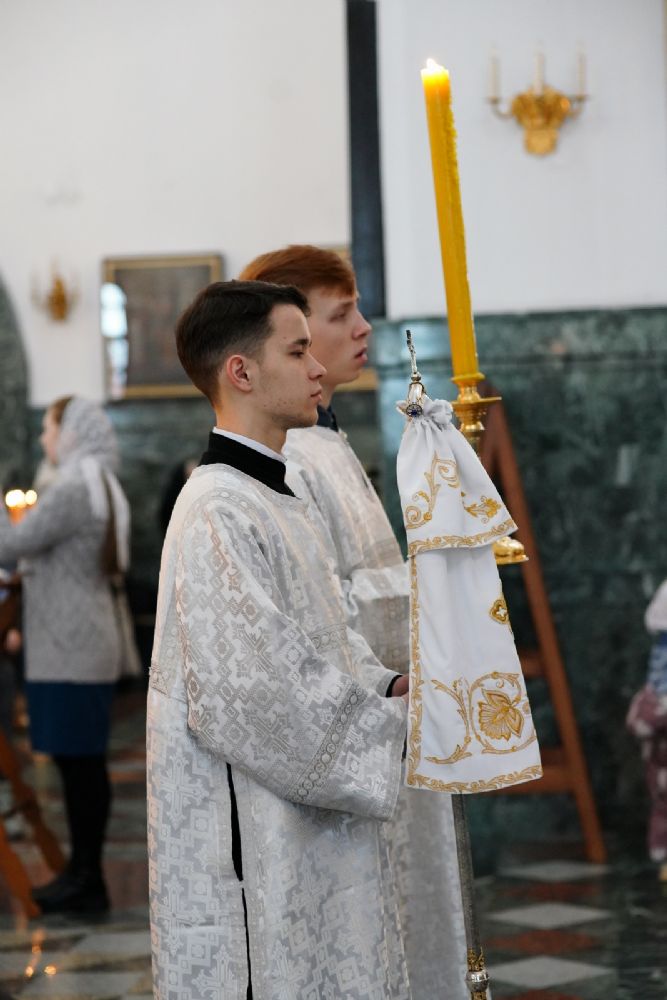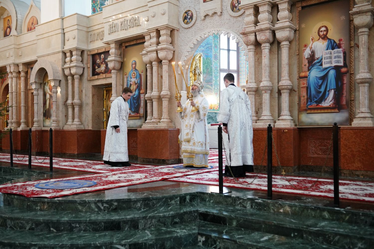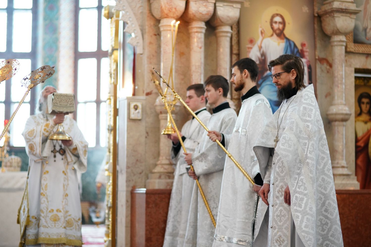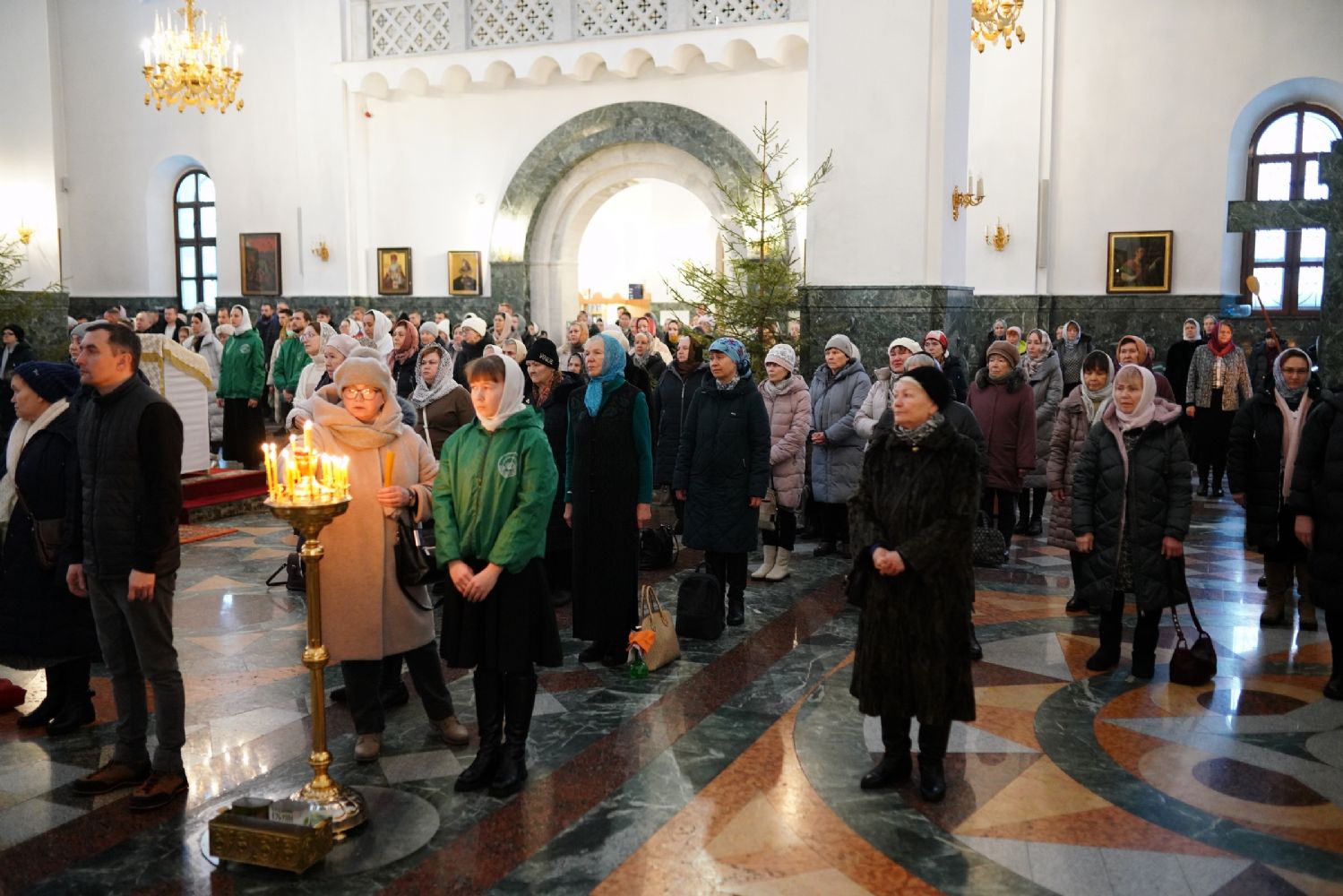 Архипастырю сослужили секретарь Йошкар-Олинского епархиального управления иеромонах Серафим (Пасанаев), ключарь собора протоиерей Сергий Поглазов, клирики собора и протодиакон Михаил Козловский. Песнопения исполнял старший состав детско-юношеского хора «Благовест» под управлением Татьяны Черновой и младший соства хора под руководством регентов Софии Андреевой и Надежды Поздеевой.