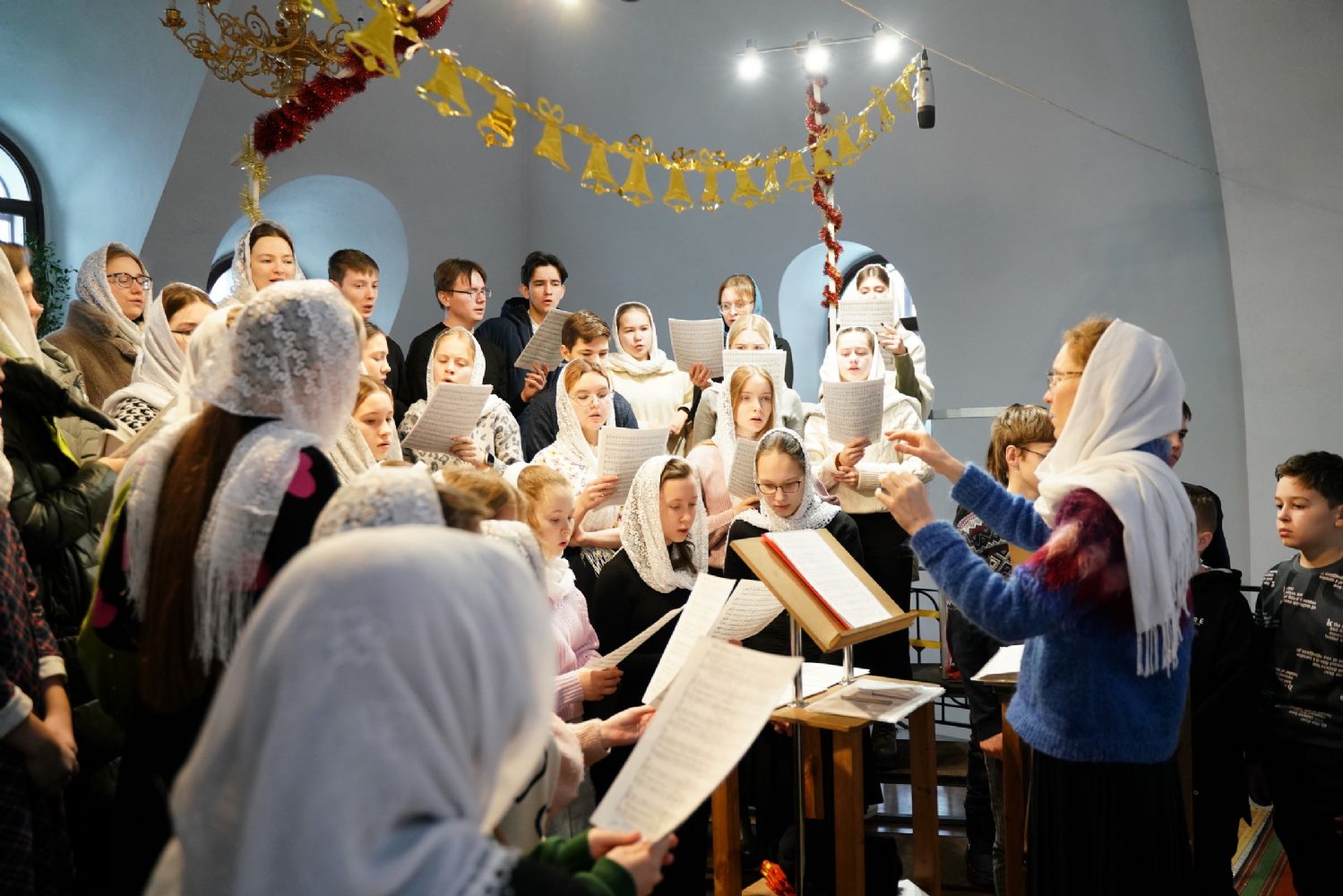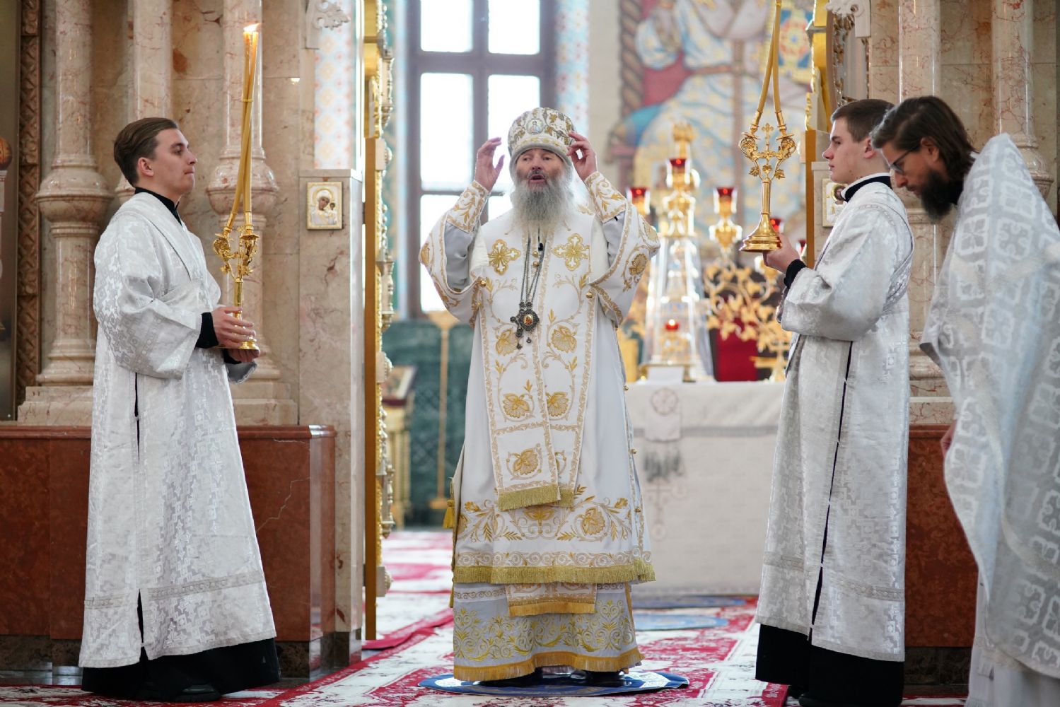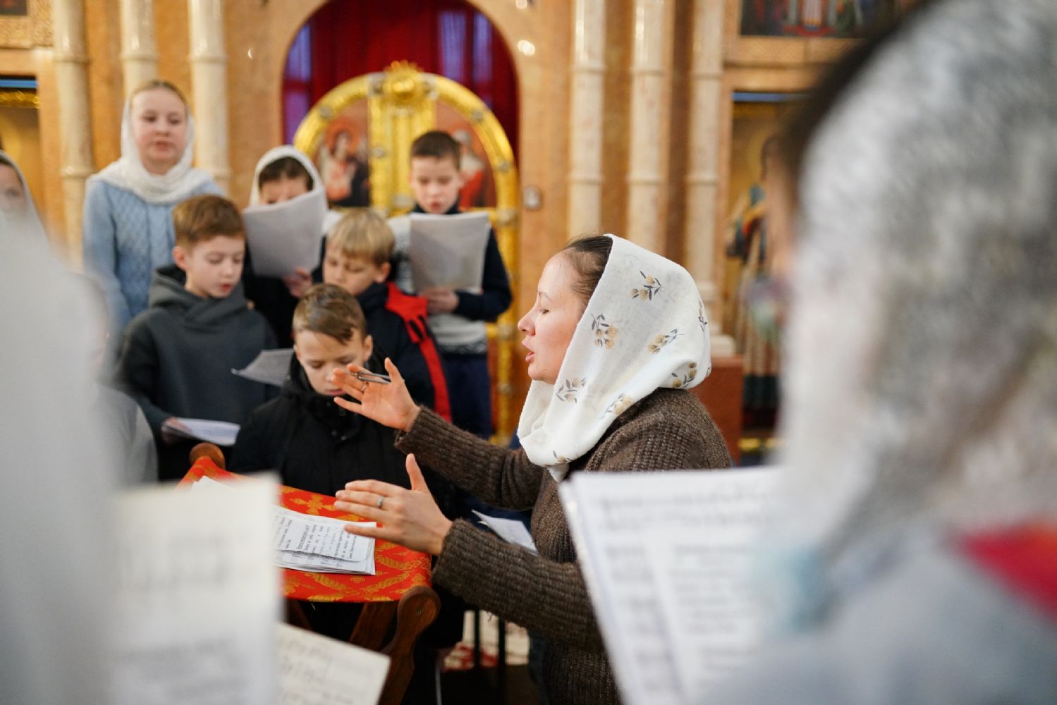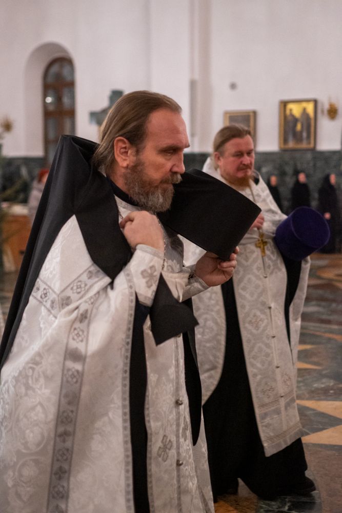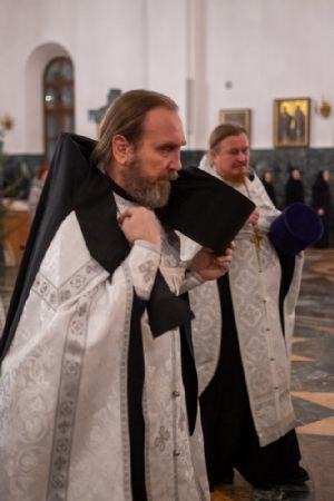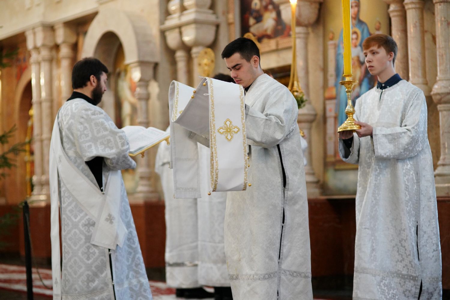 Архипастырю сослужили секретарь Йошкар-Олинского епархиального управления иеромонах Серафим (Пасанаев), ключарь собора протоиерей Сергий Поглазов, клирики собора и протодиакон Михаил Козловский. Песнопения исполнял старший состав детско-юношеского хора «Благовест» под управлением Татьяны Черновой и младший соства хора под руководством регентов Софии Андреевой и Надежды Поздеевой.