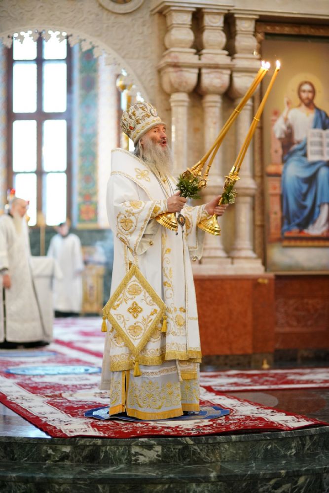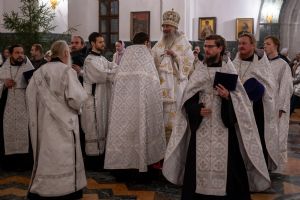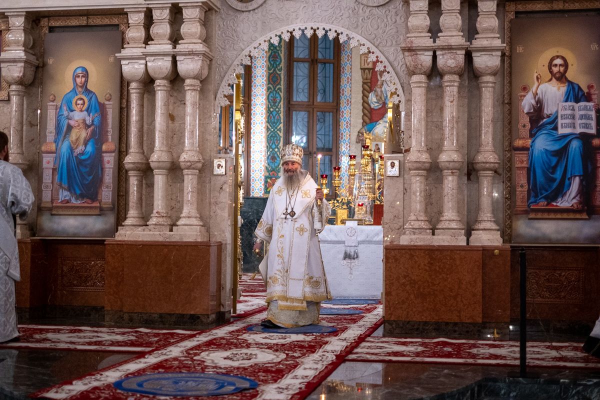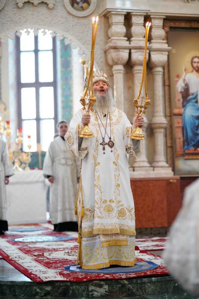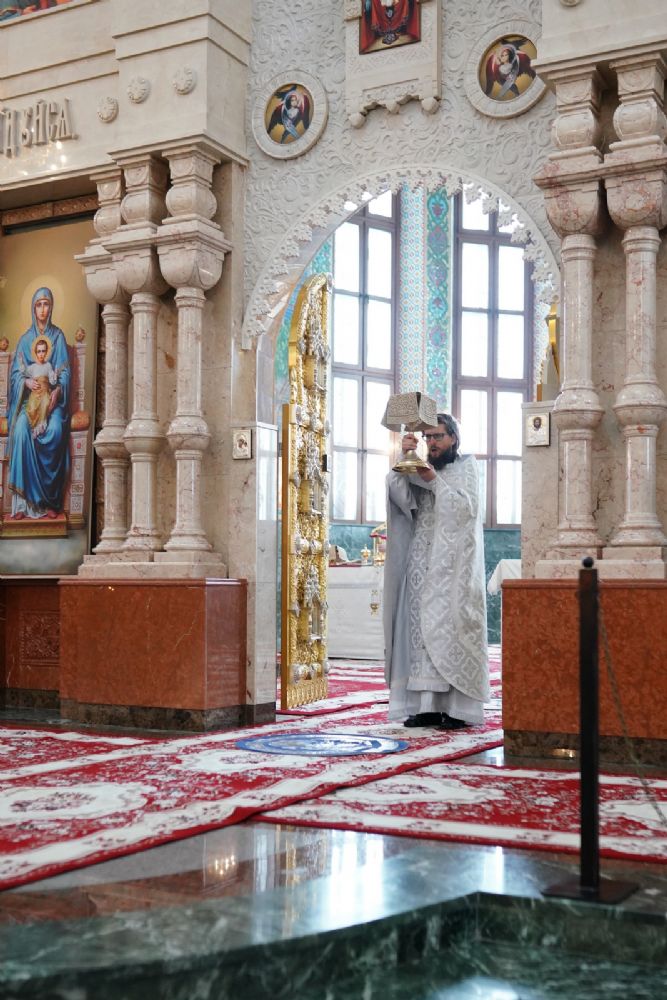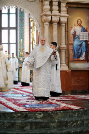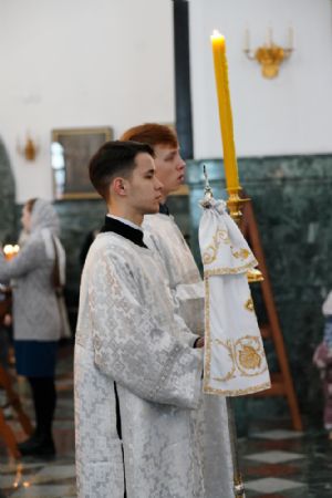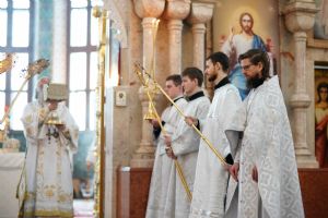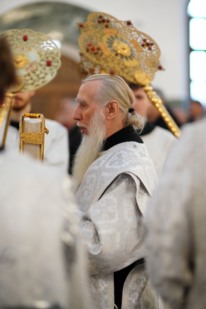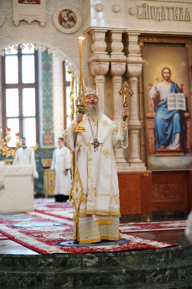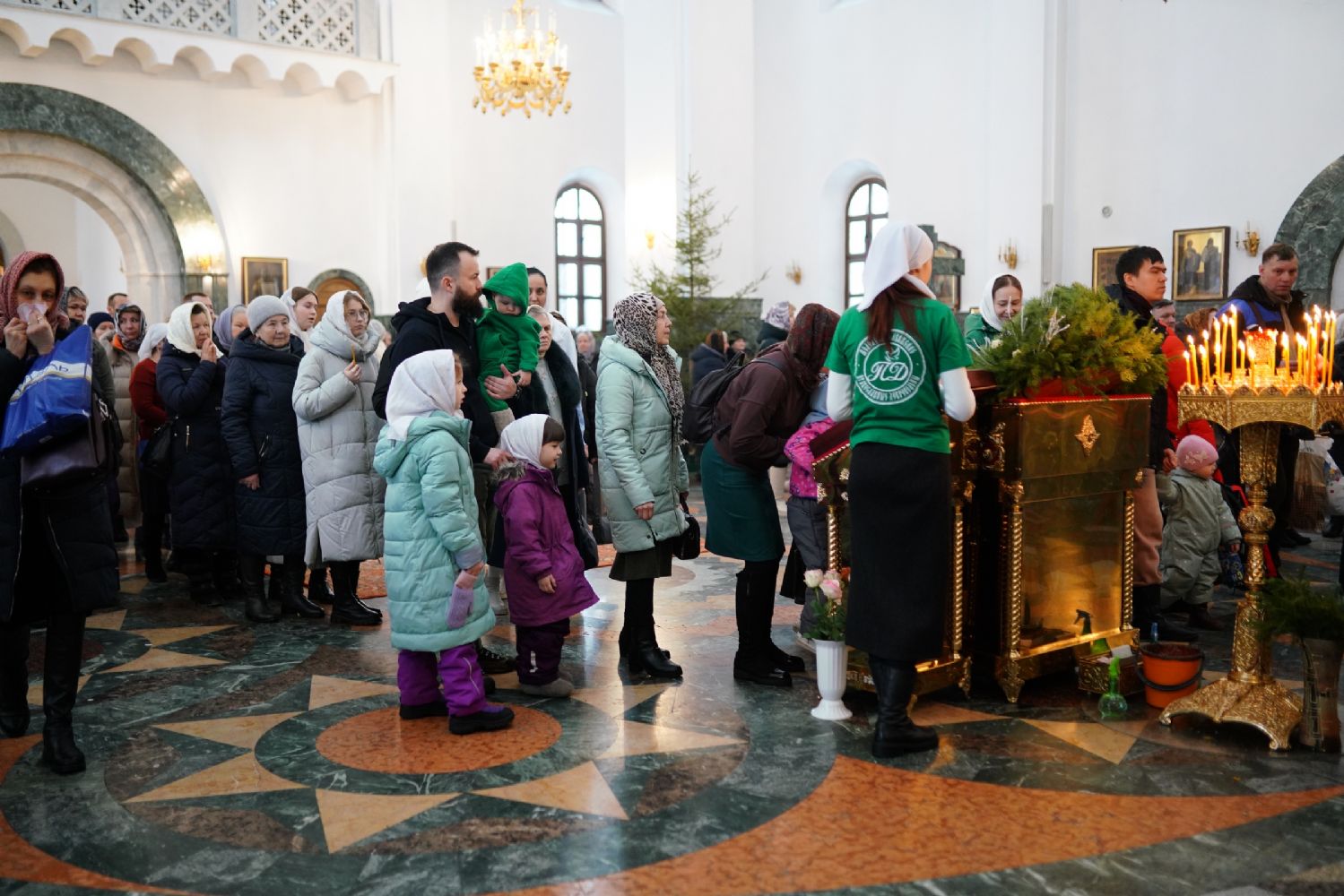 Архипастырю сослужили секретарь Йошкар-Олинского епархиального управления иеромонах Серафим (Пасанаев), ключарь собора протоиерей Сергий Поглазов, клирики собора и протодиакон Михаил Козловский. Песнопения исполнял старший состав детско-юношеского хора «Благовест» под управлением Татьяны Черновой и младший соства хора под руководством регентов Софии Андреевой и Надежды Поздеевой.
