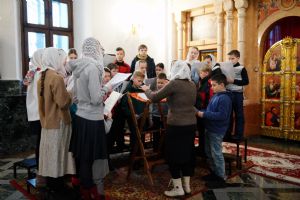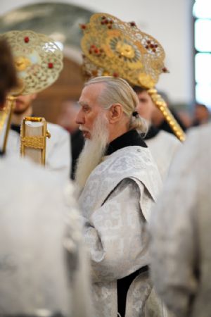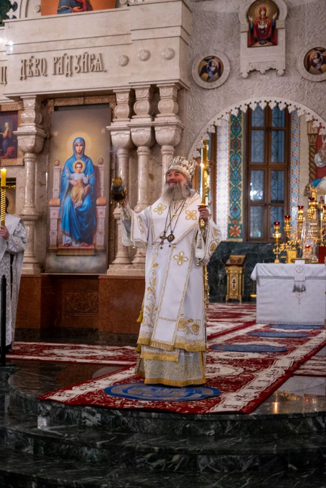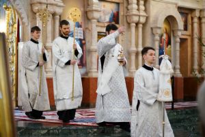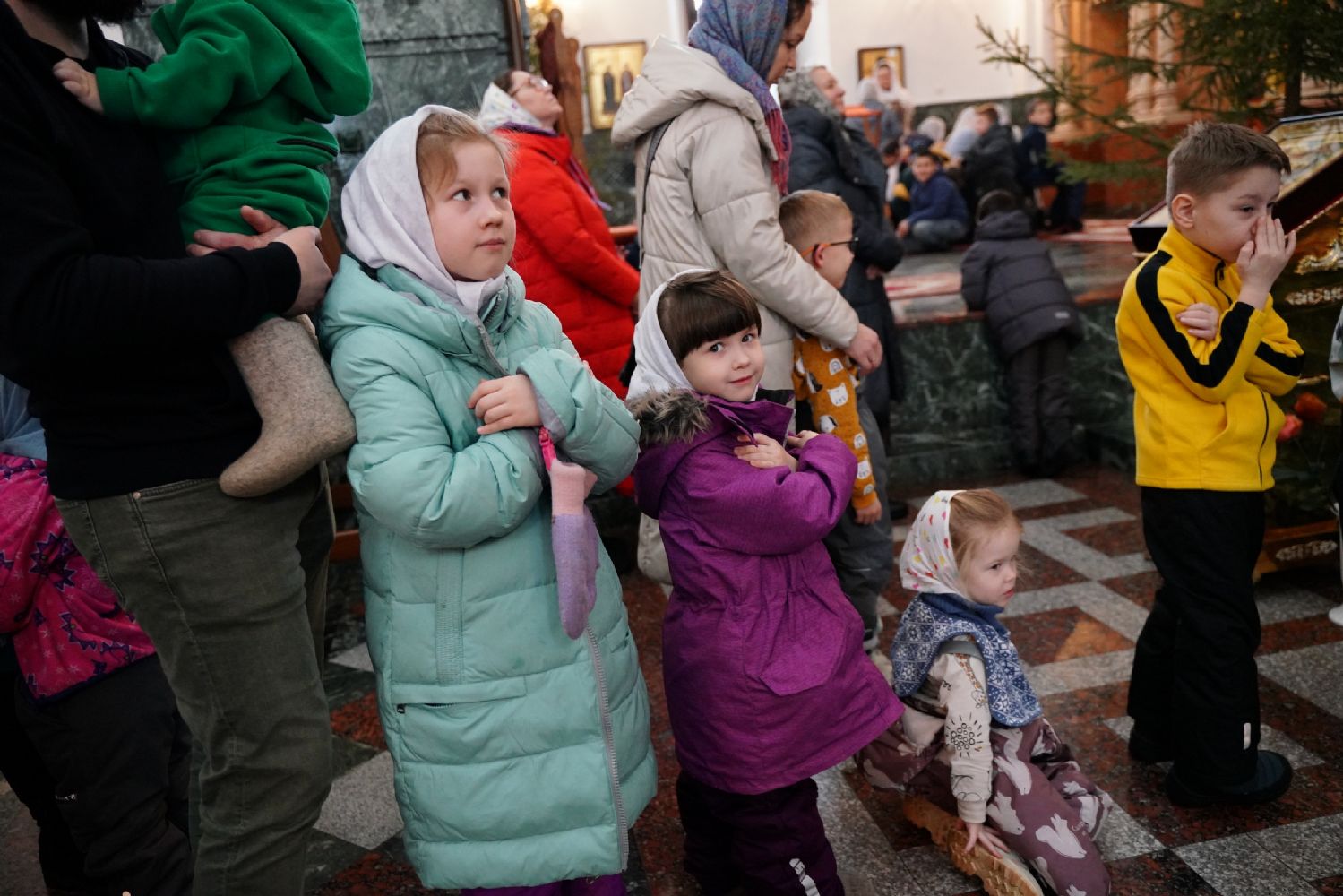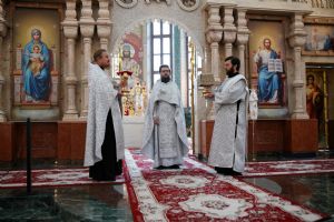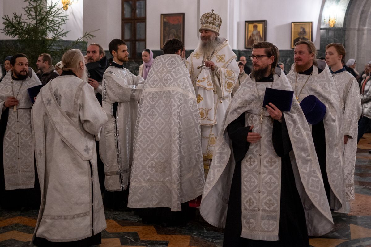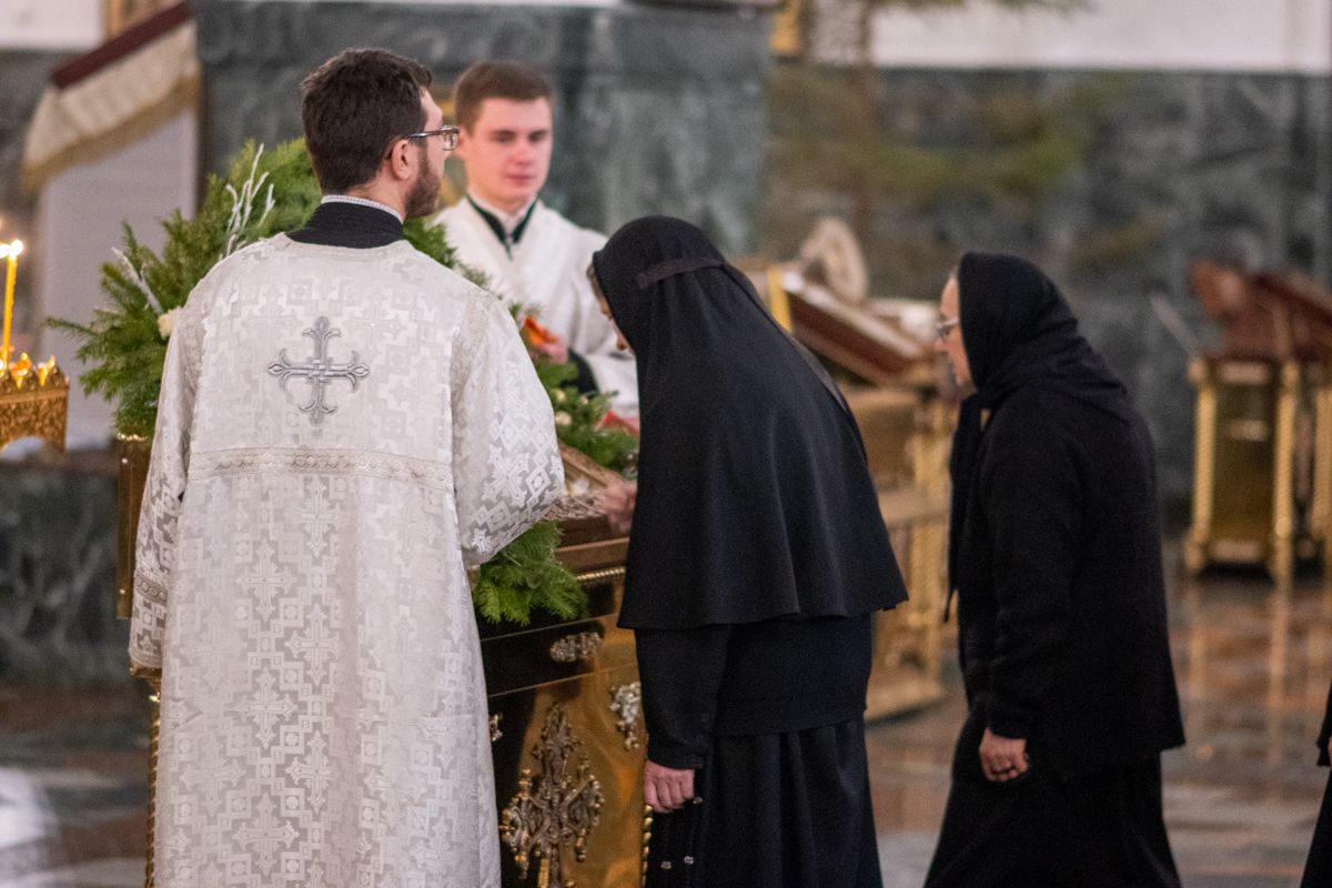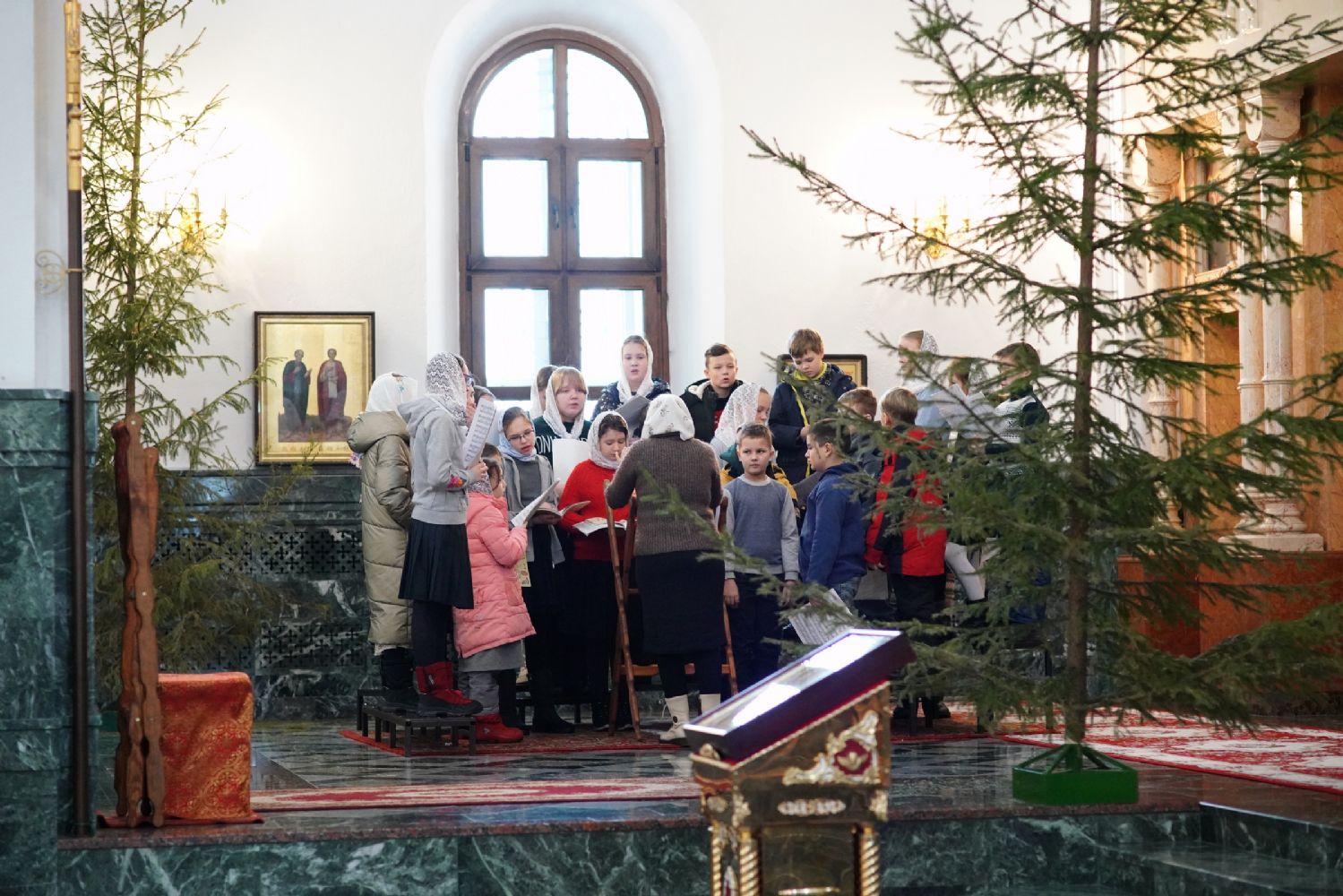 Архипастырю сослужили секретарь Йошкар-Олинского епархиального управления иеромонах Серафим (Пасанаев), ключарь собора протоиерей Сергий Поглазов, клирики собора и протодиакон Михаил Козловский. Песнопения исполнял старший состав детско-юношеского хора «Благовест» под управлением Татьяны Черновой и младший соства хора под руководством регентов Софии Андреевой и Надежды Поздеевой.