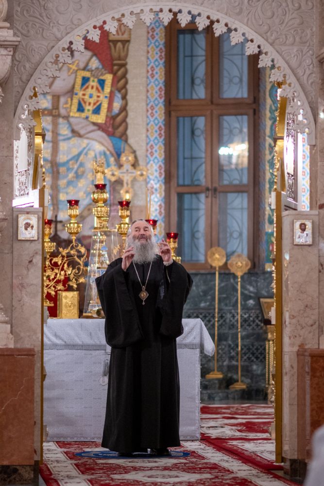 После чтения Евангелия митрополит Иоанн обратился к прихожанам с проповедью, разъяснив евангельский отрывок об искушении Спасителя в пустыне диаволом. Владыка подчеркнул, что враг рода человеческого и поныне искушает всех людей теми же соблазнами, которыми искушал Иисуса Христа, – это жажда хлеба, зрелищ с чудесами и власти. И, что противостоять дьявольским искушениям можно только имея смирение и покорность Богу.