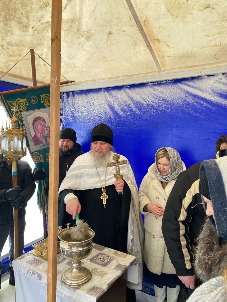 На реке отец Александр совершил чин великого освящения воды и обратился к собравшимся с поздравительными словами. После этого самые смелые смогли окунуться в освященную купель.