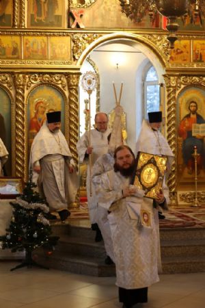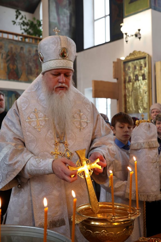 19 января, в праздник Святого Богоявления, епископ Волжский и Сернурский Феофан совершил Божественную литургию и чин великого освящения воды в Никольском кафедральном соборе г. Волжска.