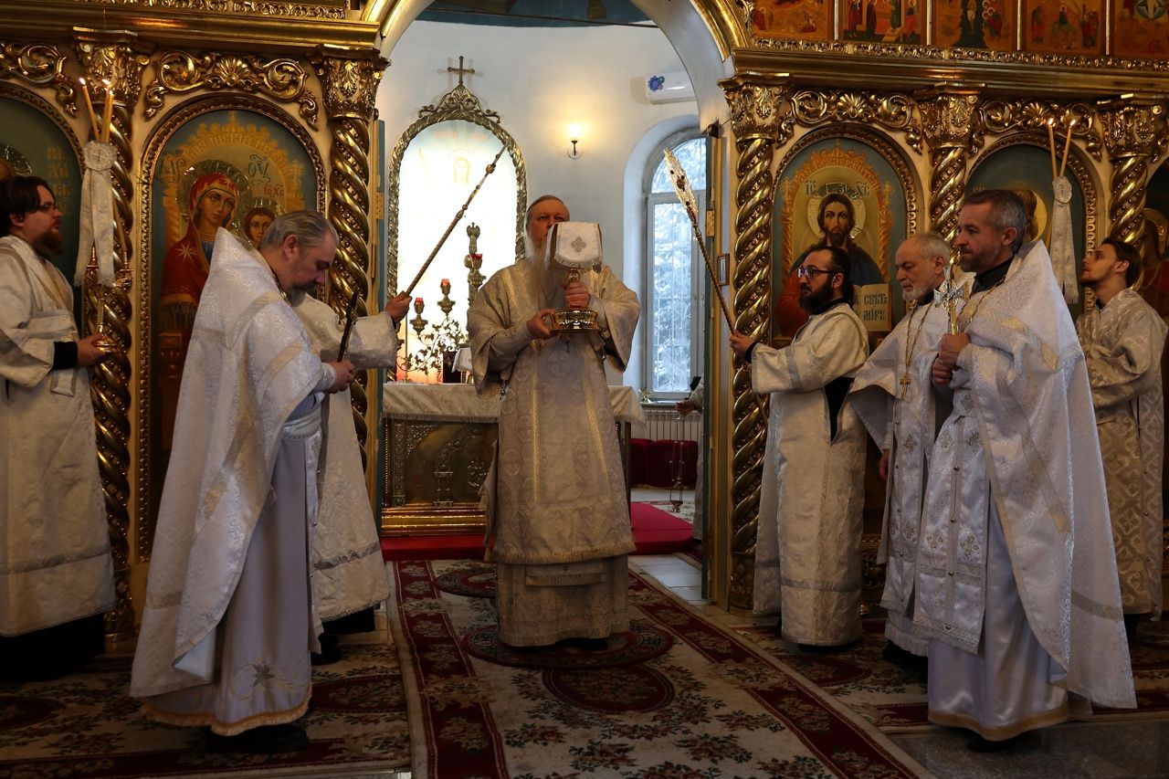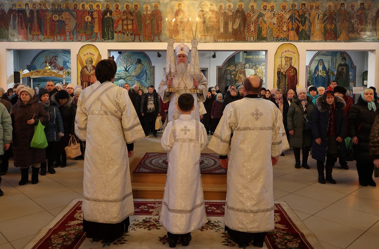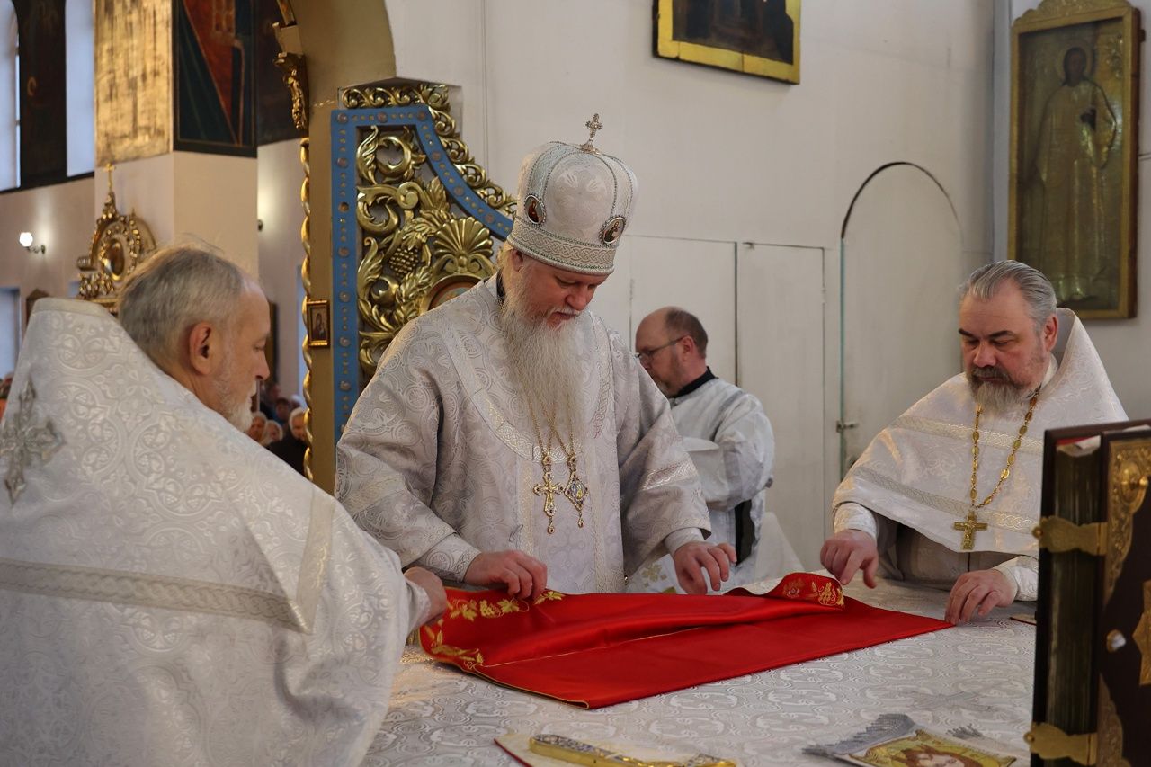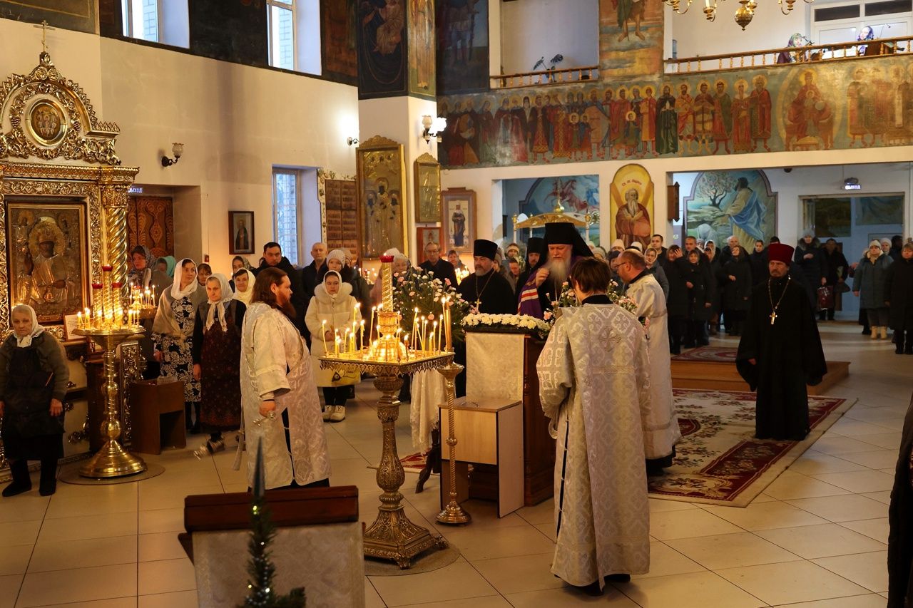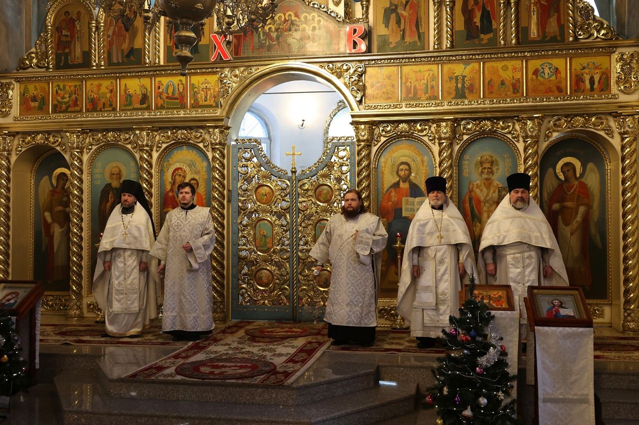 Его Преосвященству сослужили ключарь собора иерей Иоанн Лапшинский, клирики собора протоиерей Виталий Михеев, иеромонах Авель (Крашенинников), диакон Иоанн Захаров, диакон Герман Михайлов. Песнопения исполнял архиерейский хор под управлением Любови Михеевой.