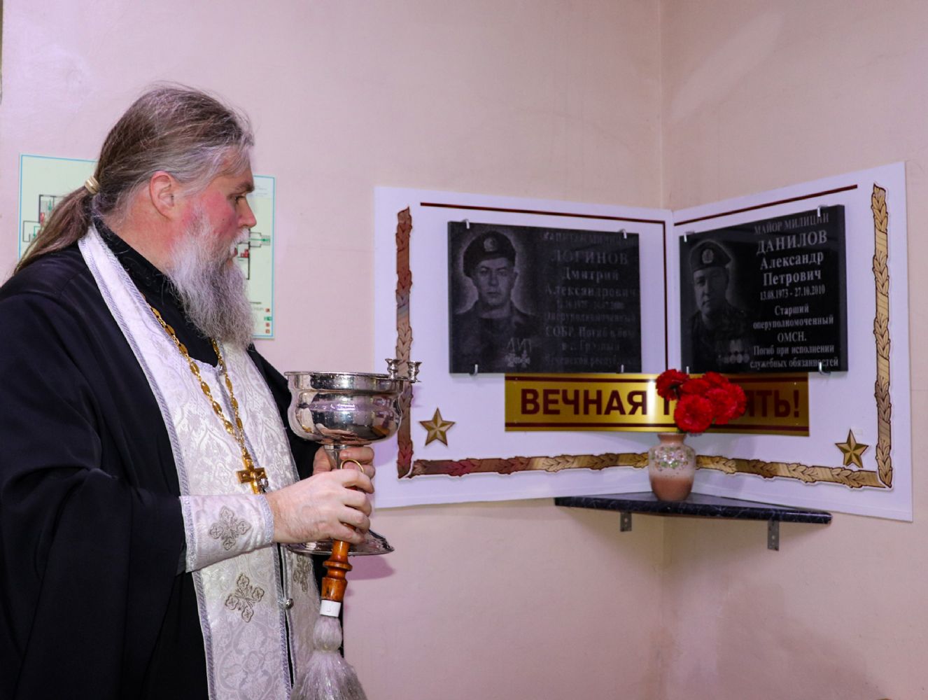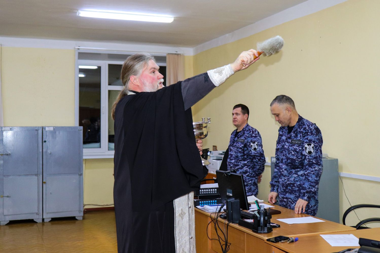 После беседы священнослужитель окропил росгвардейцев крещенской водой, пожелал всем Божьего благословения, успехов в службе и крепкого здоровья. Отец Александр также окропил святой водой все служебные помещения управления.