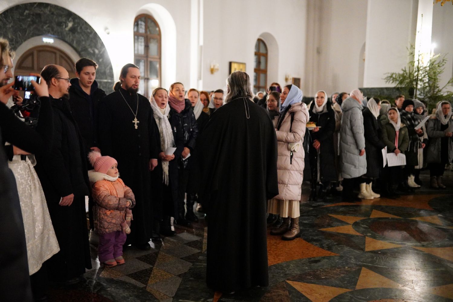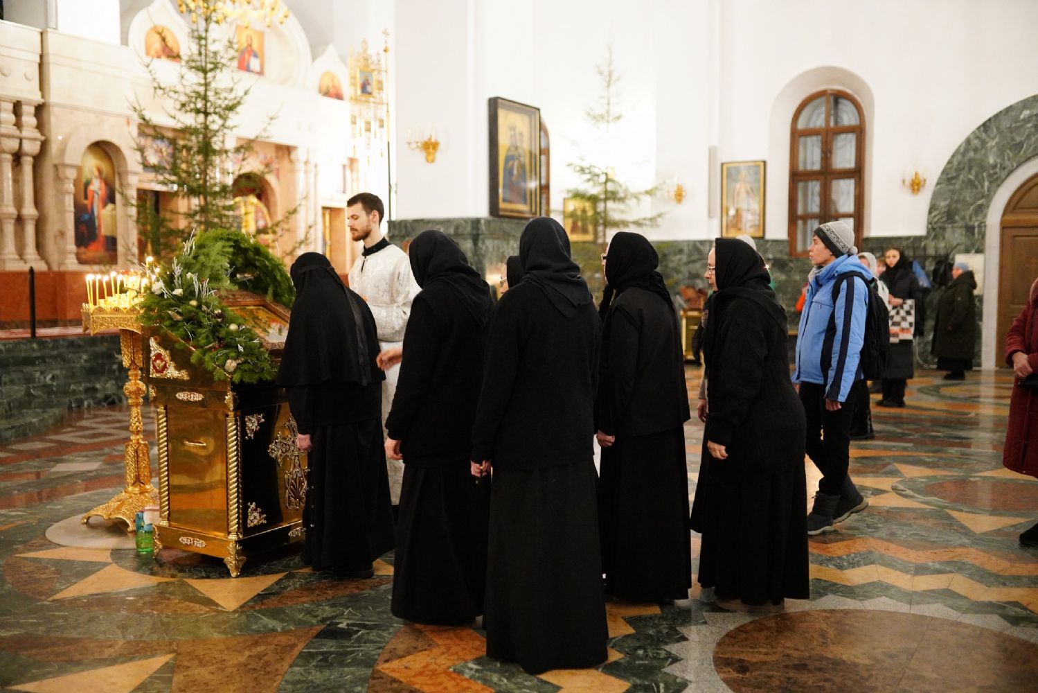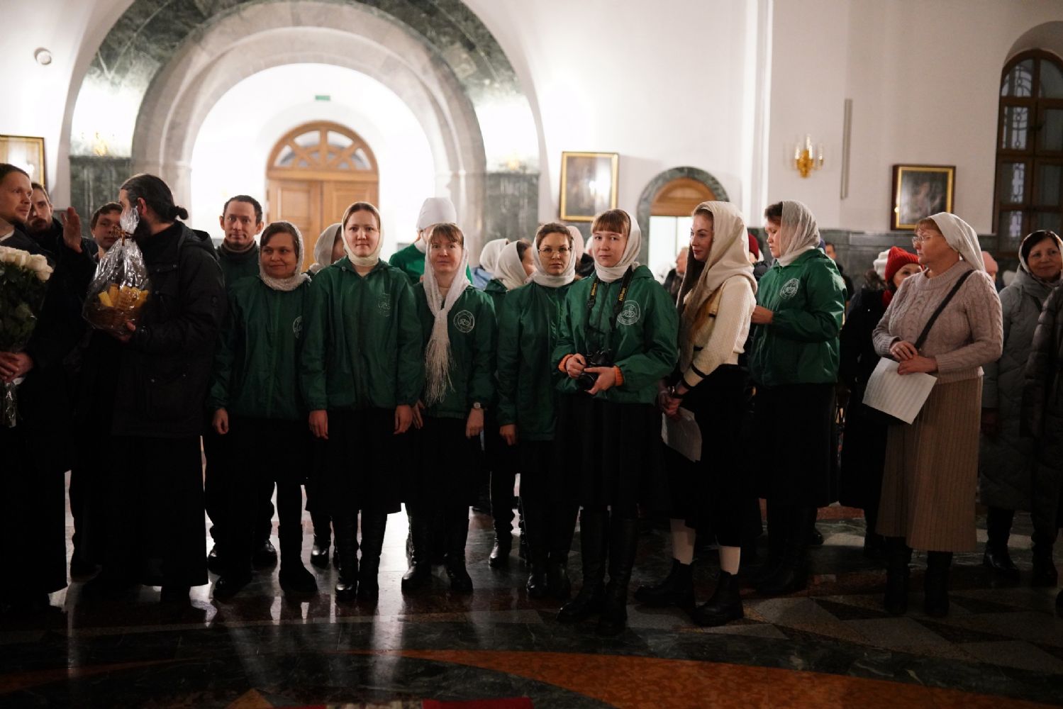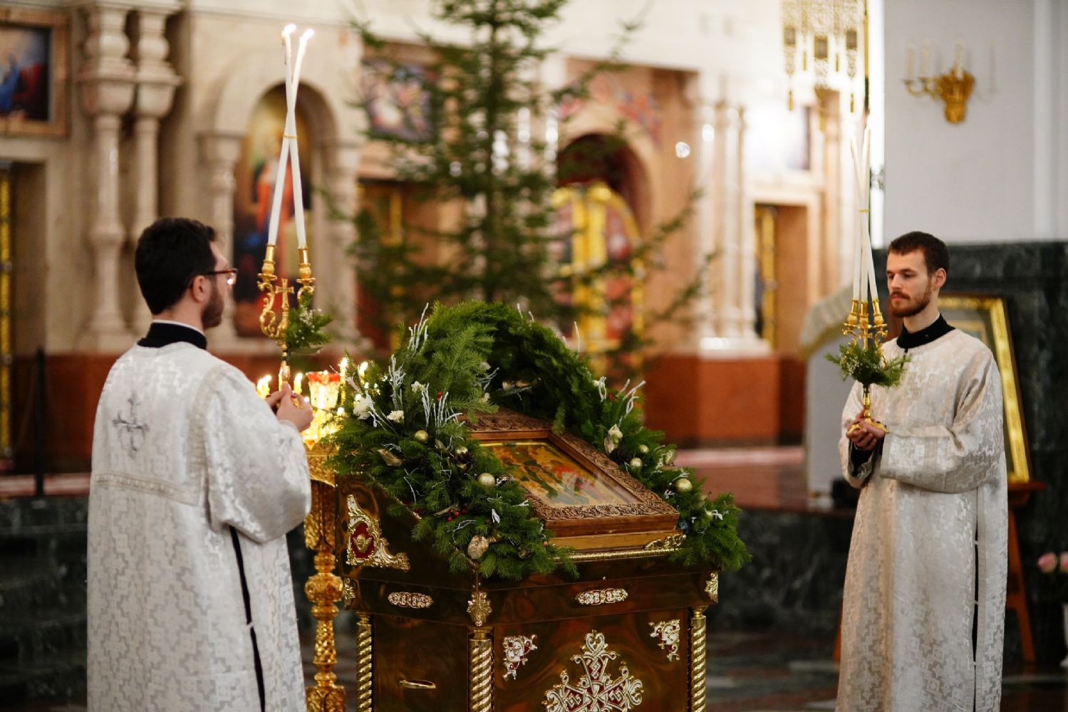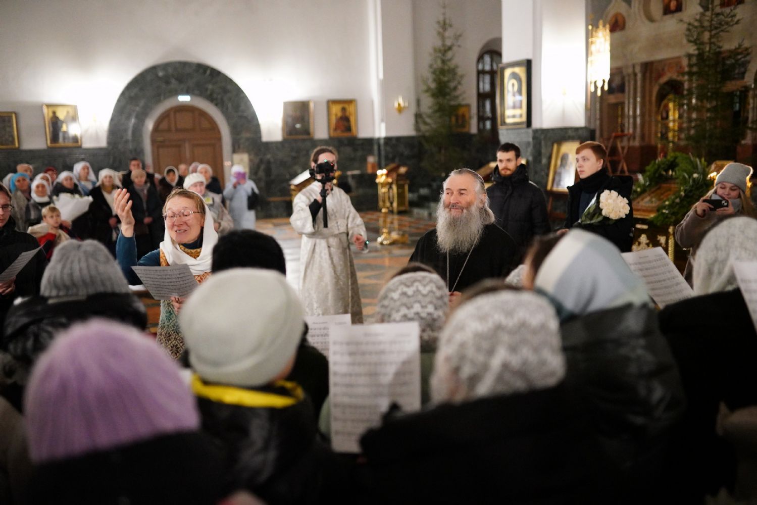 Его Высокопреосвященству сослужили секретарь Йошкар-Олинского епархиального управления иеромонах Серафим (Пасанаев), ключарь собора протоиерей Сергий Поглазов, клирики собора и протодиакон Михаил Козловский. Пел детско-юношеский хор «Благовест» под управлением регента Татьяны Черновой.
