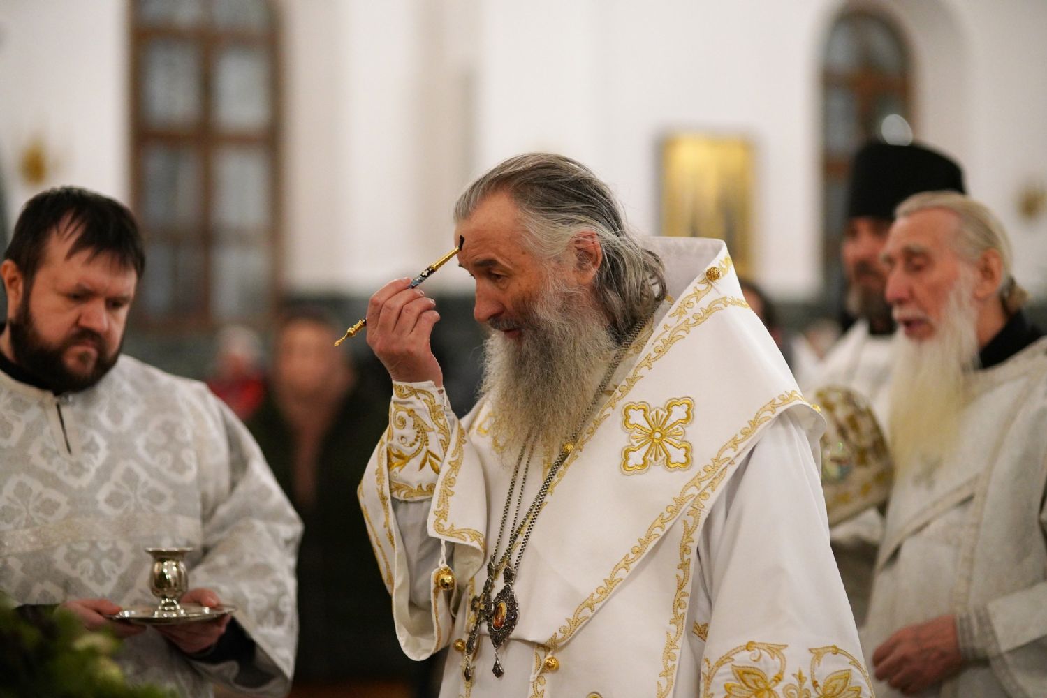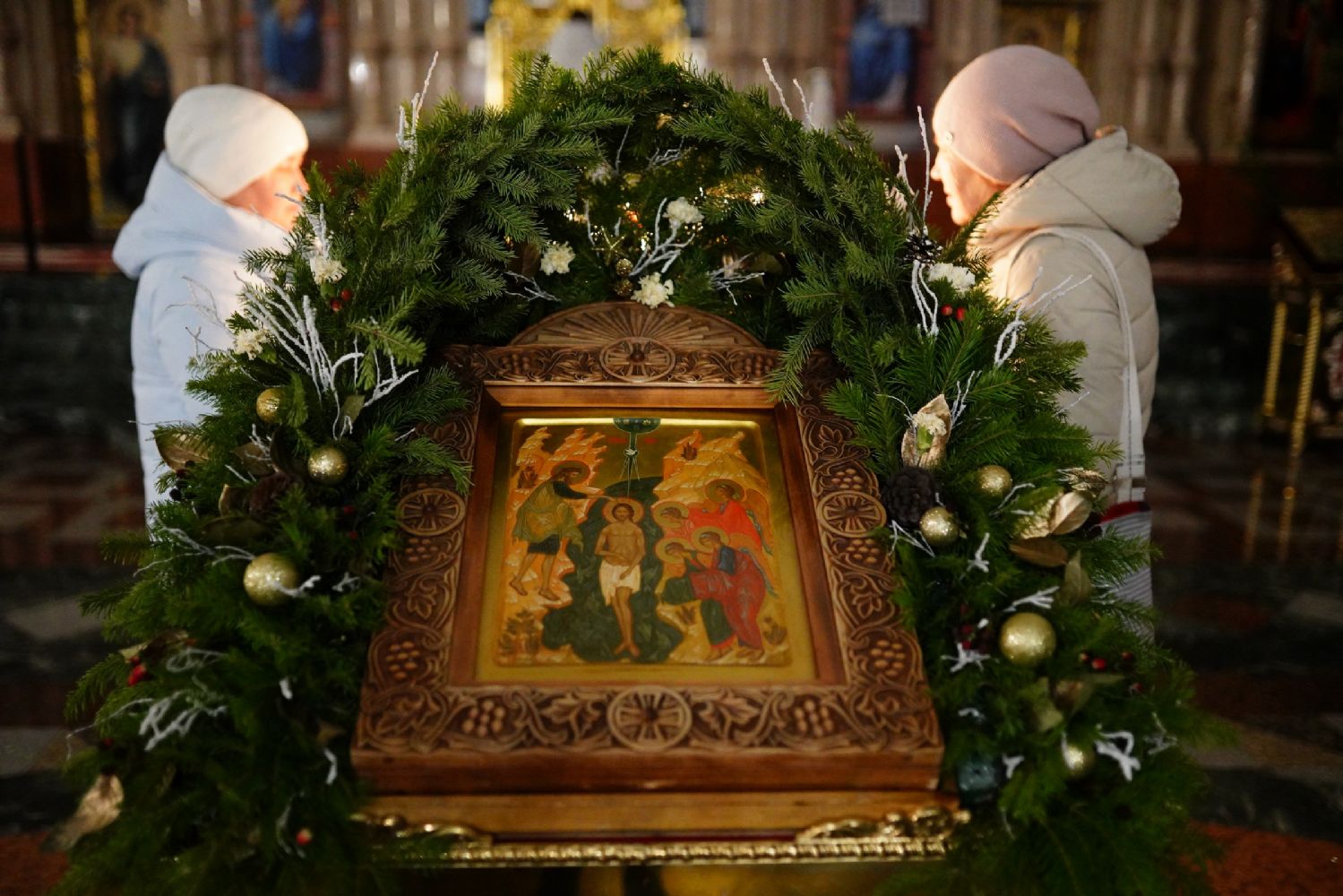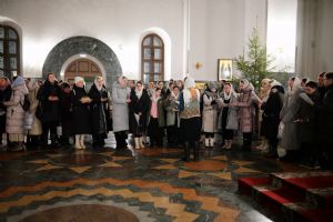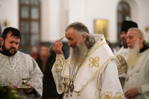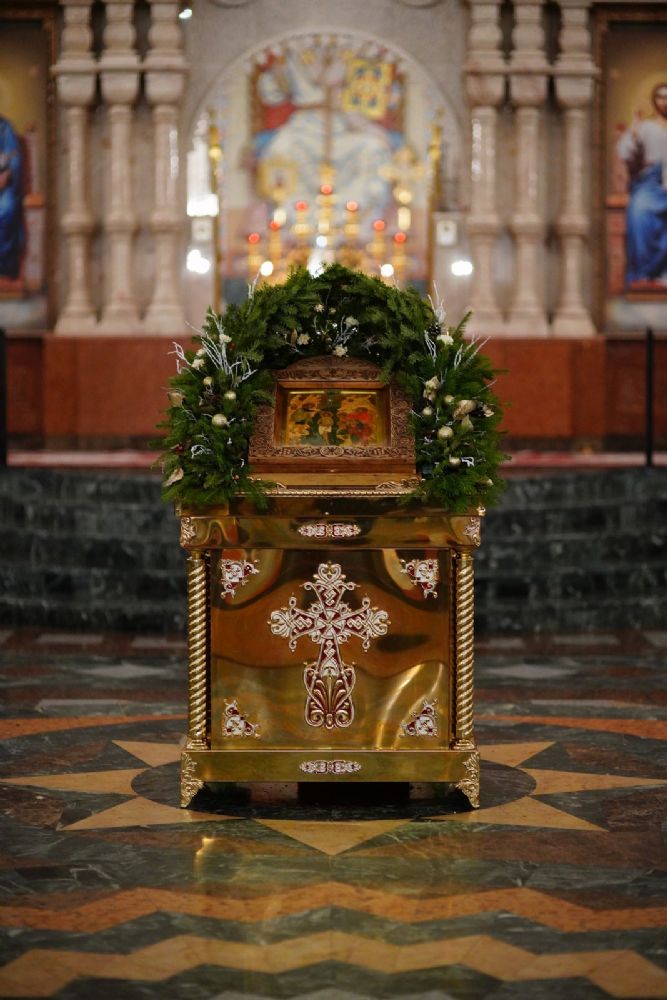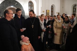 На вечерне звучали песнопения попразднства Крещения Господня. На утрене после чтения Евангелия верующие помазывались освященным елеем.