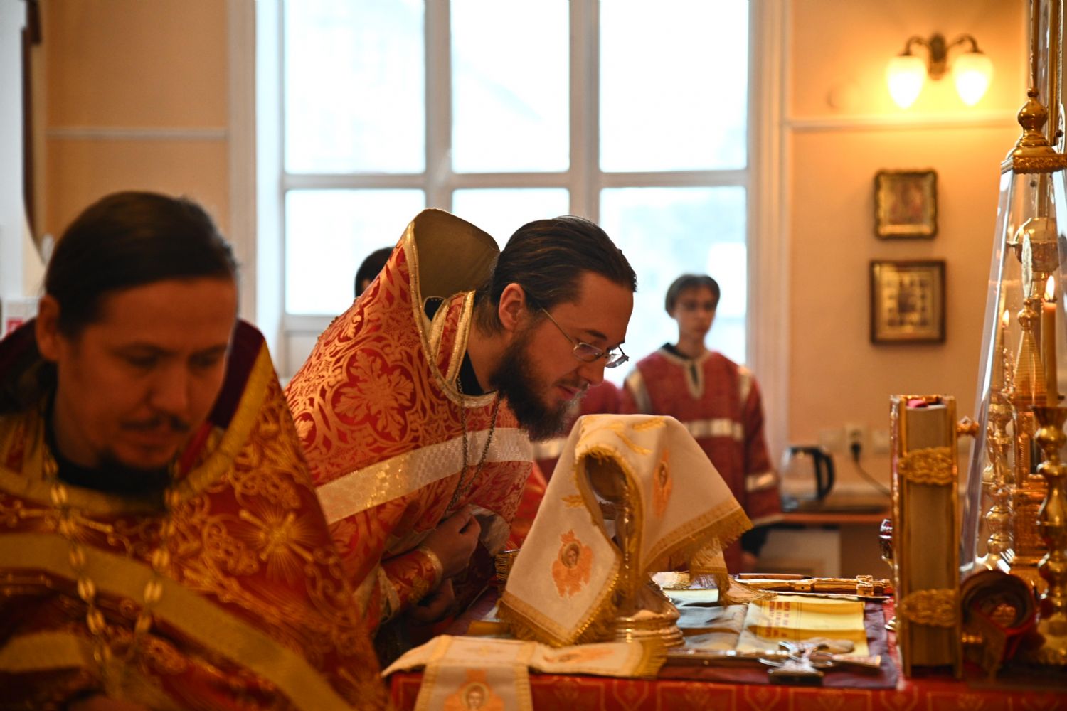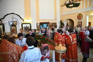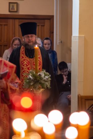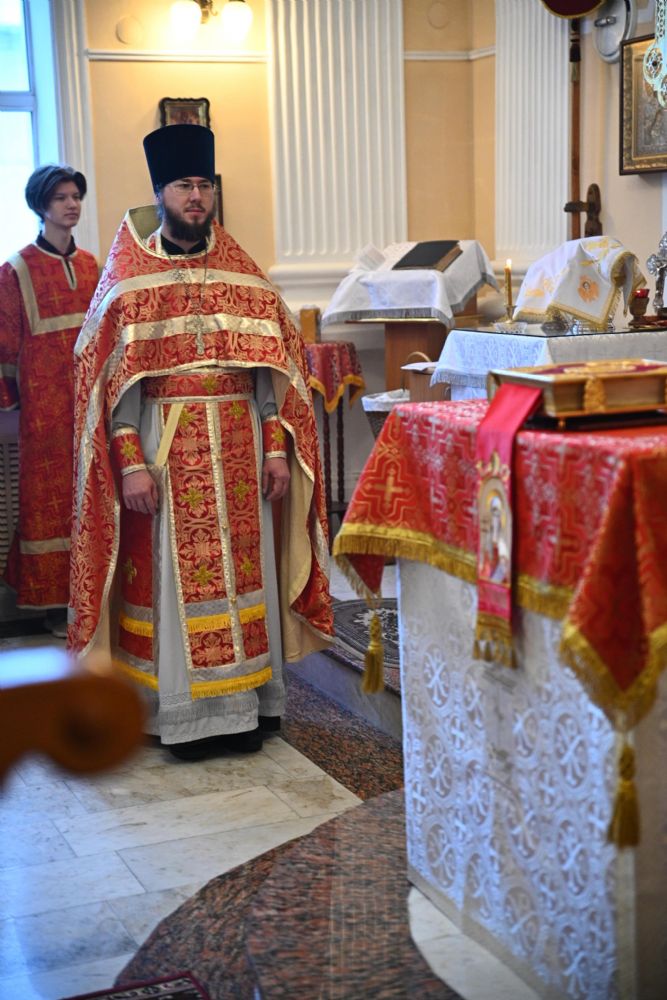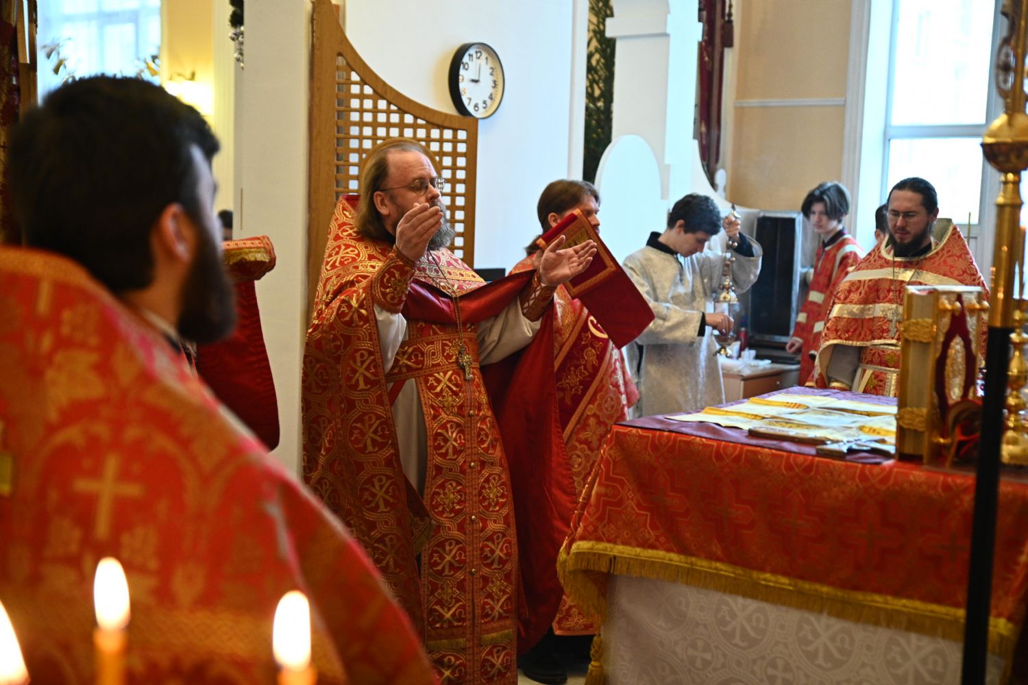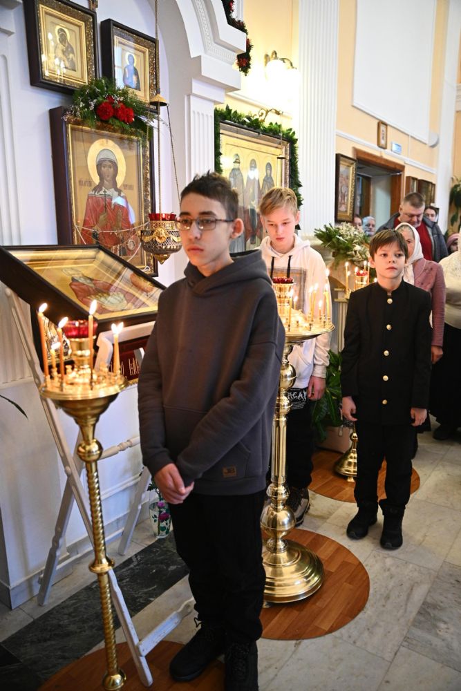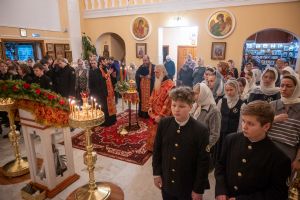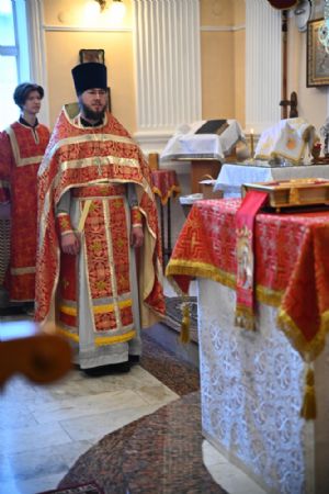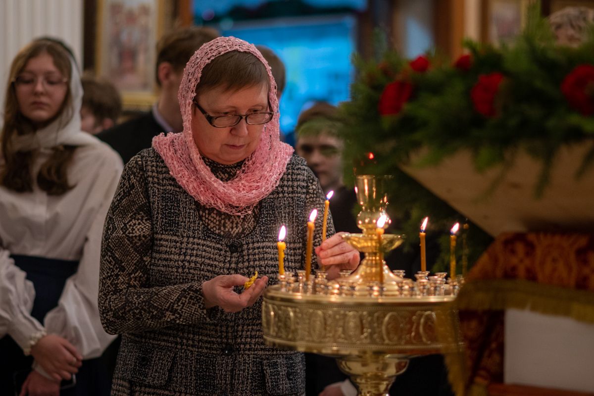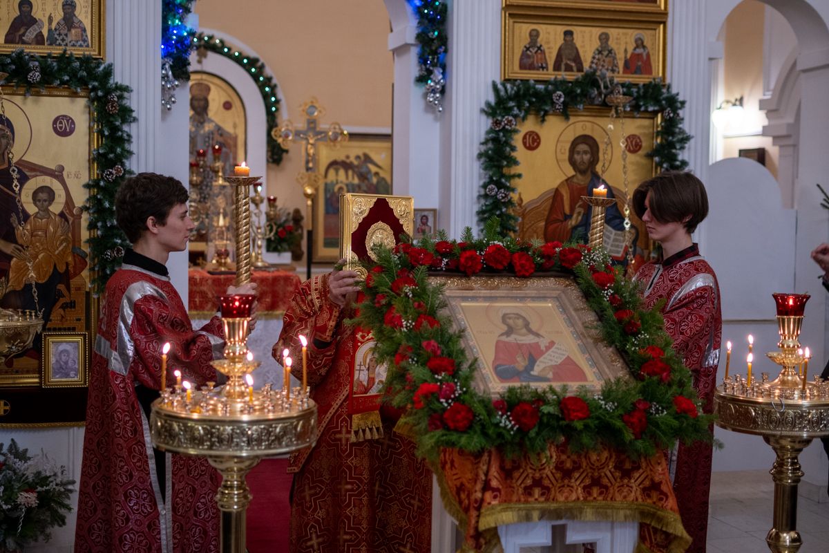Накануне вечером праздничное всенощное бдение возглавил настоятель храма протоиерей Евгений Сурков в сослужении клирика храма иерея Андрея Иванова. Разделить радость праздника пришел также архиерейский протодиакон Михаил Козловский. Песнопения исполняли хор храма под управлением Аллы Симаковой и детский хор гимназии им. Сергия Радонежского под руководством регента Марии Беляниной.