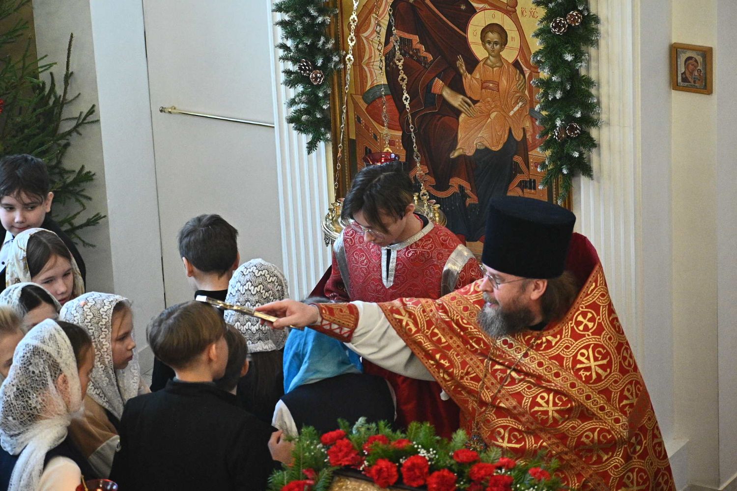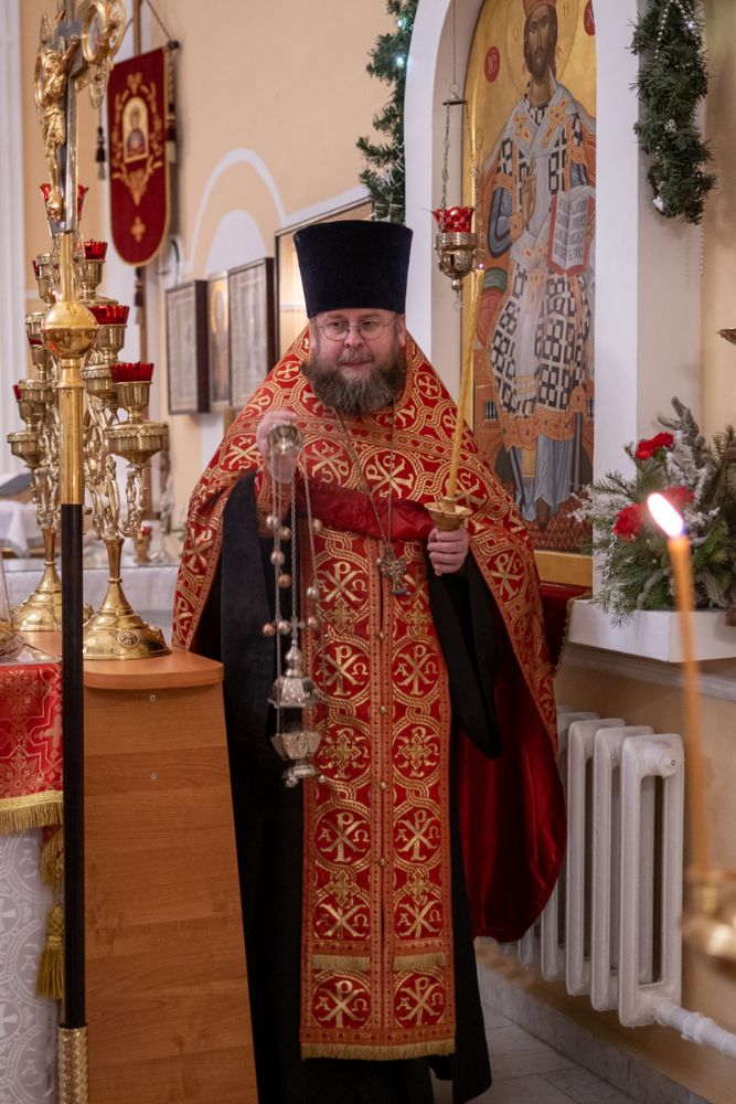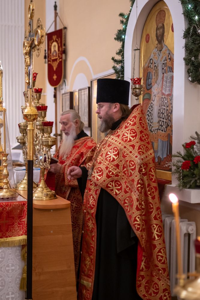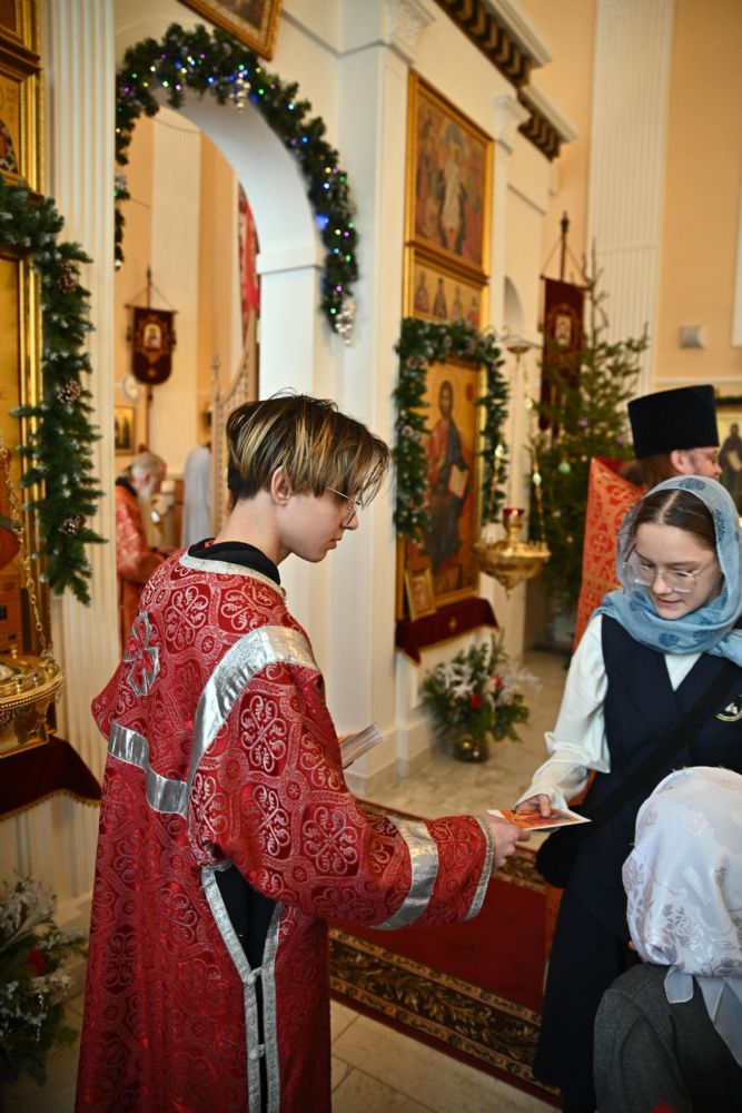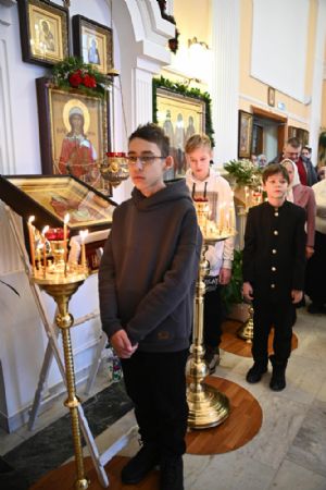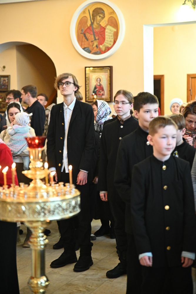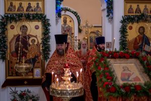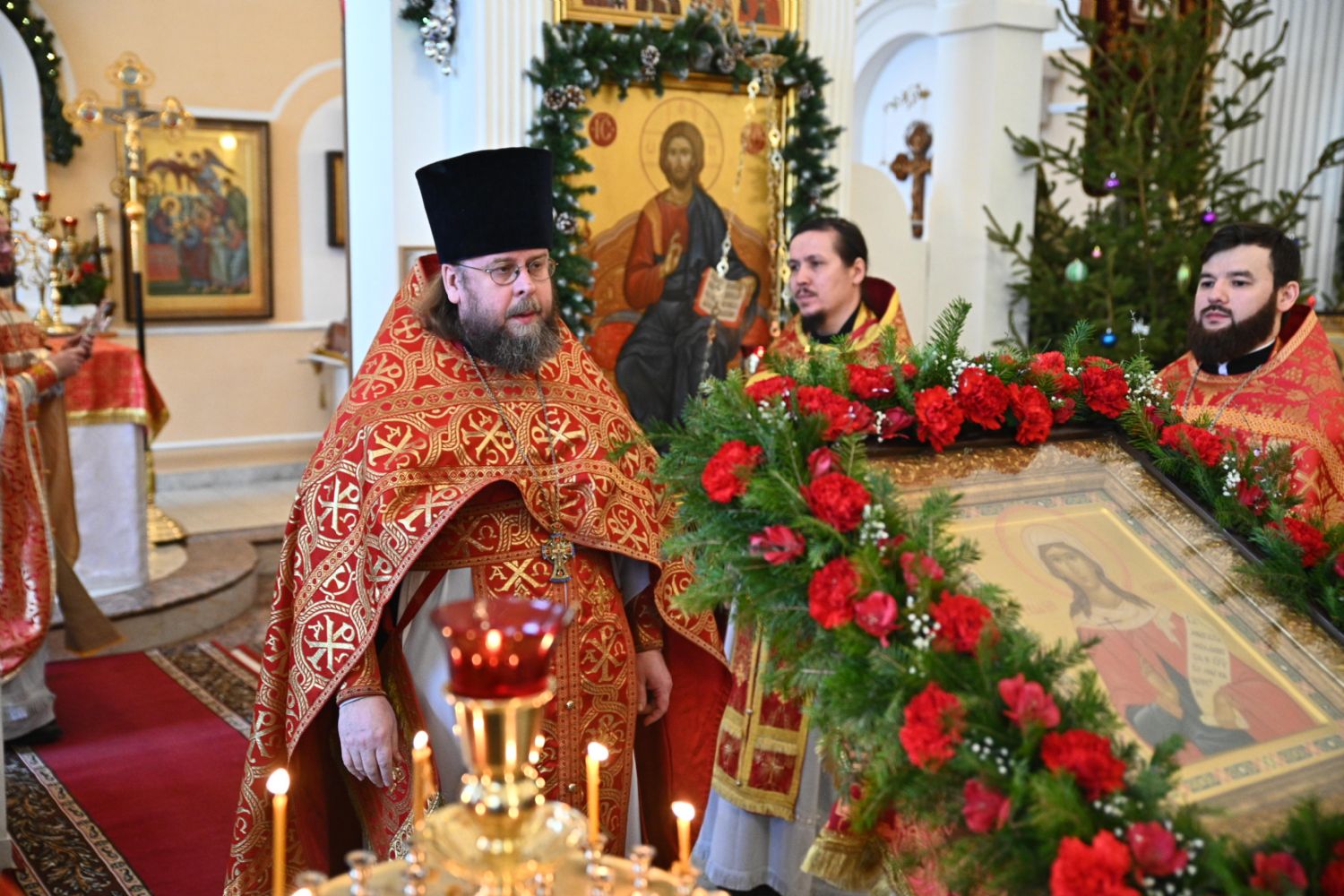 Накануне вечером праздничное всенощное бдение возглавил настоятель храма протоиерей Евгений Сурков в сослужении клирика храма иерея Андрея Иванова. Разделить радость праздника пришел также архиерейский протодиакон Михаил Козловский. Песнопения исполняли хор храма под управлением Аллы Симаковой и детский хор гимназии им. Сергия Радонежского под руководством регента Марии Беляниной.