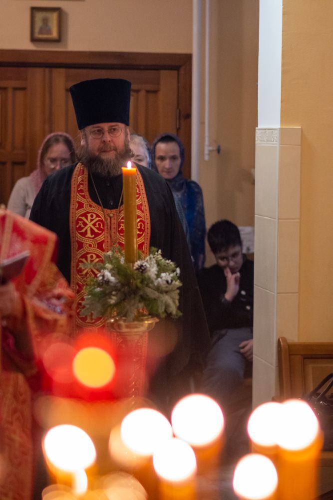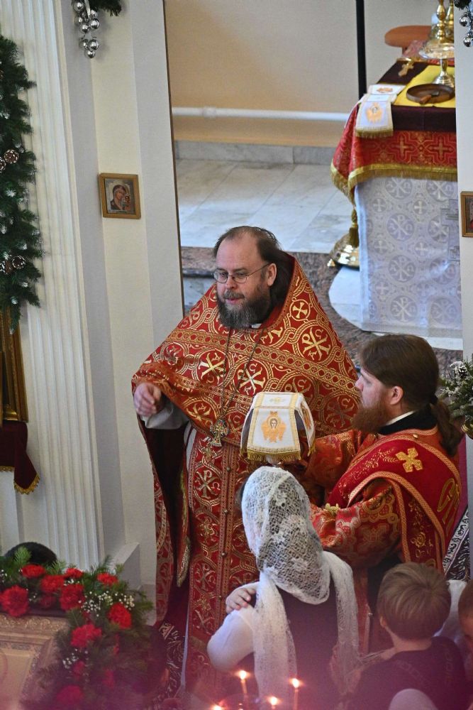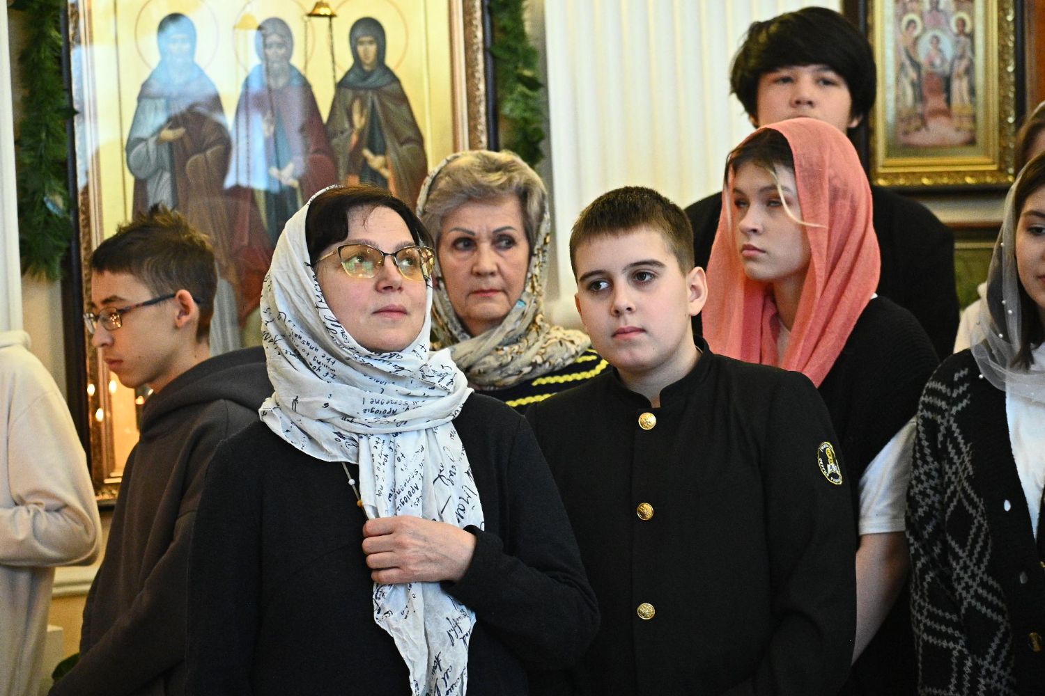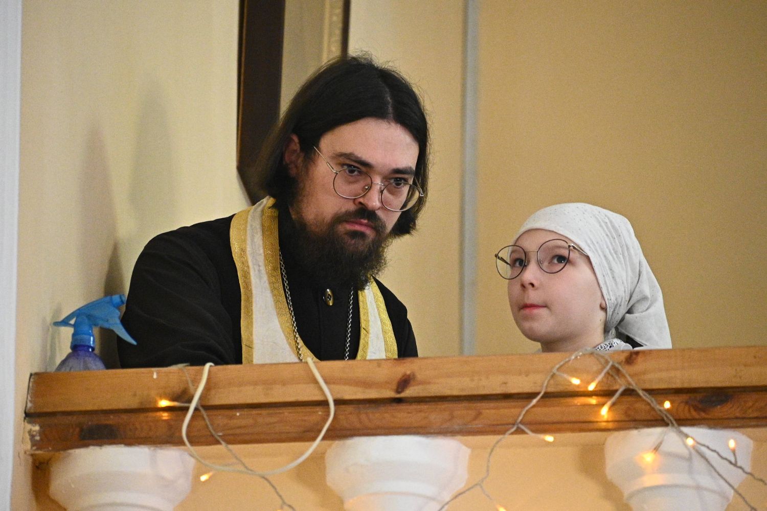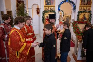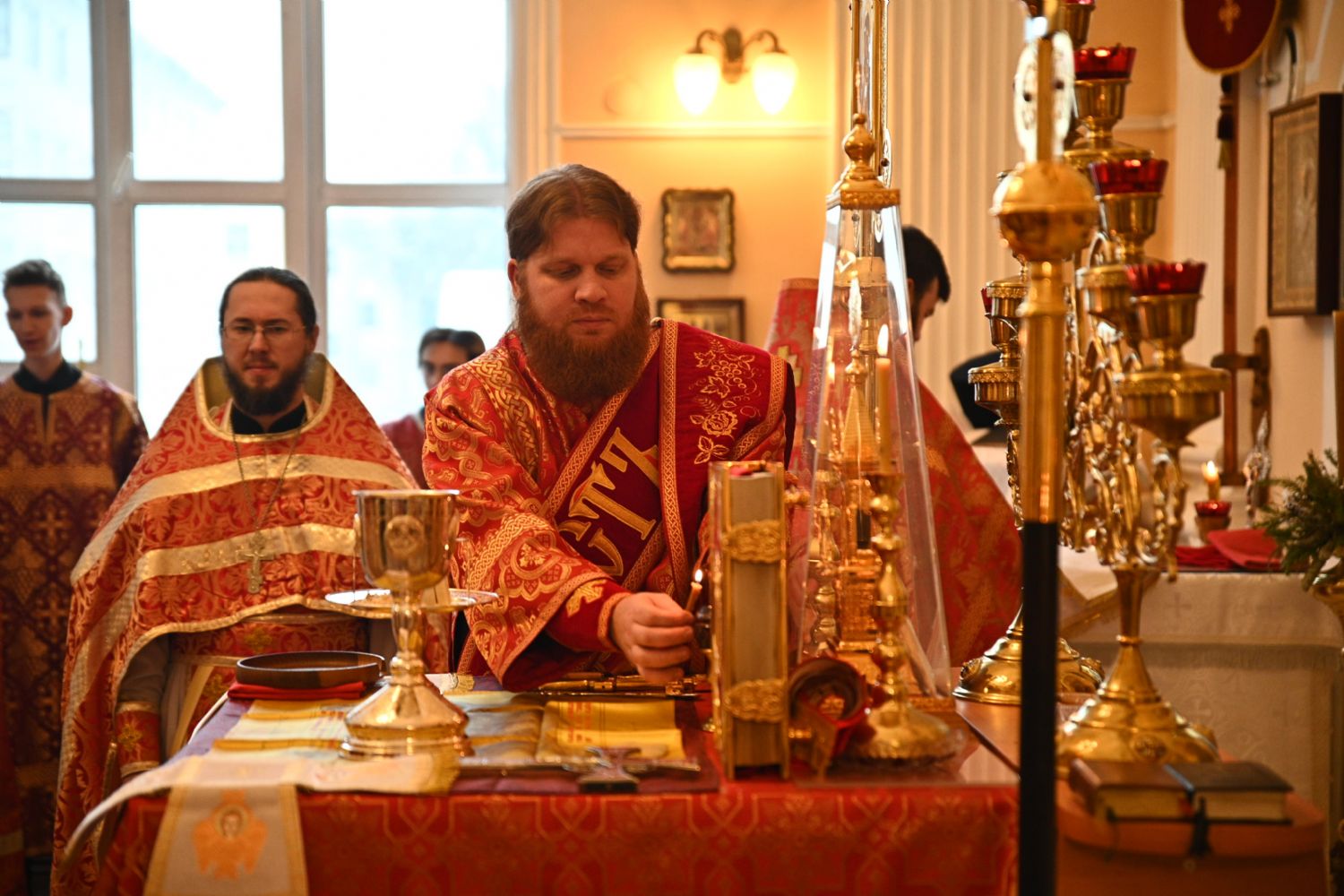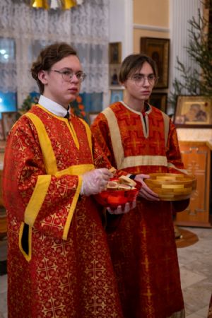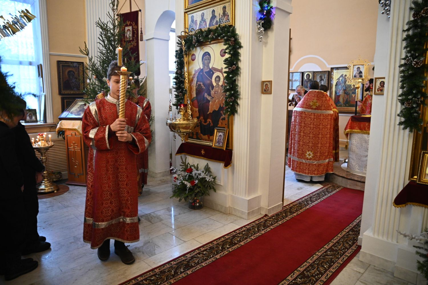 Накануне вечером праздничное всенощное бдение возглавил настоятель храма протоиерей Евгений Сурков в сослужении клирика храма иерея Андрея Иванова. Разделить радость праздника пришел также архиерейский протодиакон Михаил Козловский. Песнопения исполняли хор храма под управлением Аллы Симаковой и детский хор гимназии им. Сергия Радонежского под руководством регента Марии Беляниной.