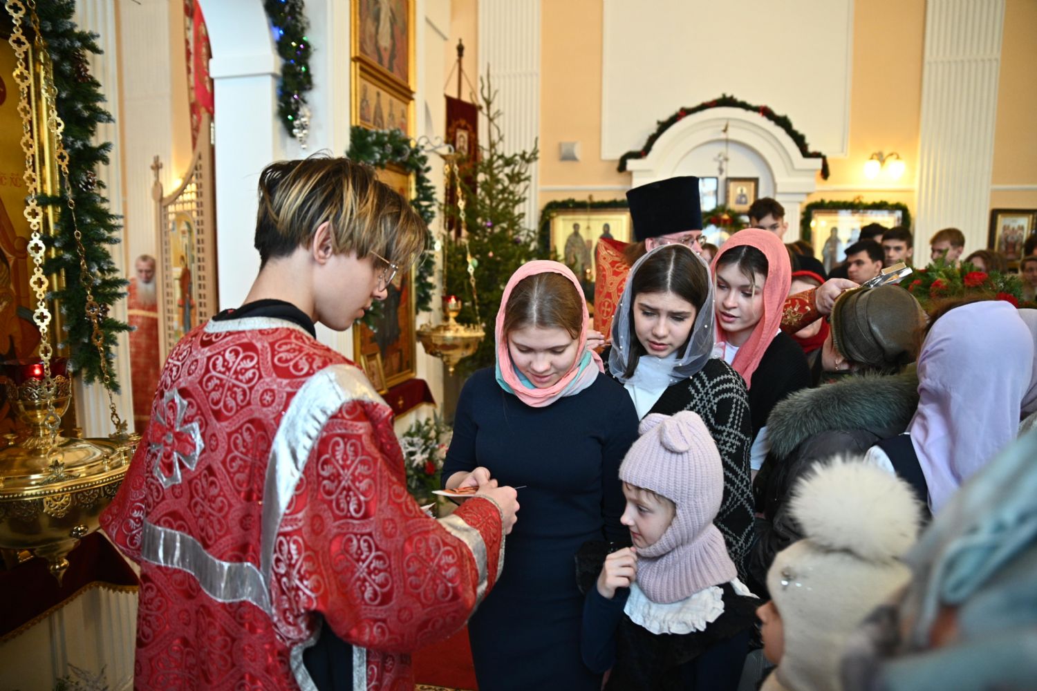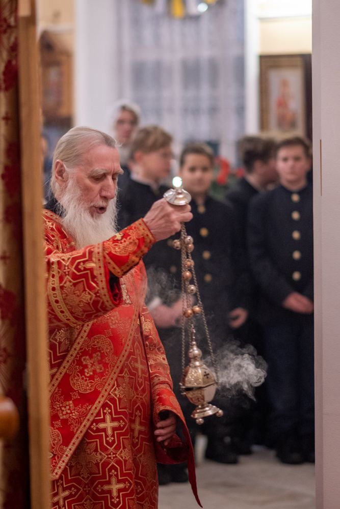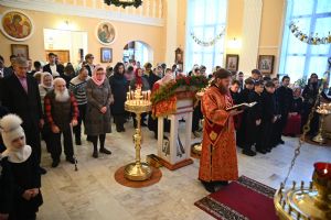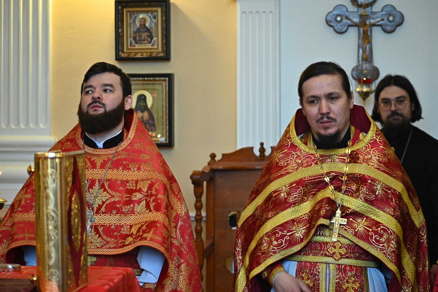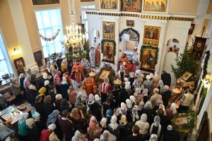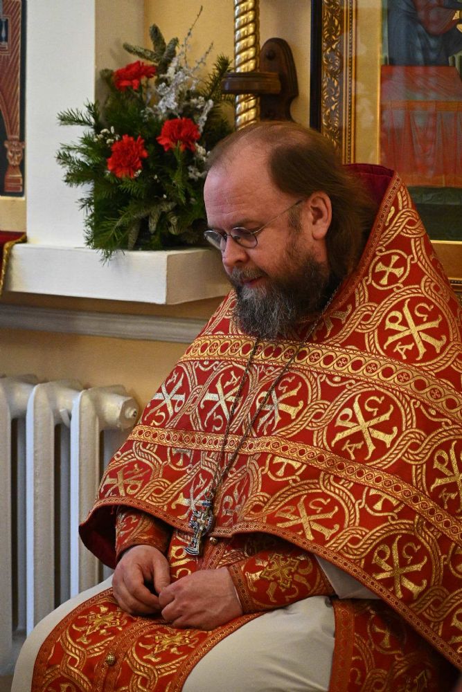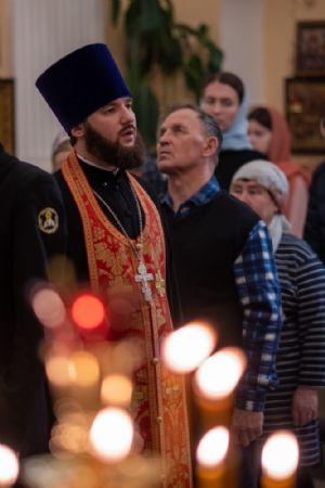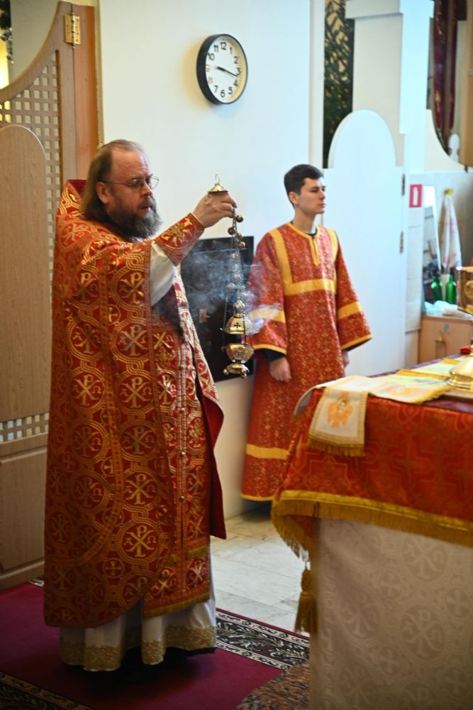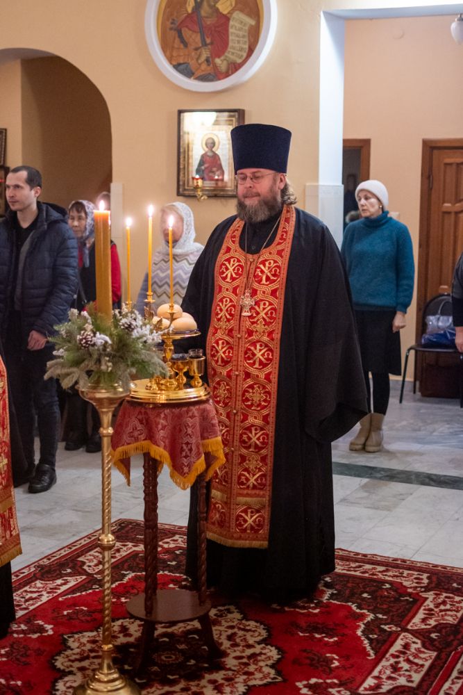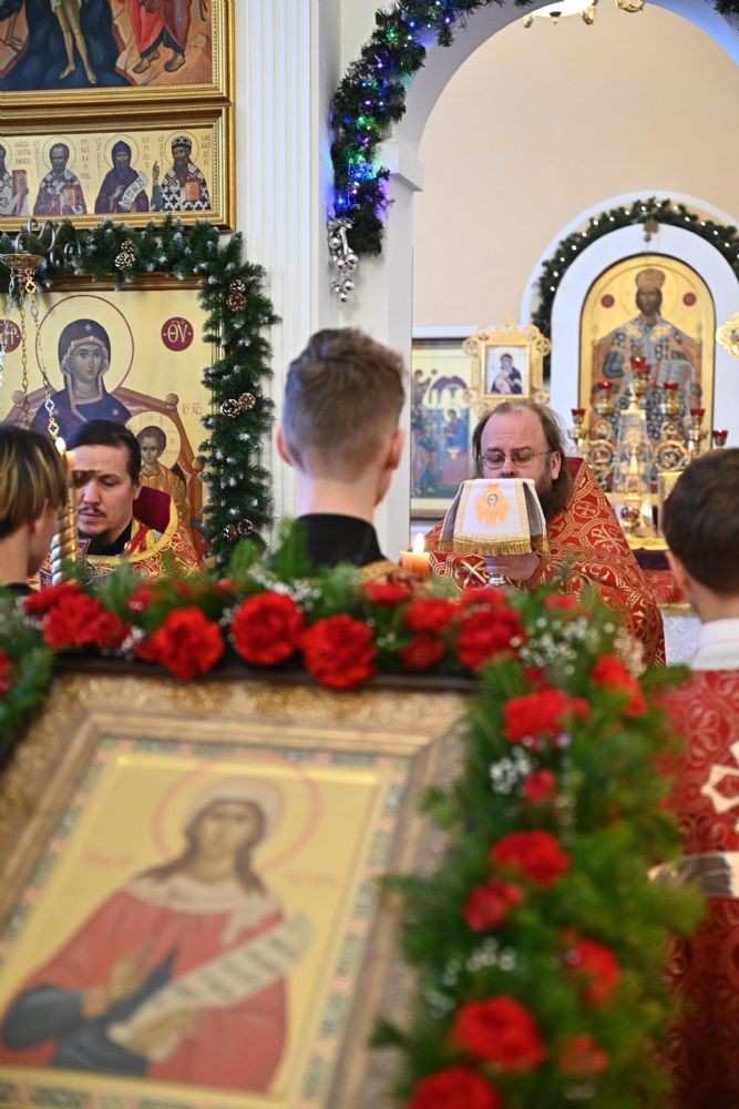 Накануне вечером праздничное всенощное бдение возглавил настоятель храма протоиерей Евгений Сурков в сослужении клирика храма иерея Андрея Иванова. Разделить радость праздника пришел также архиерейский протодиакон Михаил Козловский. Песнопения исполняли хор храма под управлением Аллы Симаковой и детский хор гимназии им. Сергия Радонежского под руководством регента Марии Беляниной.