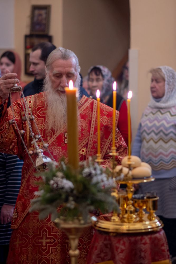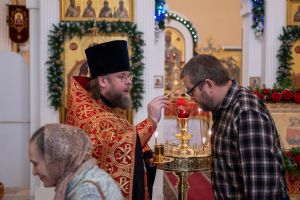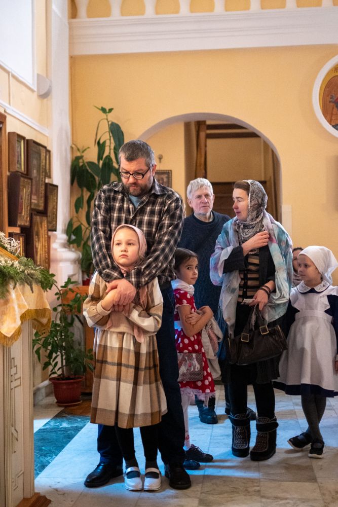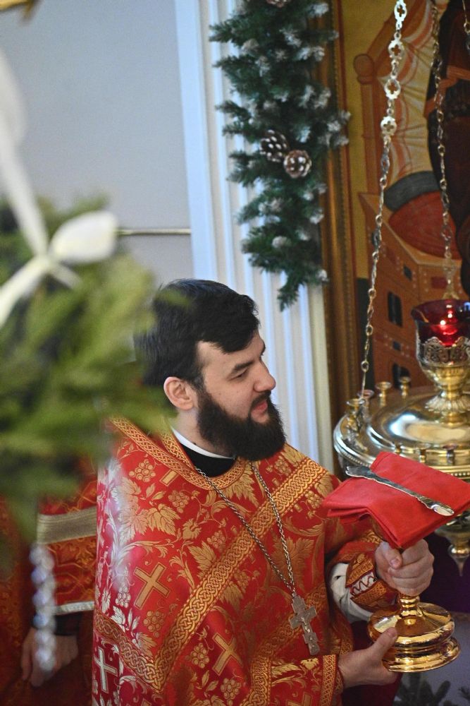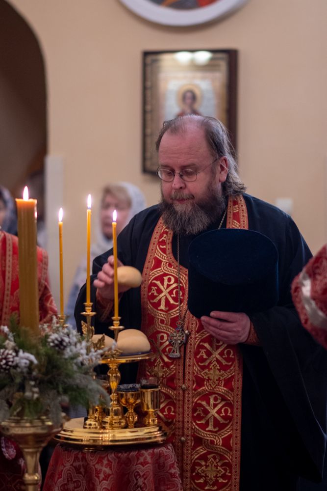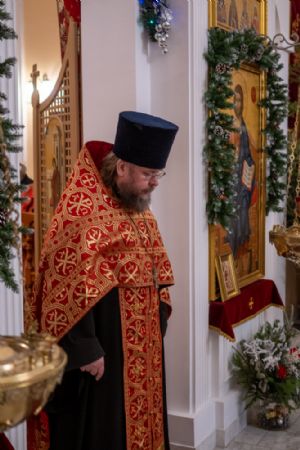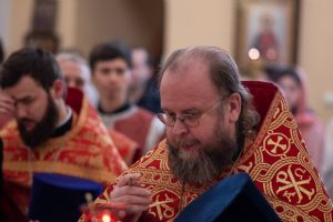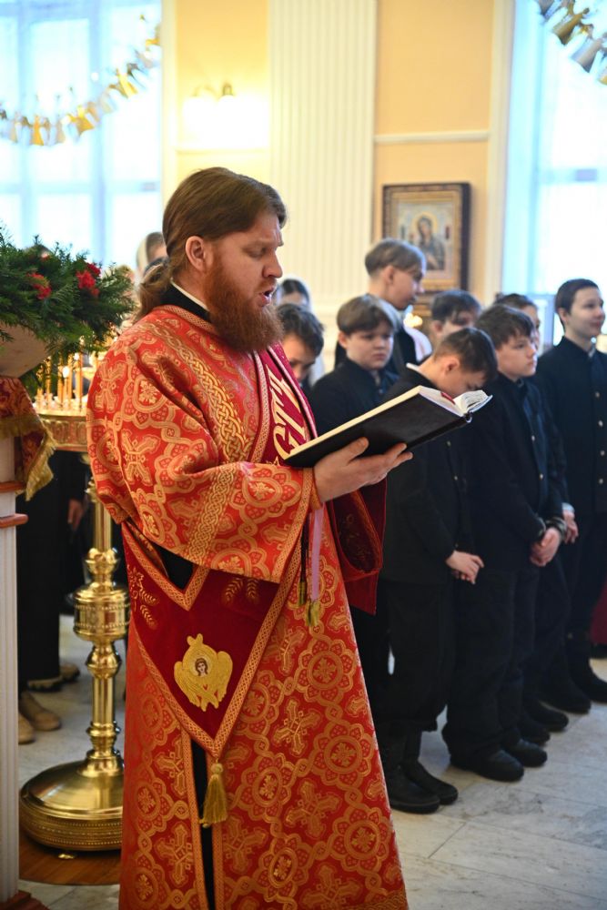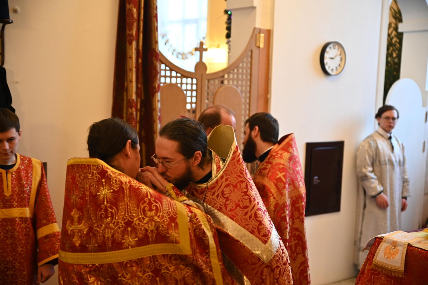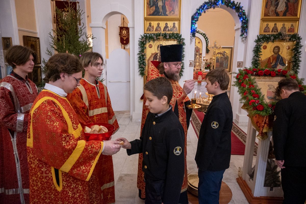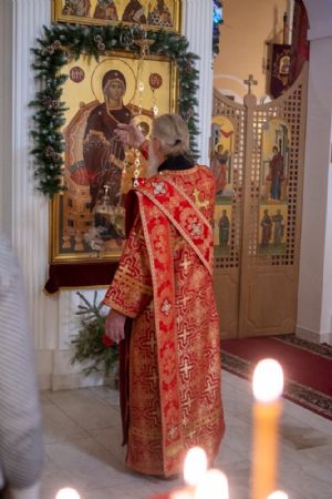 Накануне вечером праздничное всенощное бдение возглавил настоятель храма протоиерей Евгений Сурков в сослужении клирика храма иерея Андрея Иванова. Разделить радость праздника пришел также архиерейский протодиакон Михаил Козловский. Песнопения исполняли хор храма под управлением Аллы Симаковой и детский хор гимназии им. Сергия Радонежского под руководством регента Марии Беляниной.
