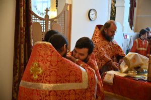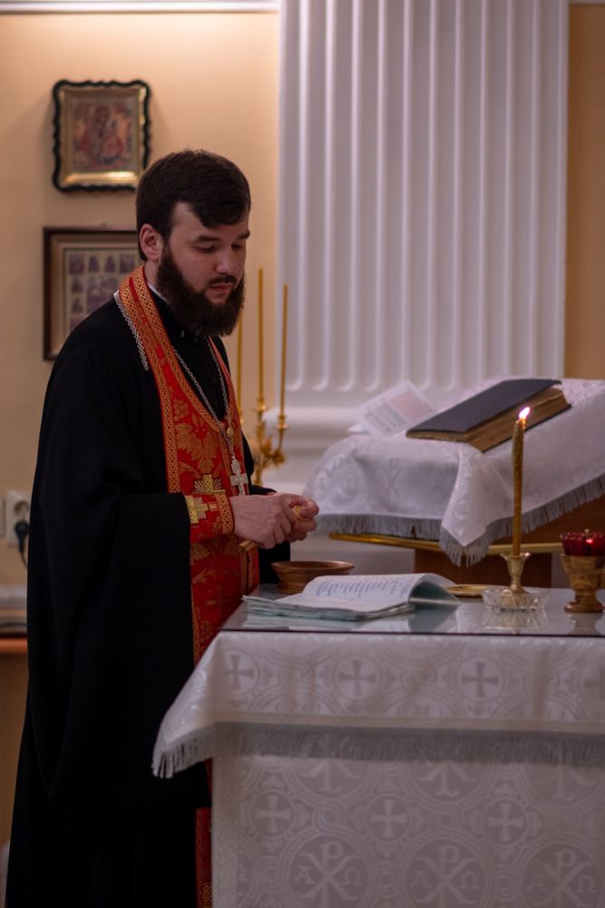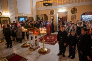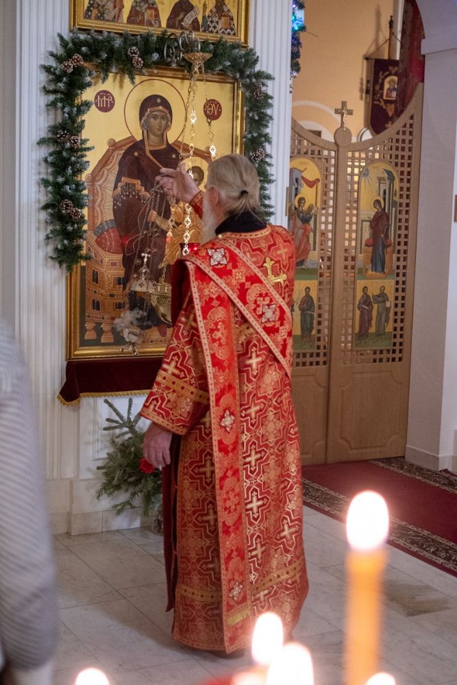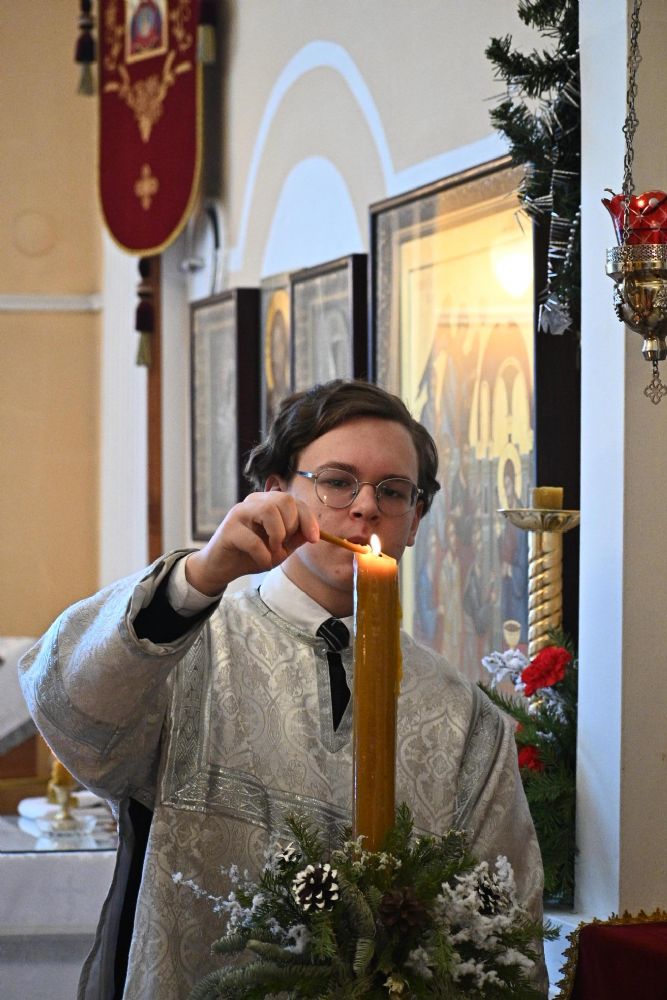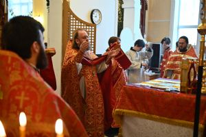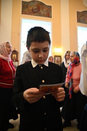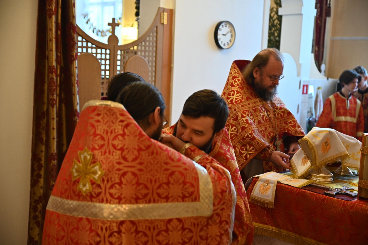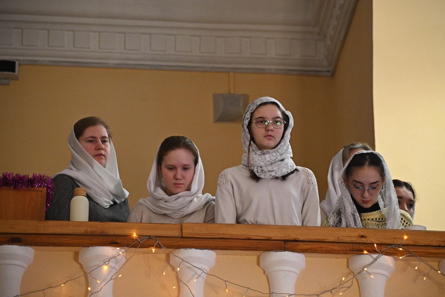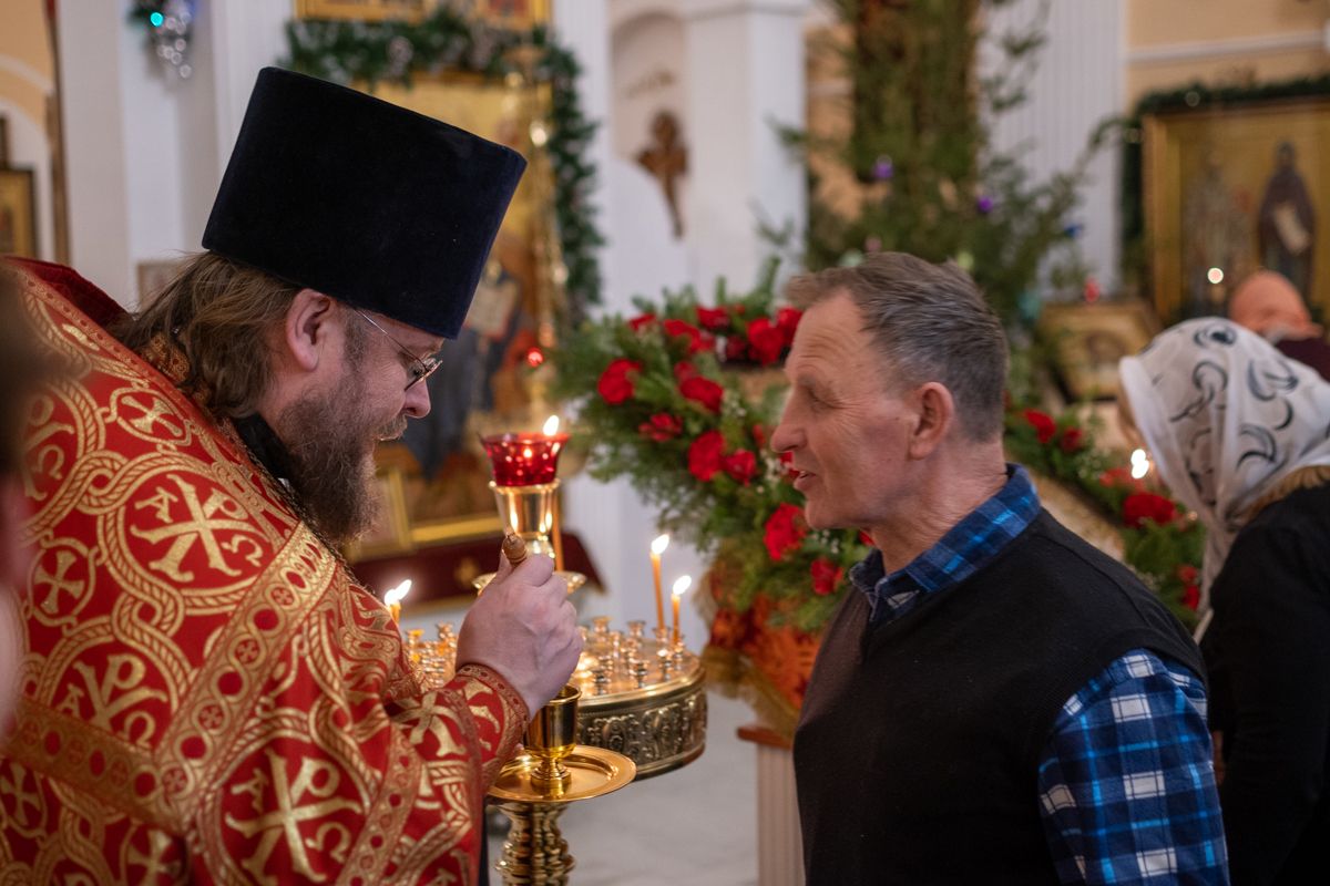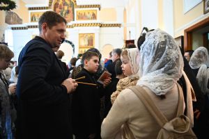 Накануне вечером праздничное всенощное бдение возглавил настоятель храма протоиерей Евгений Сурков в сослужении клирика храма иерея Андрея Иванова. Разделить радость праздника пришел также архиерейский протодиакон Михаил Козловский. Песнопения исполняли хор храма под управлением Аллы Симаковой и детский хор гимназии им. Сергия Радонежского под руководством регента Марии Беляниной.