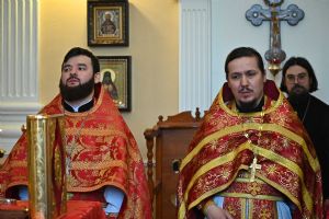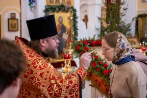 А утром в Татианинском храме была совершена соборная Божественная литургия. Настоятелю протоиерею Евгению Суркову сослужили клирик храма Рождества Пресвятой Богородицы с. Семеновка иерей Сергий Асланов, клирик Вознесенского собора г. Йошкар-Олы иерей Димитрий Копылов, клирик Татианинского храма иерей Андрей Иванов, протодиакон Михаил Козловский и клирик Благовещенского кафедрального собора диакон Андрей Дружинин.