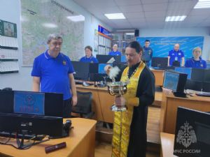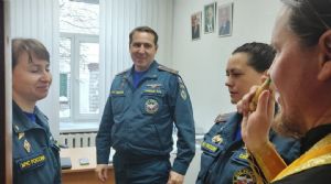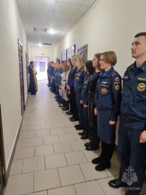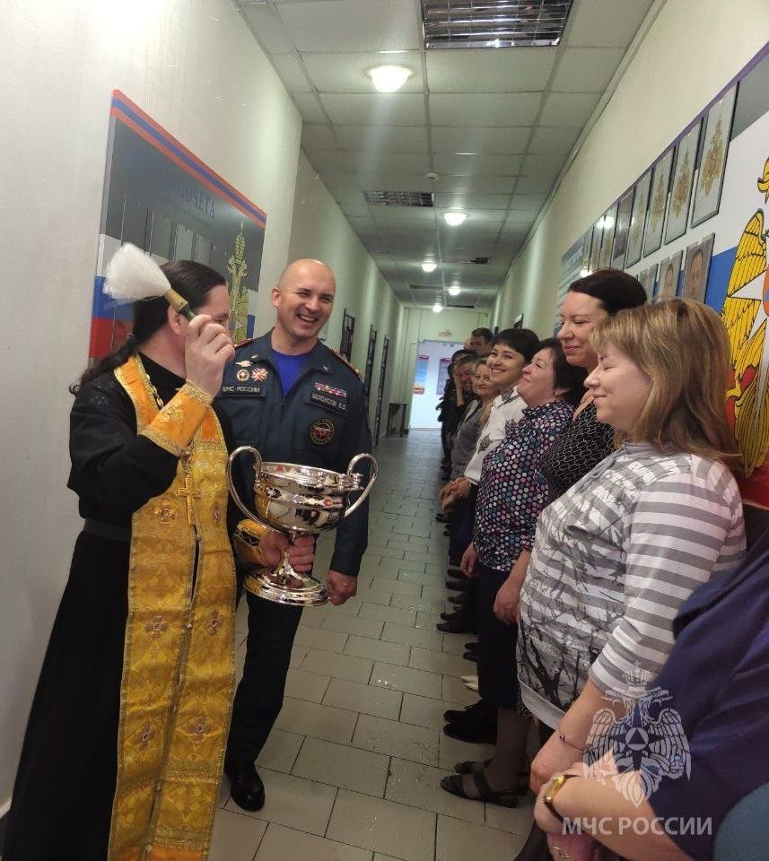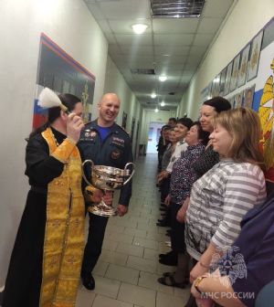 Отец Димитрий рассказал об истории праздника, его смысле и значимости в современном мире. Был проведен обряд окропления святой водой личного состава спасательного ведомства, служебных помещений, гаражных боксов, спецтранспорта, пожарно-технического вооружения и рабочих мест.
