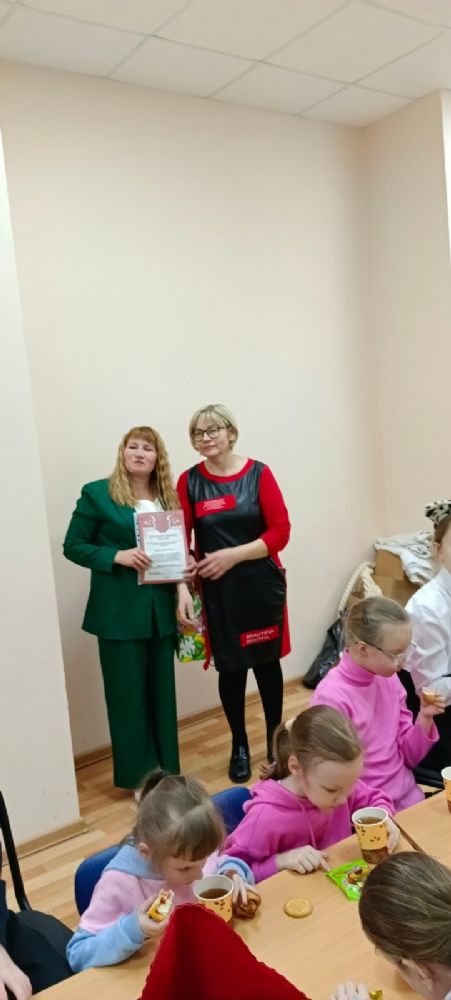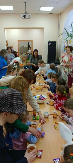 Завершилась встреча чаепитием с вкусной выпечкой и сладостями. Врио председателя Йошкар-Олинской местной организации Всероссийского общества слепых Татьяна Павлова вручила гостям благодарственное письмо за участие в праздничном мероприятии. А учащиеся и педагоги воскресной школы подарили деткам студии «Волшебная радуга» игрушки для развития моторики и настольные игры.