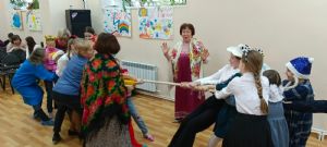 Затем были проведены совместные игры и конкурсы – водили хороводы, перетягивали канат, играли на шумовых музыкальных инструментах… Настроение у всех было праздничным и радостным.