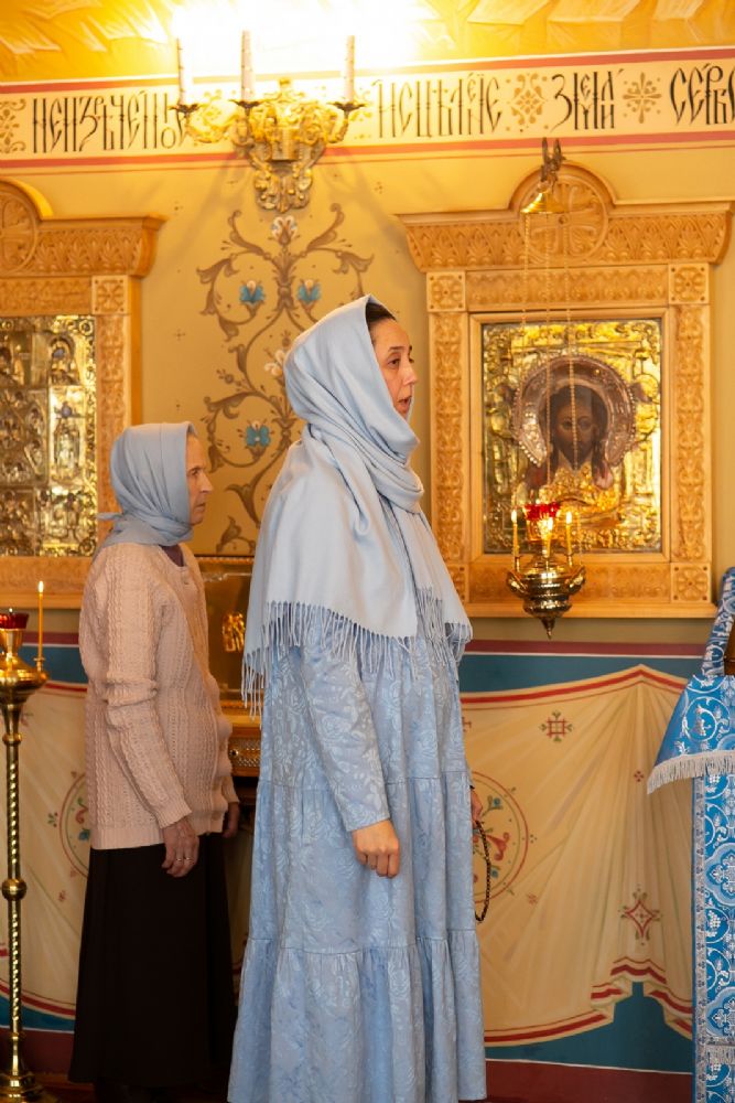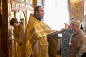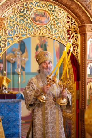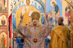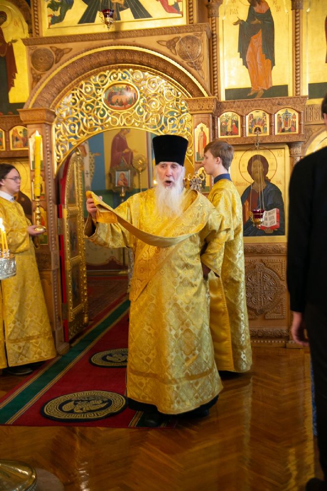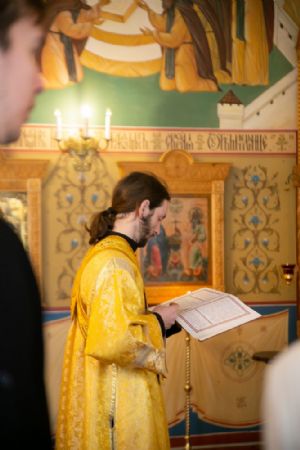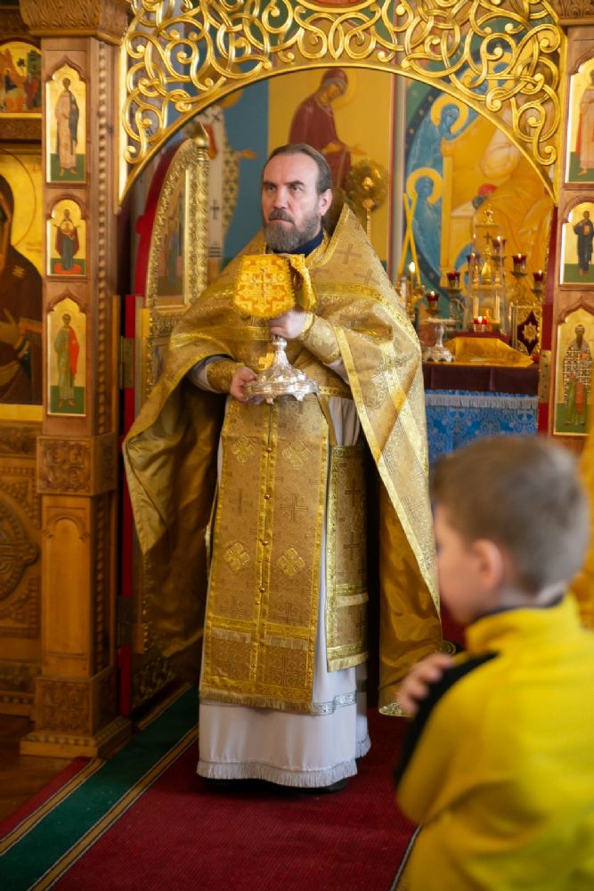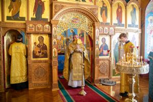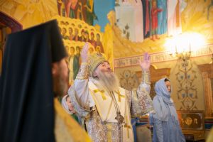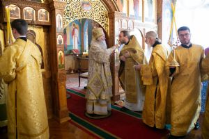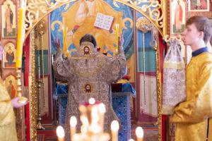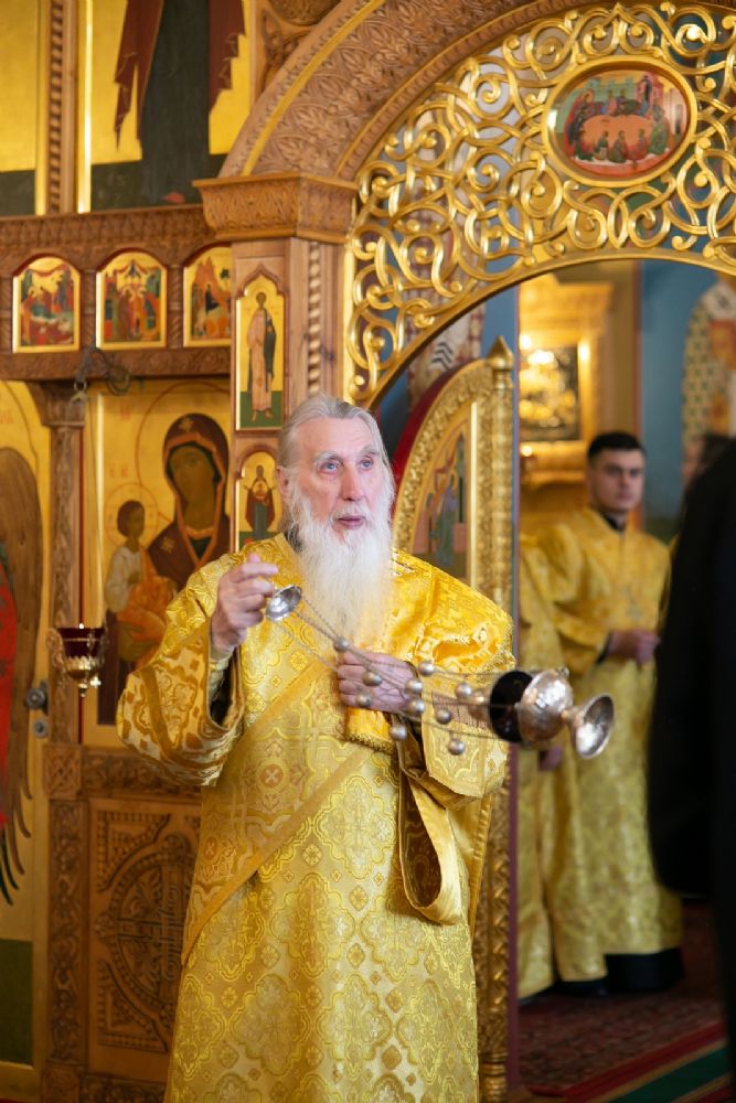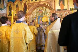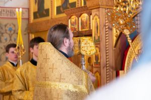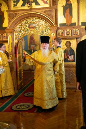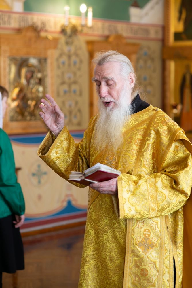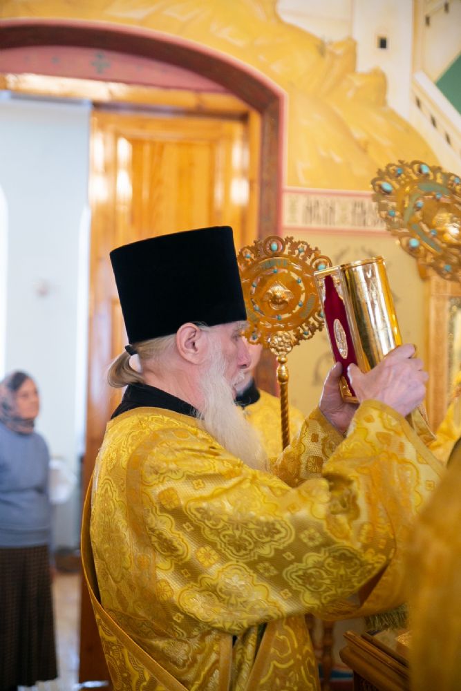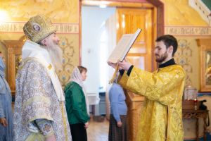 Владыке сослужили секретарь Йошкар-Олинского епархиального управления иеромонах Серафим (Пасанаев) и протодиакон Михаил Козловский. Песнопения исполнял малый состав хора «Благовест» под управлением регента Татьяны Черновой.