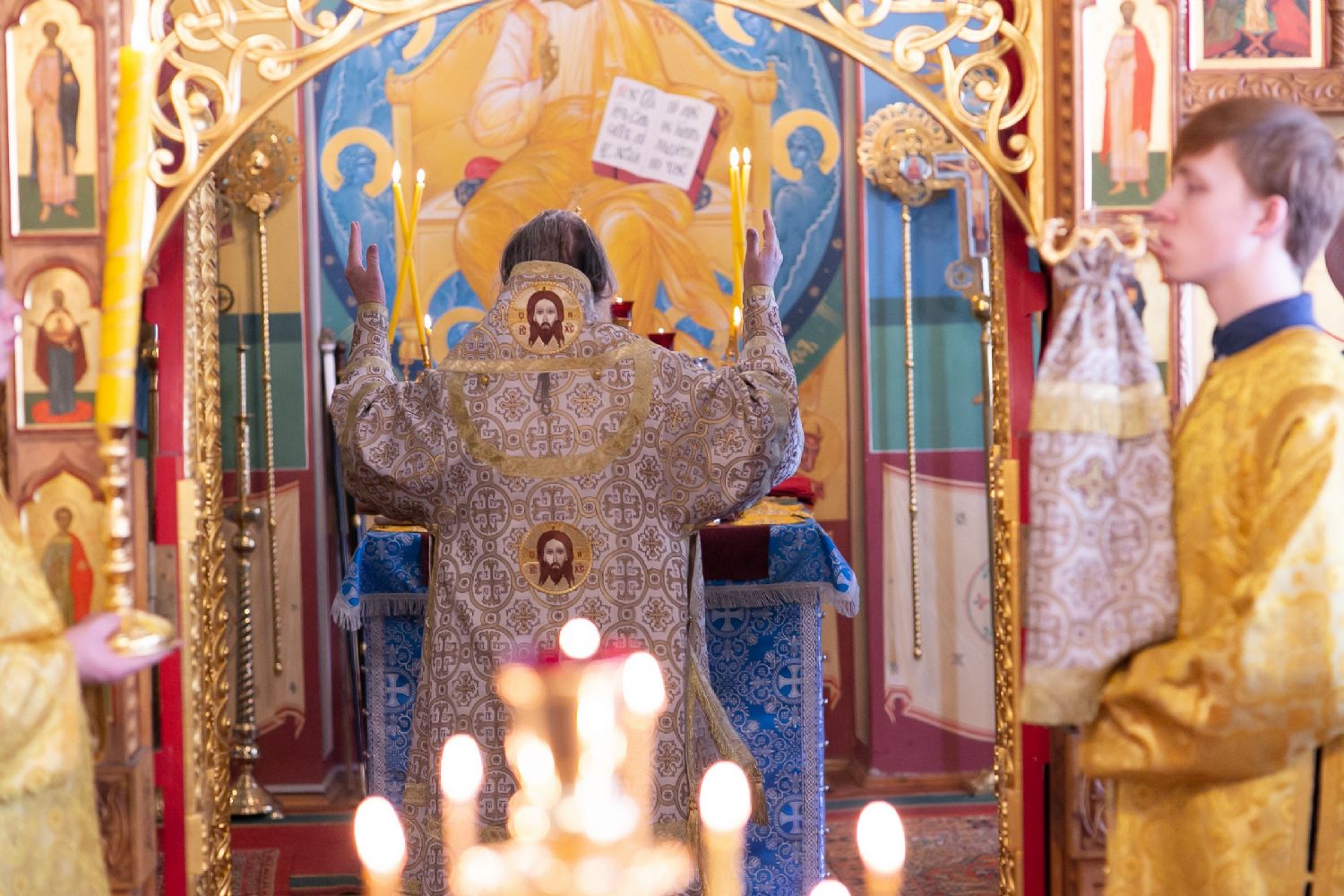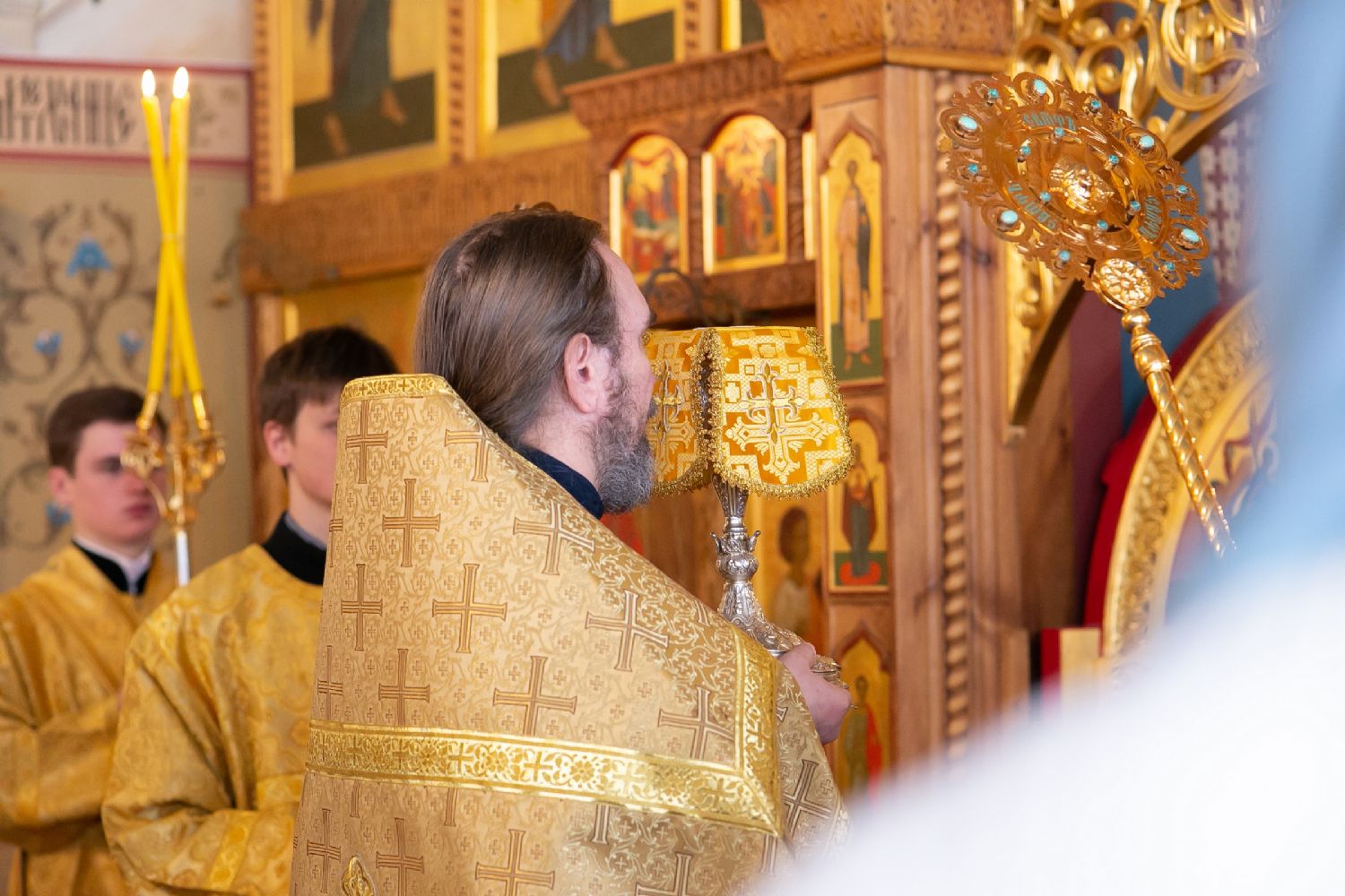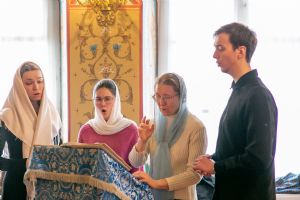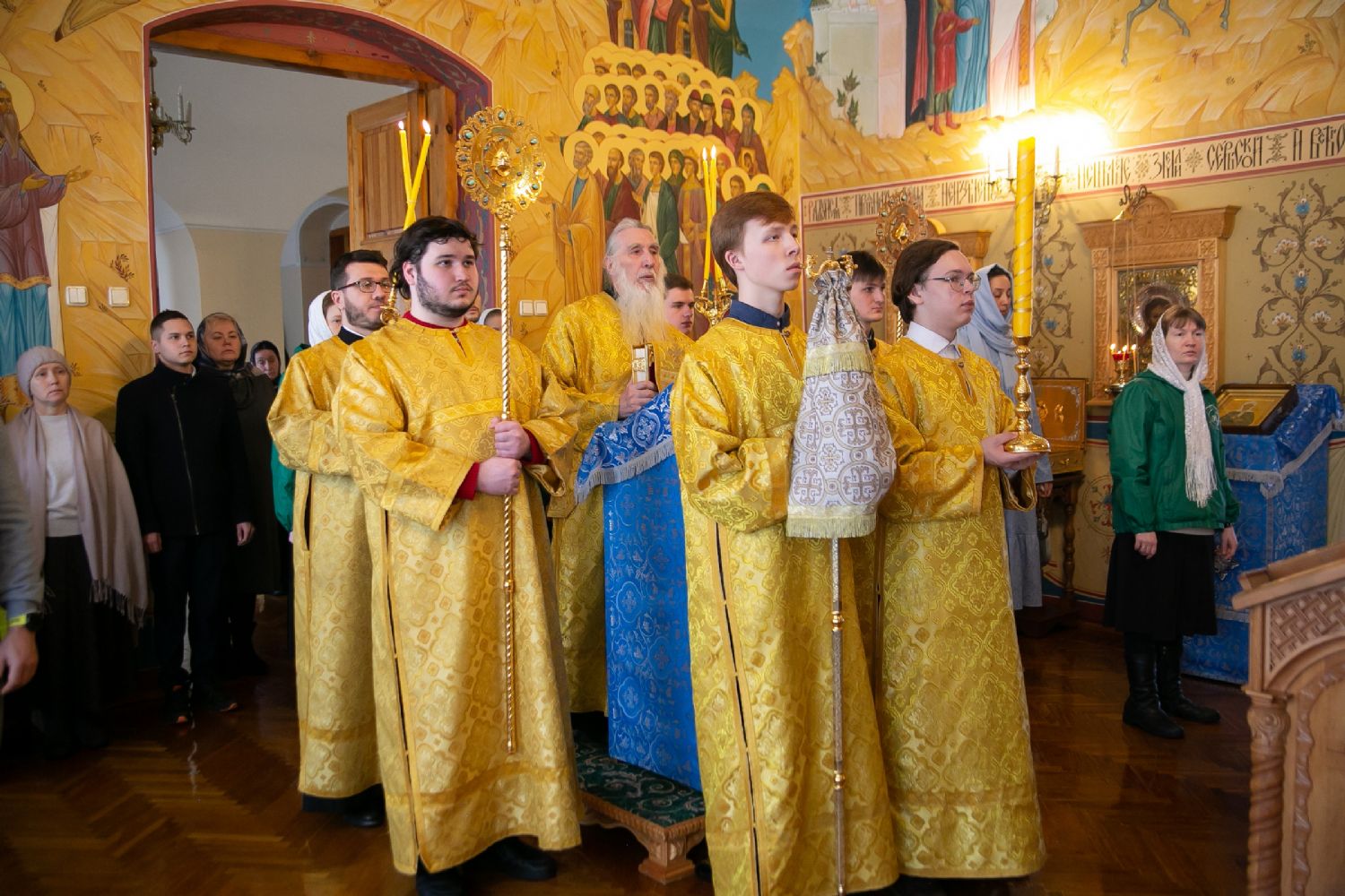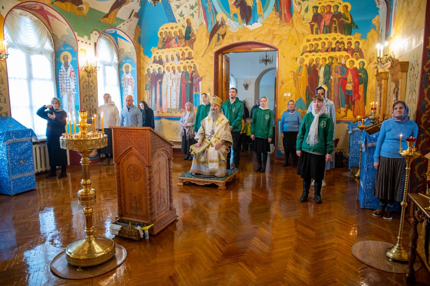 Владыке сослужили секретарь Йошкар-Олинского епархиального управления иеромонах Серафим (Пасанаев) и протодиакон Михаил Козловский. Песнопения исполнял малый состав хора «Благовест» под управлением регента Татьяны Черновой.