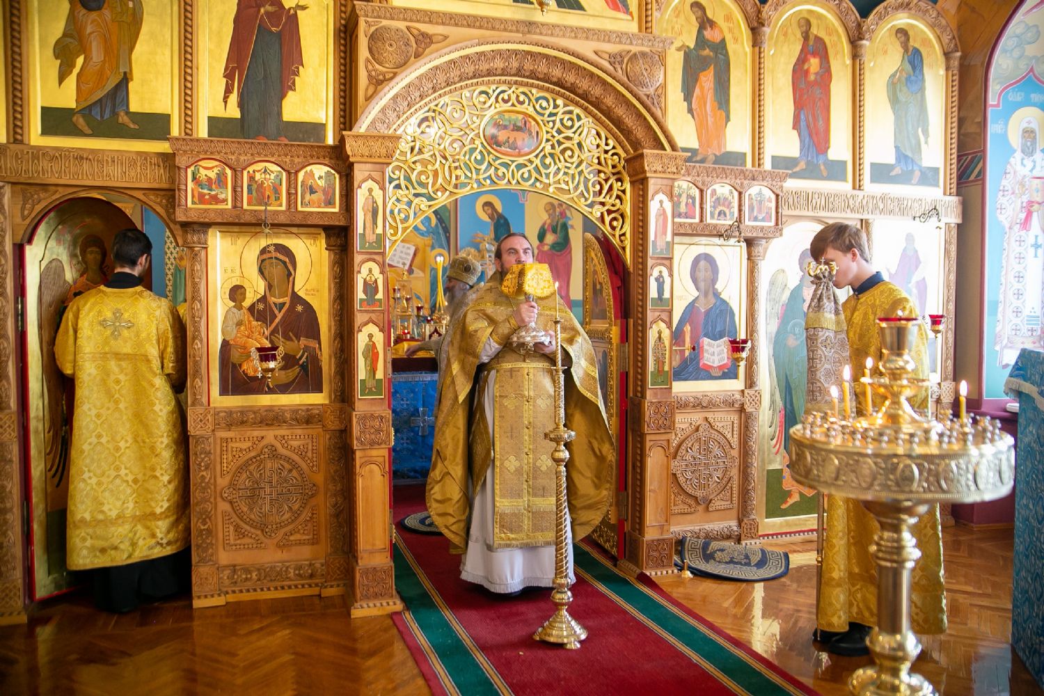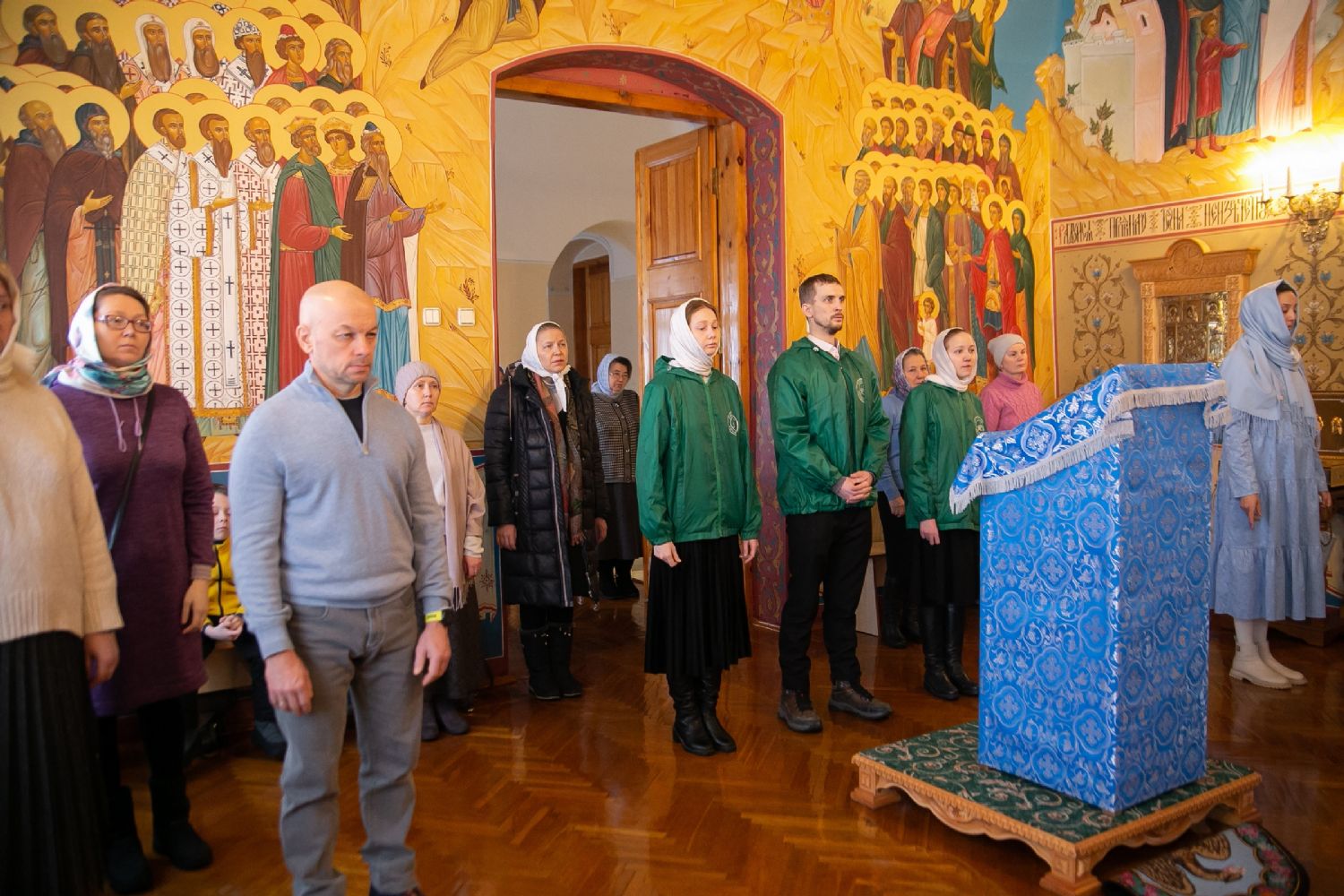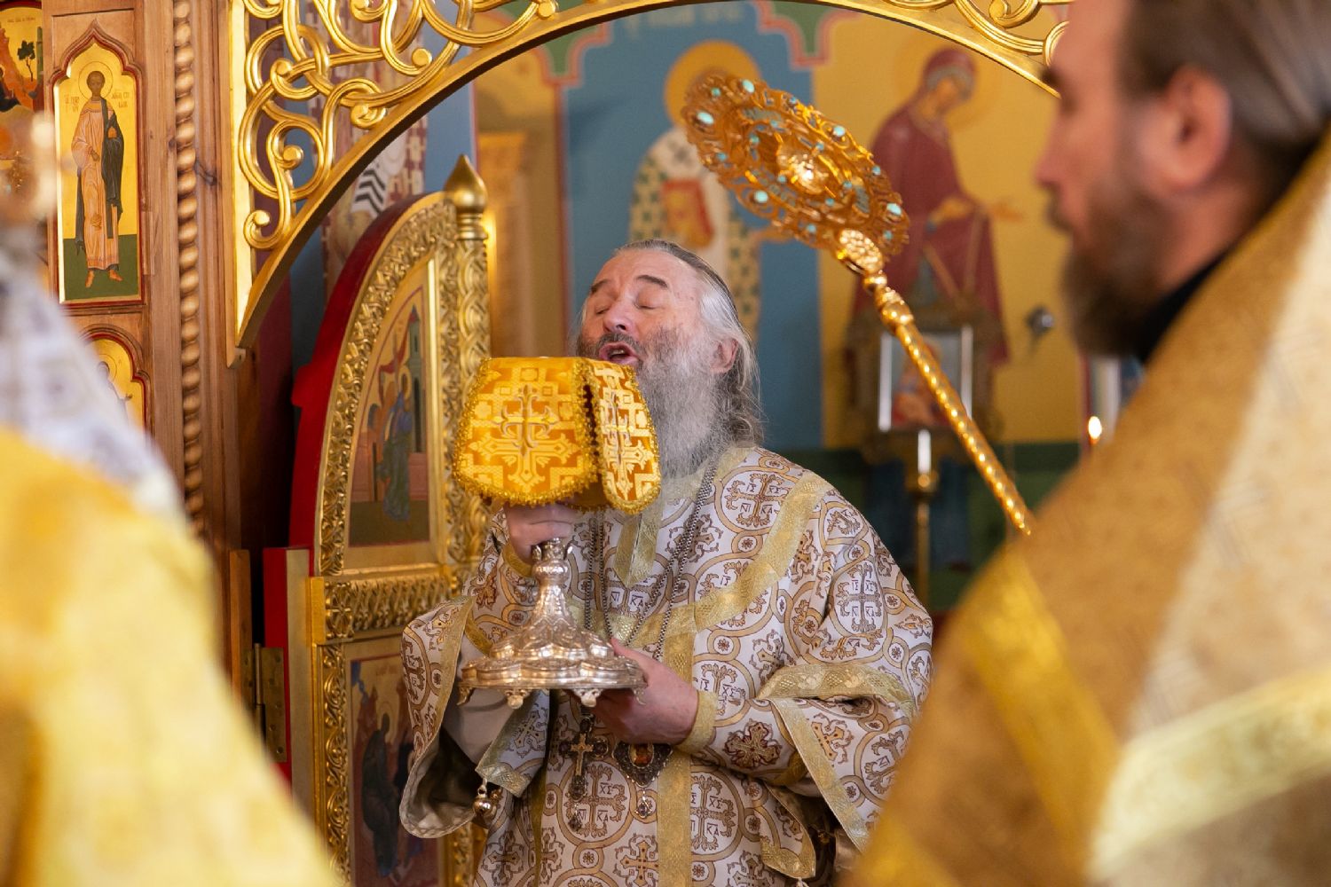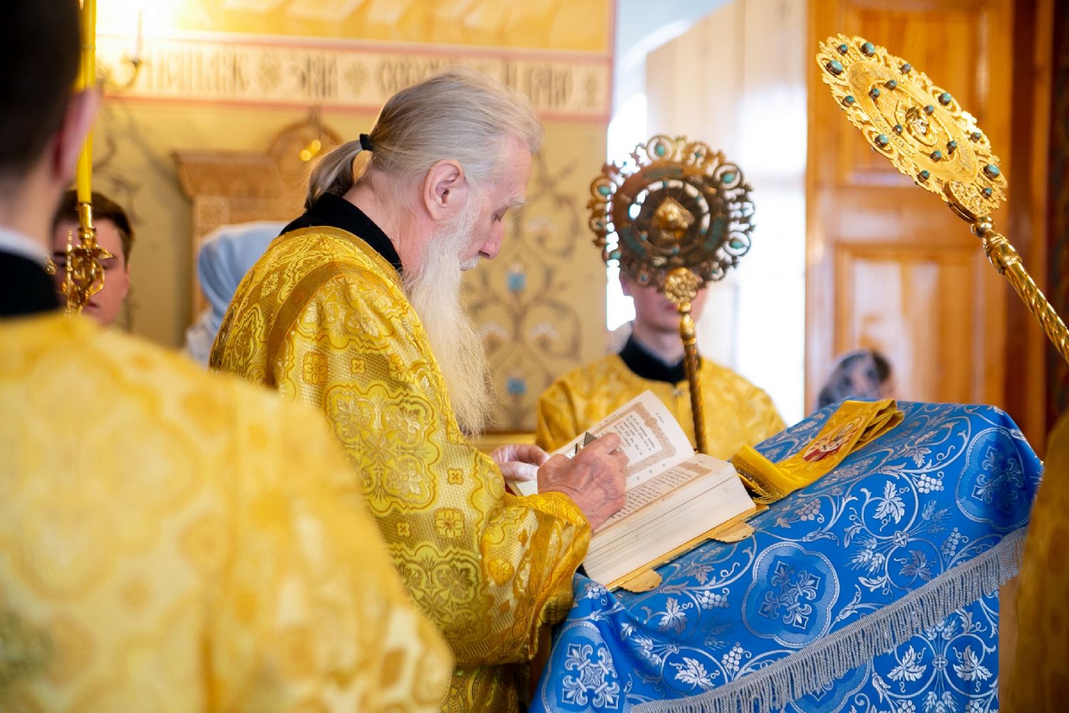 Владыке сослужили секретарь Йошкар-Олинского епархиального управления иеромонах Серафим (Пасанаев) и протодиакон Михаил Козловский. Песнопения исполнял малый состав хора «Благовест» под управлением регента Татьяны Черновой.