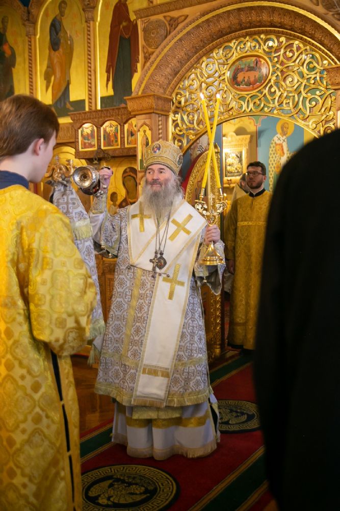11 февраля, в Неделю 36-ю по Пятидесятнице, митрополит Йошкар-Олинский и Марийский Иоанн возглавил Божественную литургию в домовом храме епархиального управления в честь иконы Божией Матери «Троеручица».