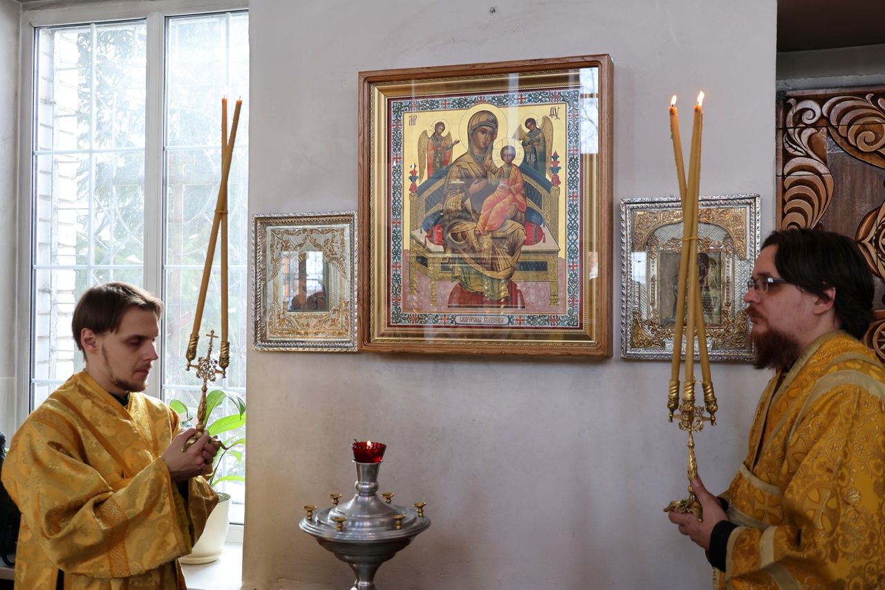 Также глава епархии поделился с верующими радостью, что в Никольский собор Волжска на днях прибыла новая икона Пресвятой Богородицы, именуемая «Всецарица», написанная художником из Тамбова Николаем Федоровичем Пьяновым. Работы этого мастера украшают и домовый храм Волжского епархиального управления, освященный год назад в честь иконы Божией Матери «Скоропослушница».