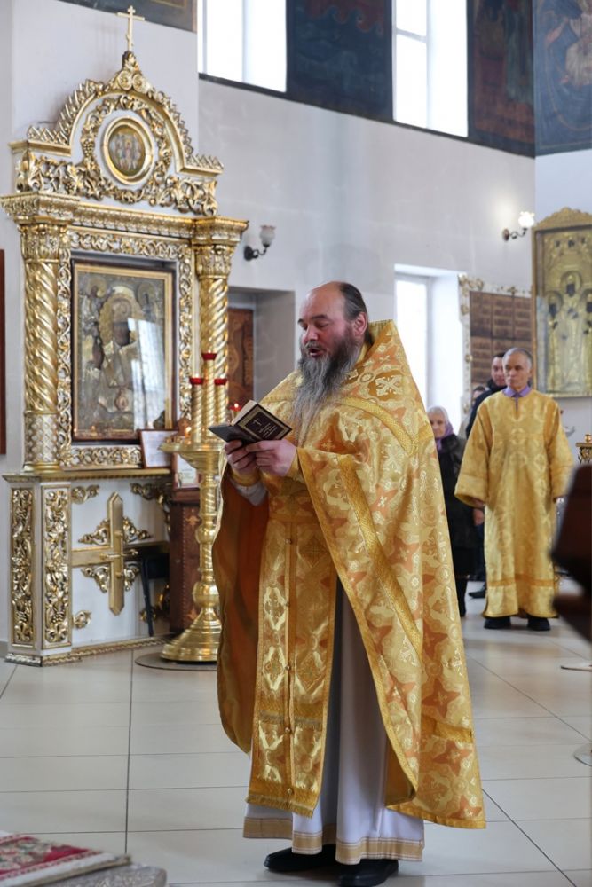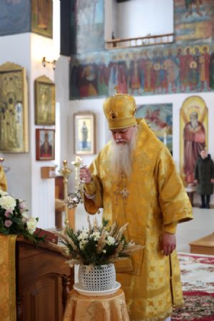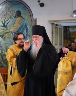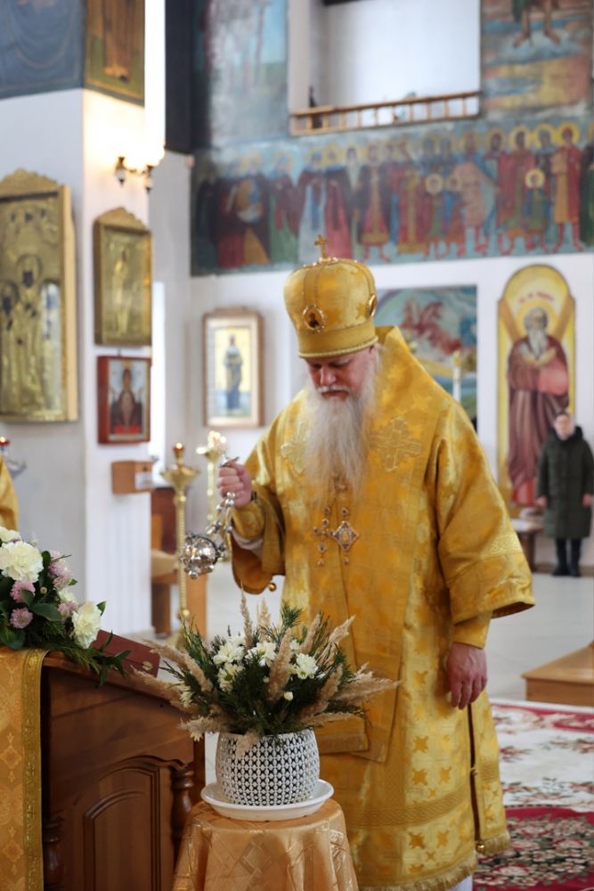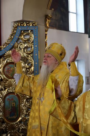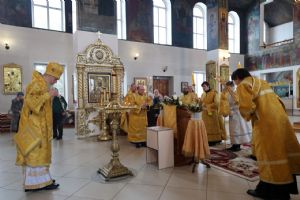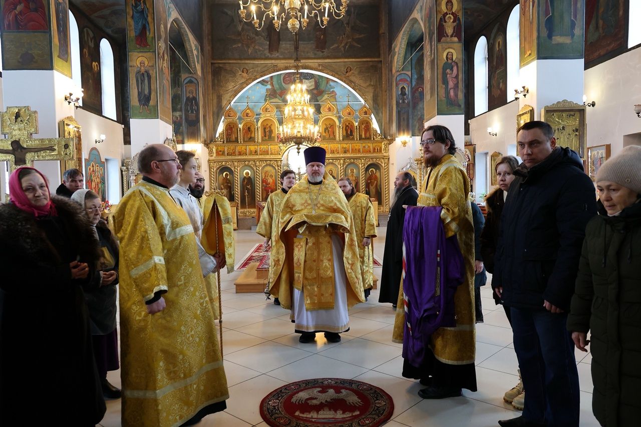 Его Преосвященству сослужили клирики епархии иерей Сергий Першаков, иерей Сергий Алексеев, диакон Иоанн Захаров, диакон Герман Михайлов. Песнопения исполнил народный хор под управлением Евгения Чигарова.