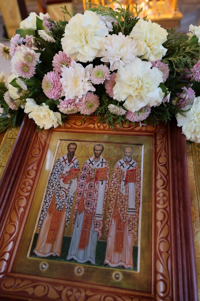 После Литургии духовенство совершило славление перед иконой трех святителей.