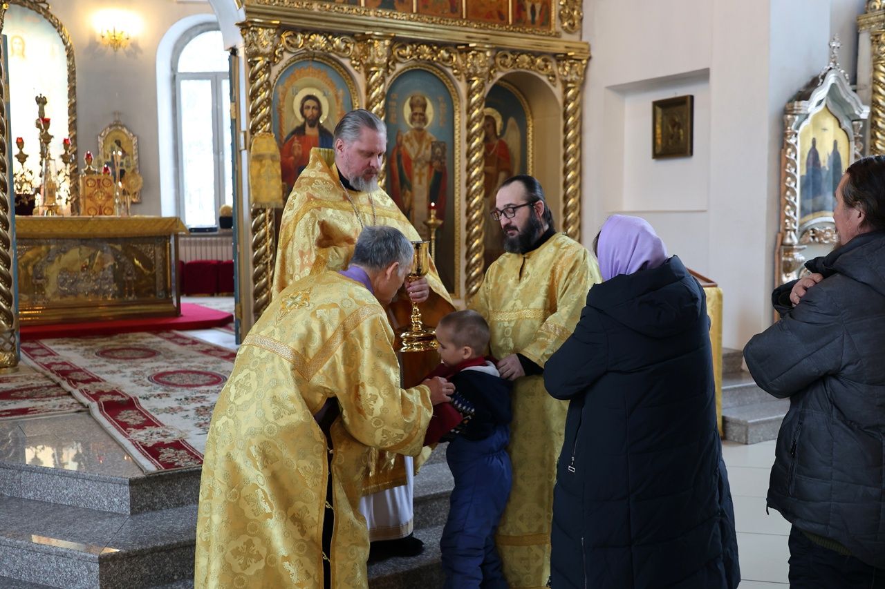 12 февраля, в день памяти вселенских учителей и святителей Василия Великого, Григория Богослова и Иоанна Златоустого, епископ Волжский и Сернурский Феофан совершил Божественную литургию в Никольском кафедральном соборе г. Волжска.