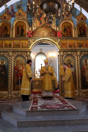 По окончании богослужения владыка Феофан обратился к верующим с архипарстырским словом: «Возлюбленные о Господе всечестные отцы, дорогие во Христе братья и сестры! Сегодня Святая Церковь празднует память великих святителей, прославивших Бога своим житием. Мы с вами знаем, что в годичном круге богослужений совершается Божественная литургия, составленная Иоанном Златоустом, и десять раз в году – Литургия, составленная Василием Великим. Каждый из этих святителей был правящим архиереем в своей епархии, но духовное значение и влияние на христианскую паству распространялось далеко за пределы епархий, ибо житие их было необыкновенно высоким духовно.