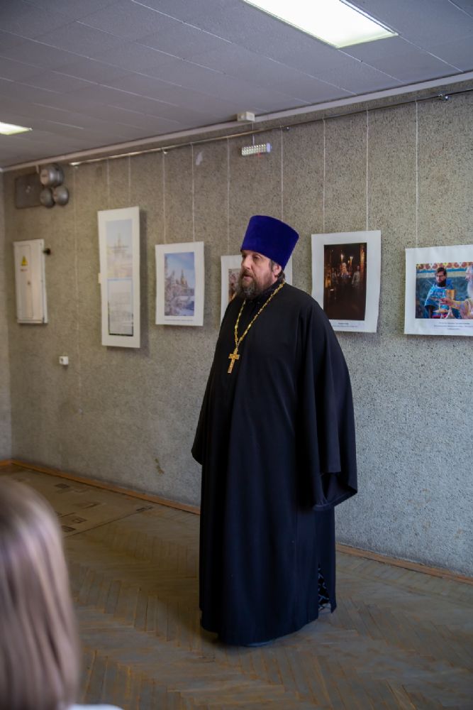 На открытии выставки присутствовал благочинный Йошкар-Олинского церковного округа протоиерей Андрей Норкин – он раскрыл духовный смысл праздника Сретения Господня – встречи человека с Богом, рассказал о устройстве земной Церкви Христовой, Главой которой является Сам Христос и где есть все условия для спасения человека, его приведения в Царствие Небесное.