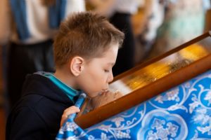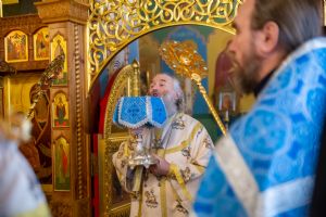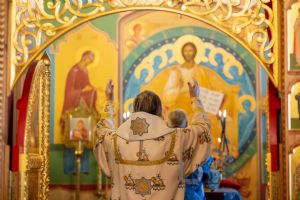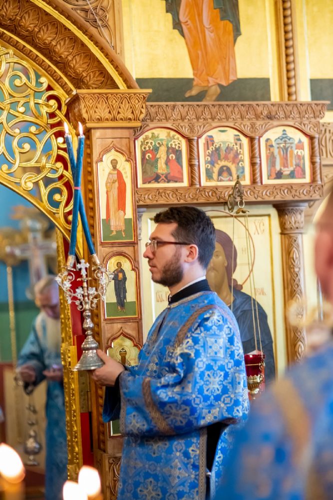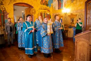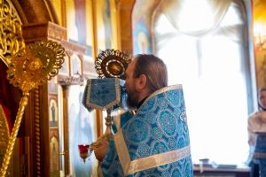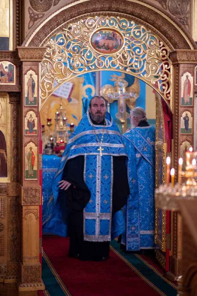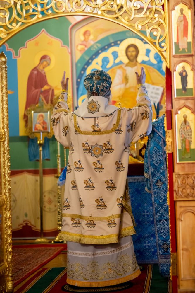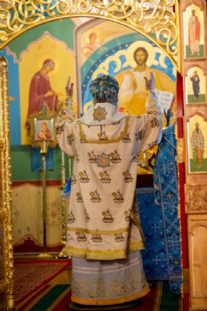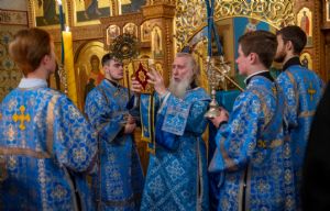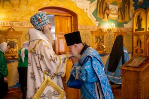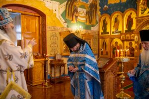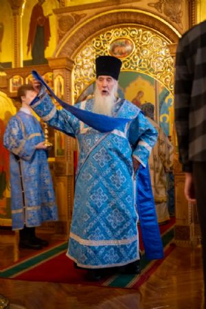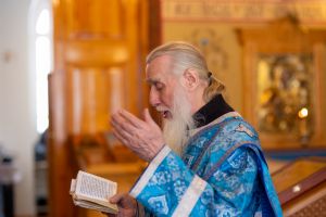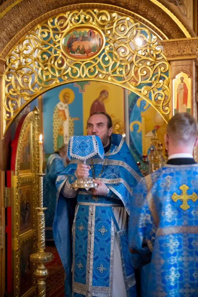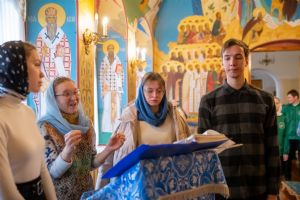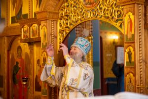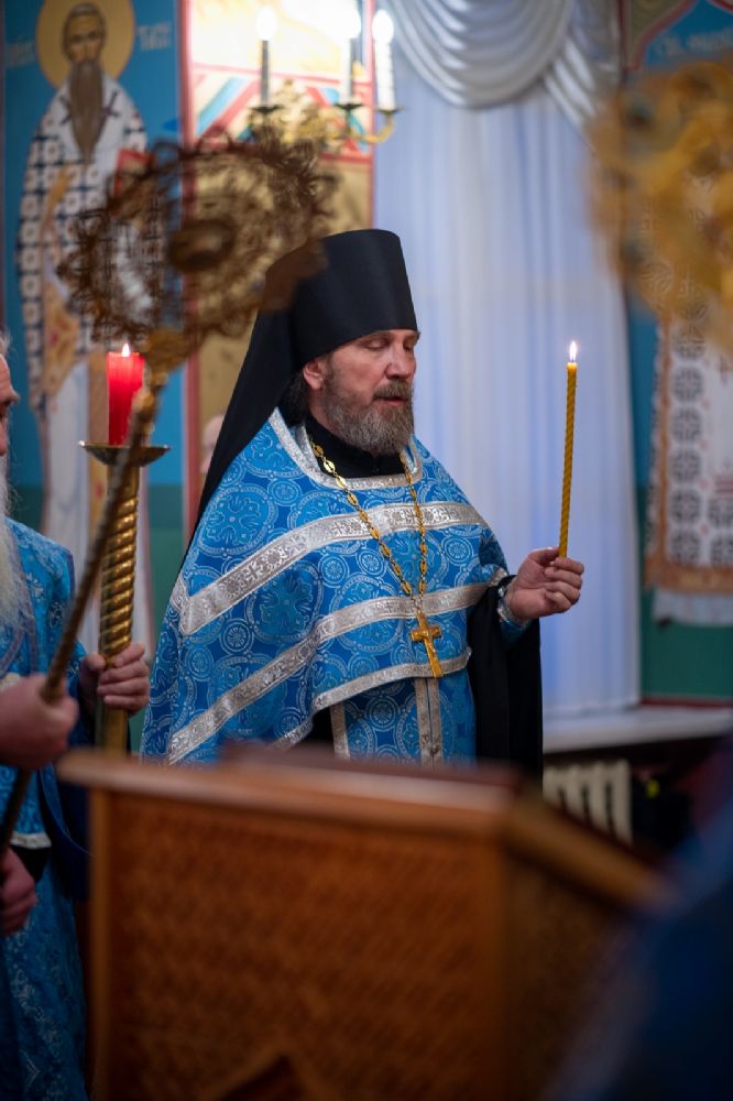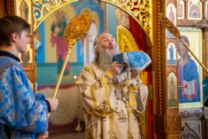 Архипастырю сослужили секретарь Йошкар-Олинского епархиального управления иеромонах Серафим (Пасанаев) и протодиакон Михаил Козловский. Песнопения исполнял малый состав хора «Благовест» под управлением регента Татьяны Черновой.