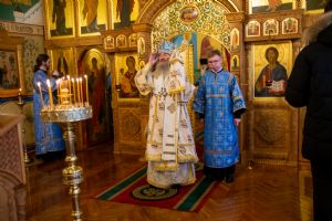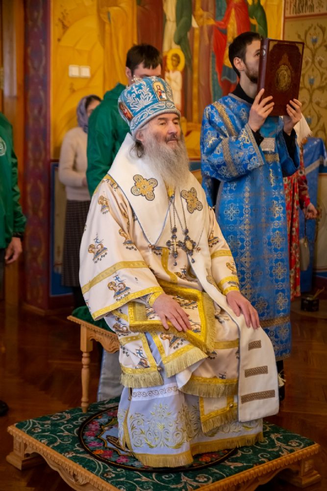18 февраля, в Неделю 37-ю по Пятидесятнице, митрополит Йошкар-Олинский и Марийский Иоанн возглавил Божественную литургию в домовом храме епархиального управления в честь иконы Божией Матери «Троеручица». Накануне владыка совершил здесь же всенощное бдение.