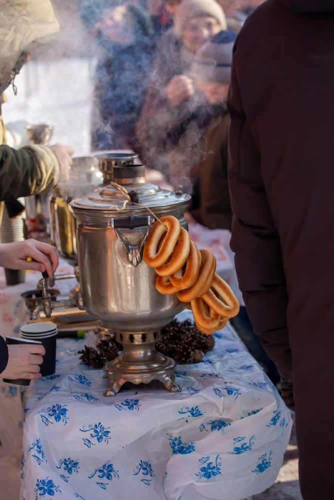 Традиционные забавы на свежем воздухе уже полюбились молодежи. Несмотря на легкий морозец, на празднике было весело и жарко. Ведь гостей ждали богатырские состязания, конкурсы, народные русские игры и развлечения. И, конечно, какой же праздник без угощений – под открытым небом развернулись столы с традиционным самоваром и баранками, разносили угощения и коробейники в традиционных русских костюмах.