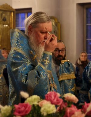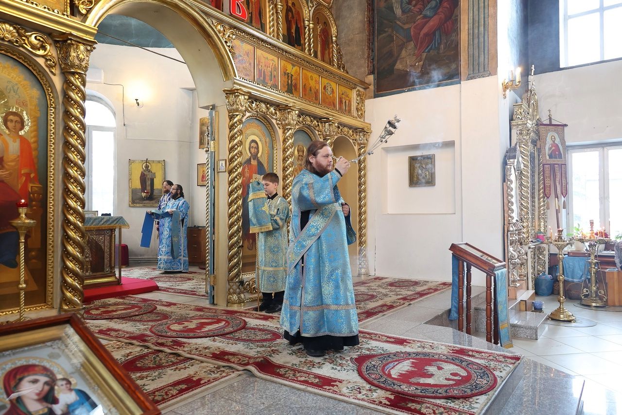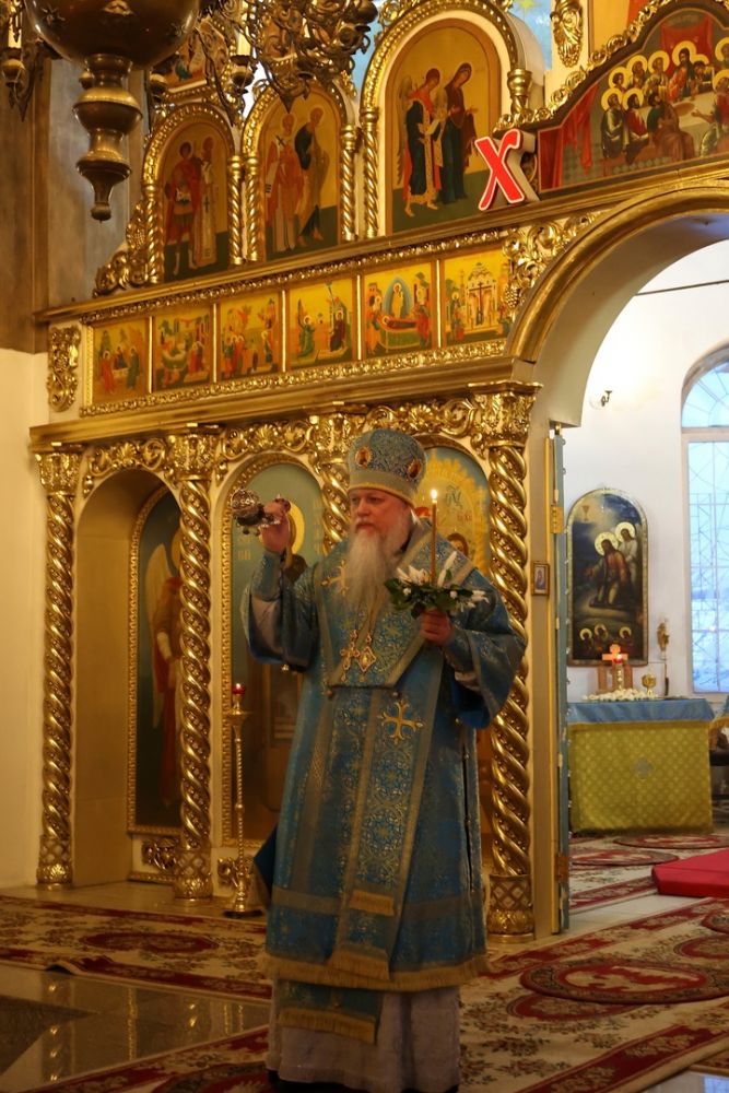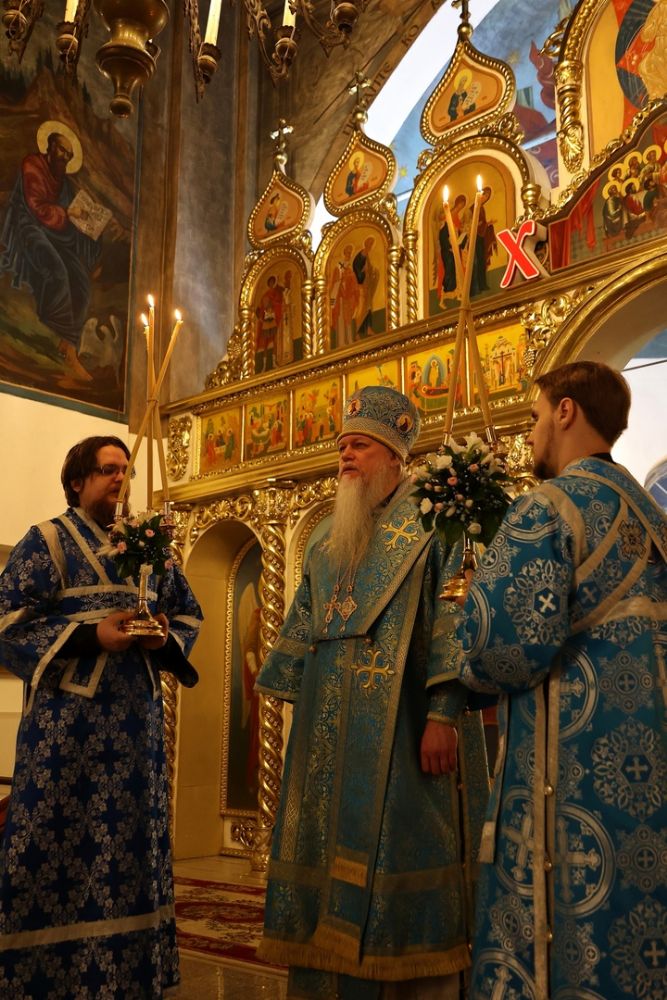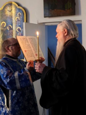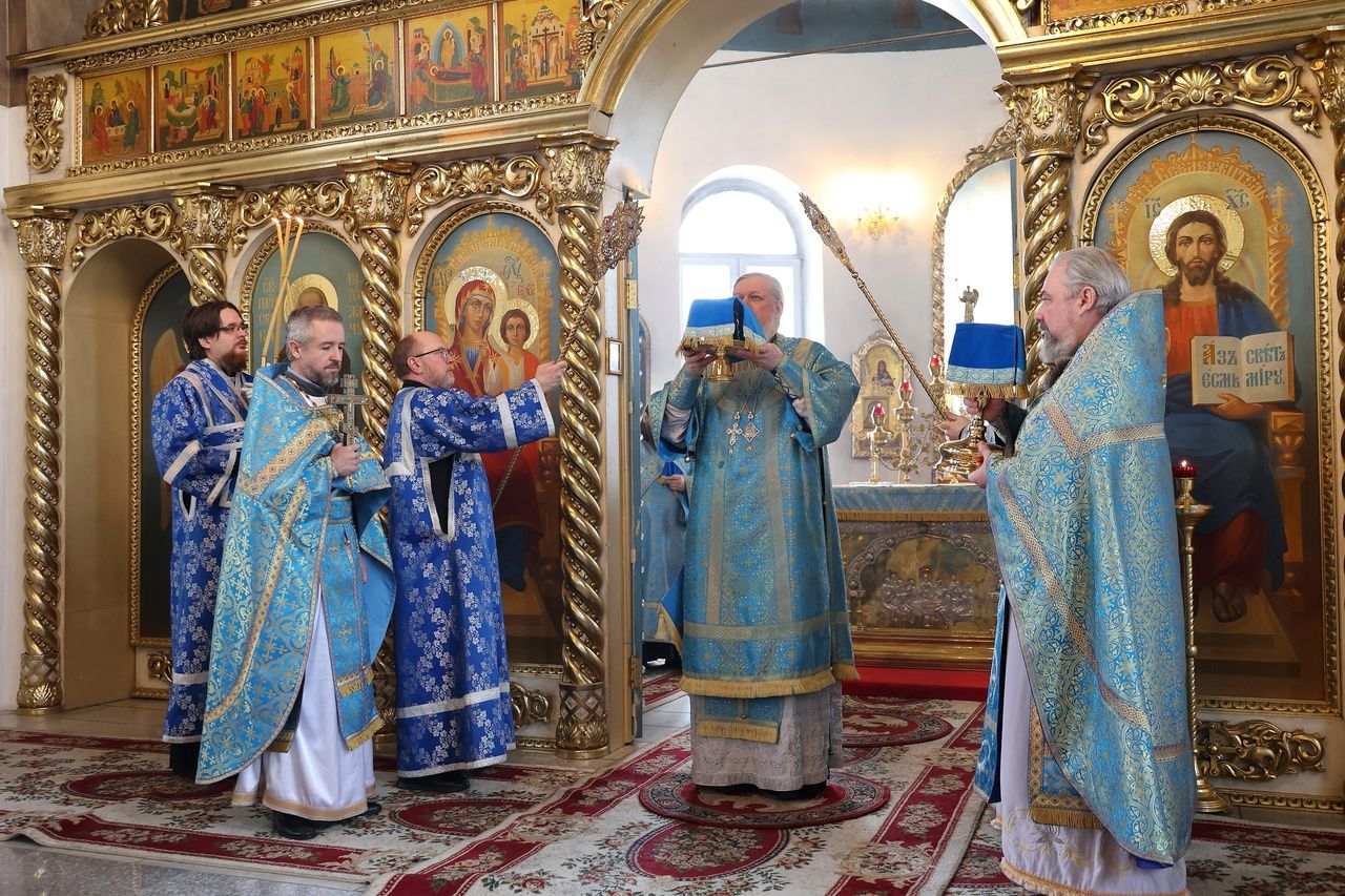 Его Преосвященству сослужили клирики кафедрального собора. Песнопения исполнял архиерейский хор.