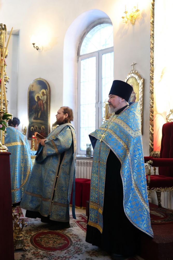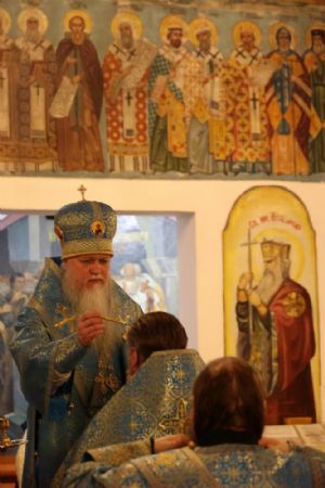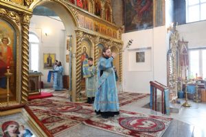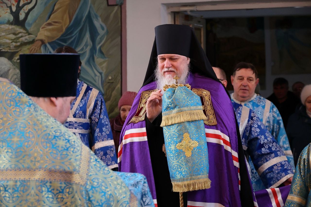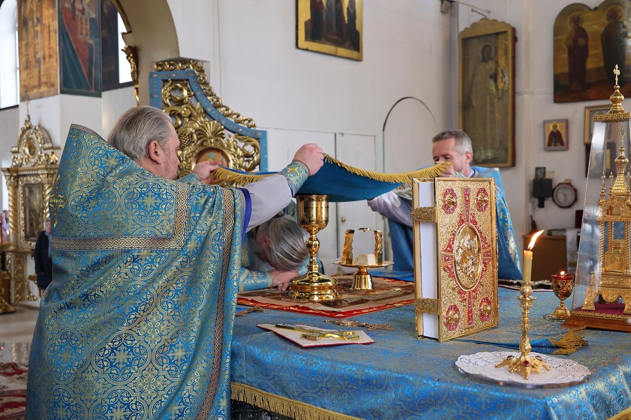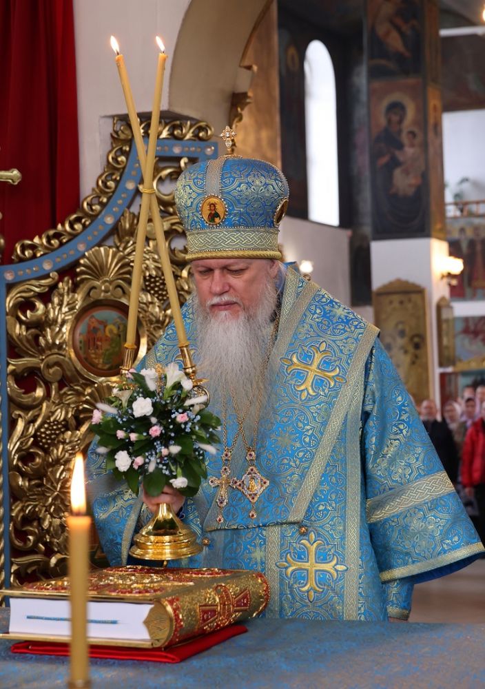 Его Преосвященству сослужили клирики кафедрального собора. Песнопения исполнял архиерейский хор.