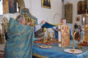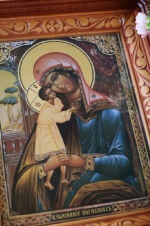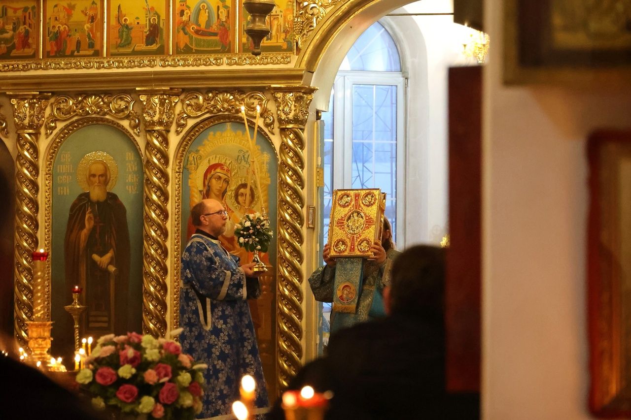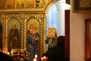 По окончании Литургии духовенство совершило славление перед иконой Божией Матери «Взыскание погибших», после чего владыка Феофан обратился к верующим с проповедью, рассказав об истории празднуемого образа Богородицы «Взыскание погибших, о чудесах, явленных по молитвам перед ним.