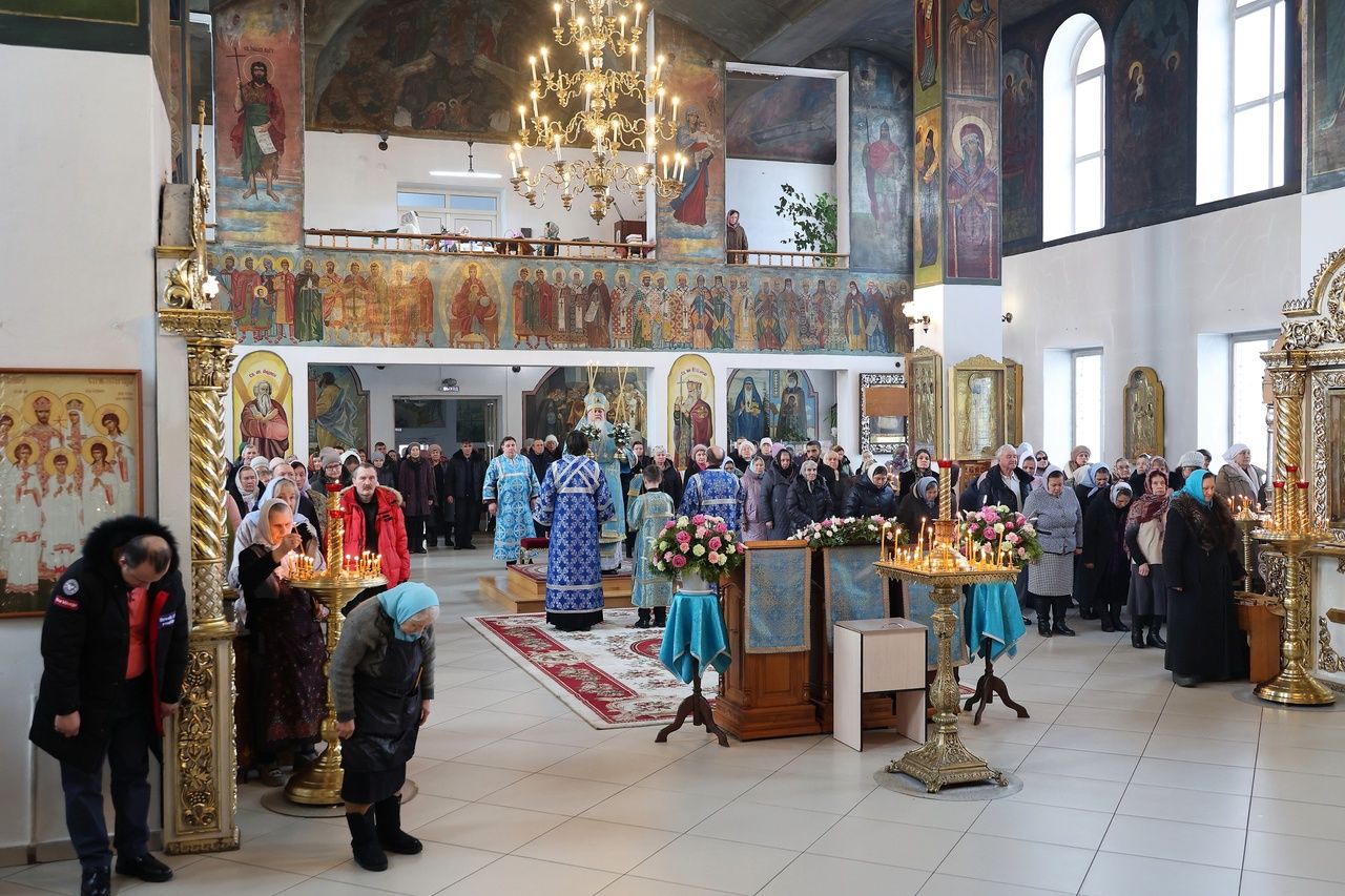 18 февраля, в Неделю 37-ю по Пятидесятнице, епископ Волжский и Сернурский Феофан совершил Божественную литургию, а накануне вечером – всенощное бдение в Никольском кафедральном соборе г. Волжска.