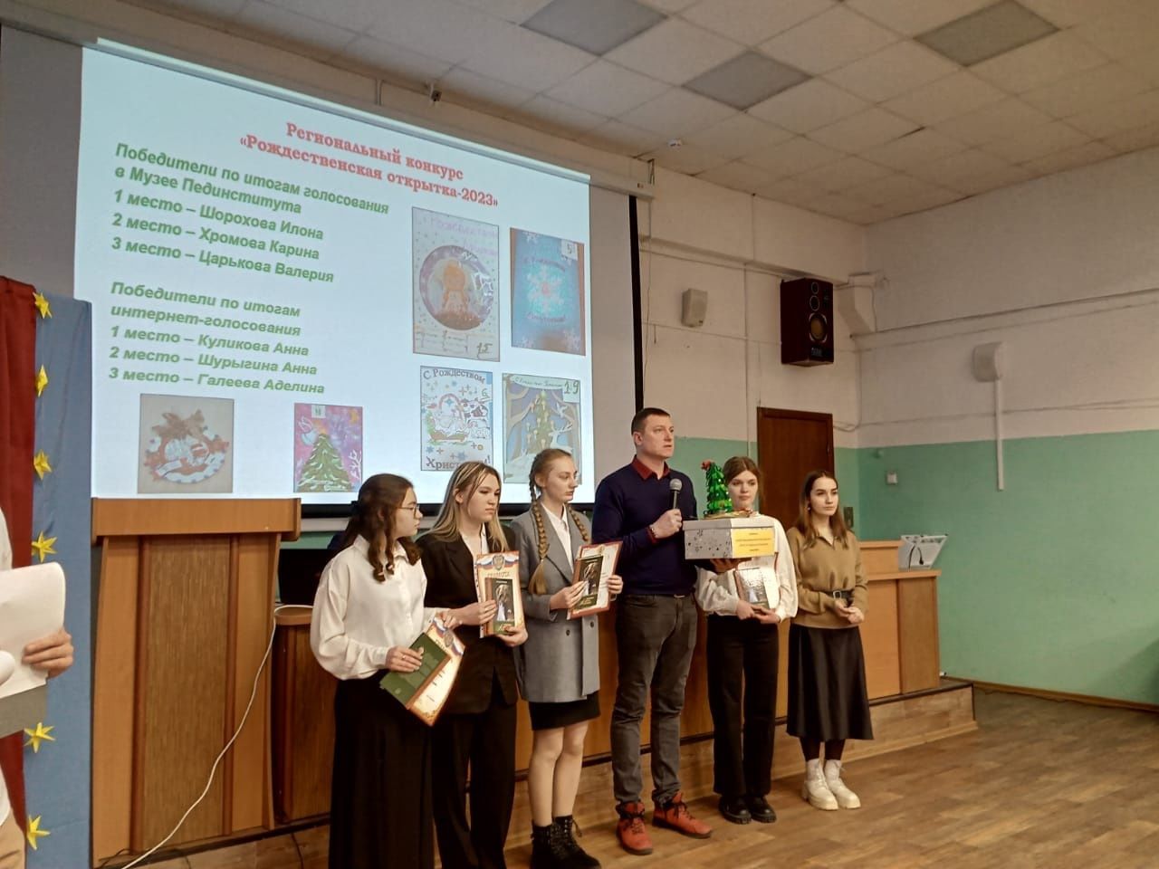 Также на мероприятии состоялось награждение победителей прошедшего в декабре 2023 года конкурса «Рождественская открытка» среди студентов МарГУ очной и заочной формы обучения – авторские открытки были к празднику Рождества Христова бойцам СВО.