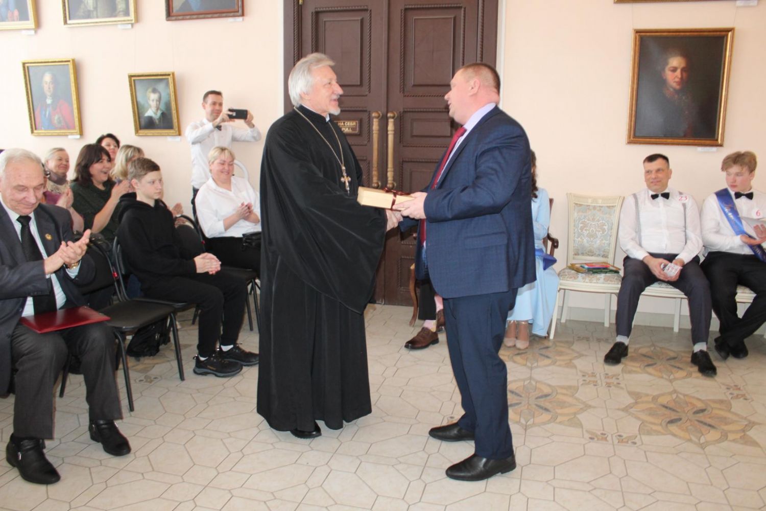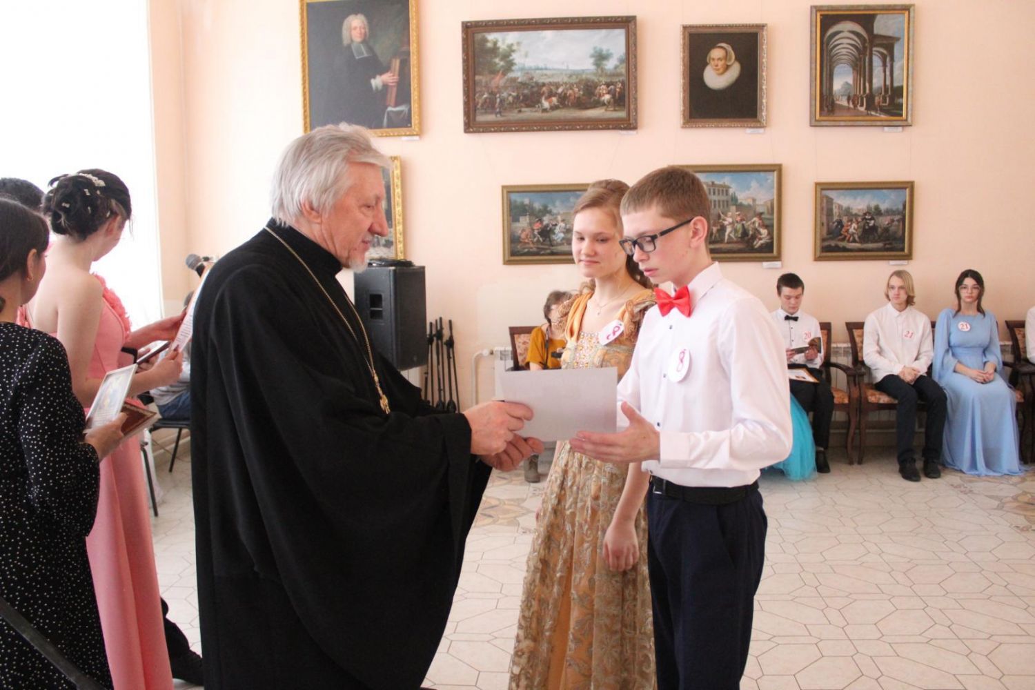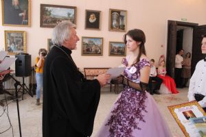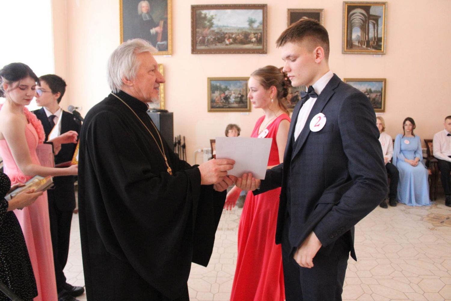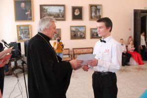 И вот, вручаются награды по номинациям: звания «Лучшая танцевальная пара» удостоены Михаил Сорокин и Арина Иванова; «Блистательная пара» – Вадим Иванов и Дарья Кисунина; «Галантный кавалер» – Александр Зобнин; «Очаровательное бальное платье» – Ульяна Тупикова. Также несколько пар были отмечены специальными призами. И все без исключения участники бала получили памятные дипломы и православные книги в подарок.