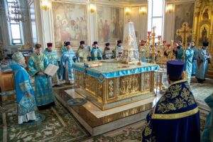 В завершающий день форума приехавшие на молодежный слет клирики сослужили митрополиту Зиновию за воскресной Божественной литургией в кафедральном соборе святого праведного воина Феодора Ушакова. За торжественным богослужением молились миряне, которые также приехали на «Пересвет» со всех регионов и епархий ПФО.