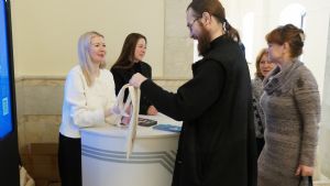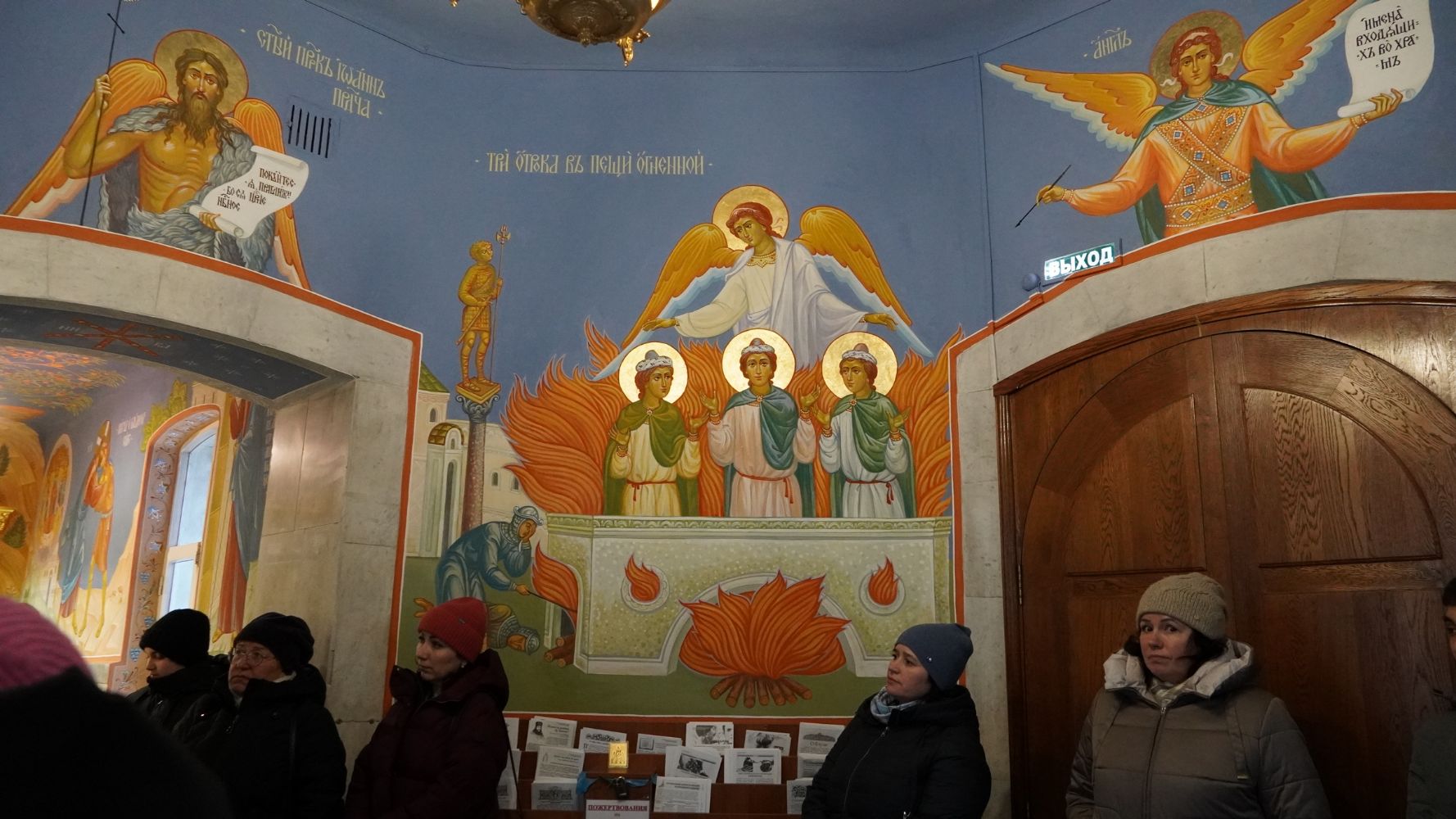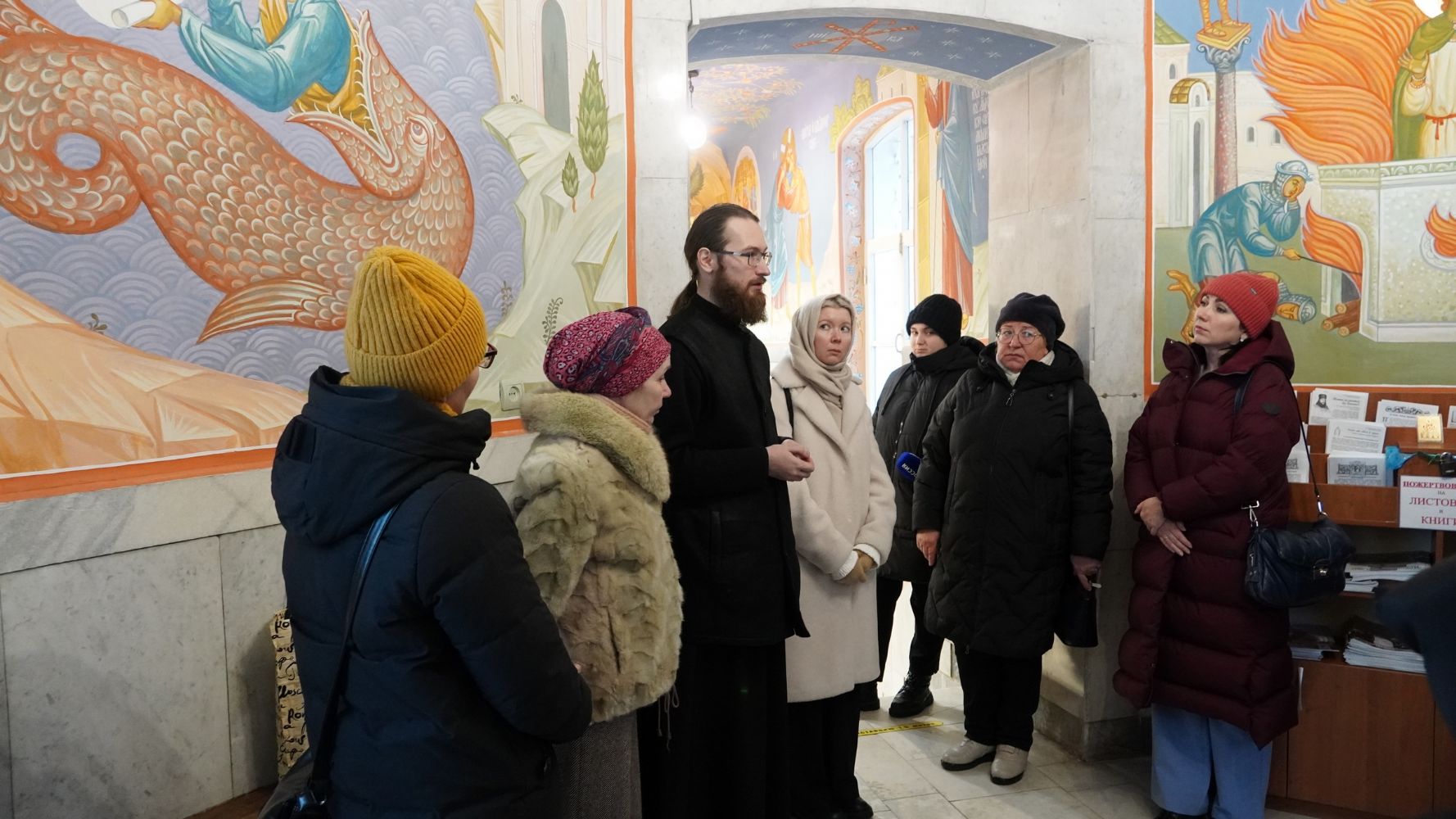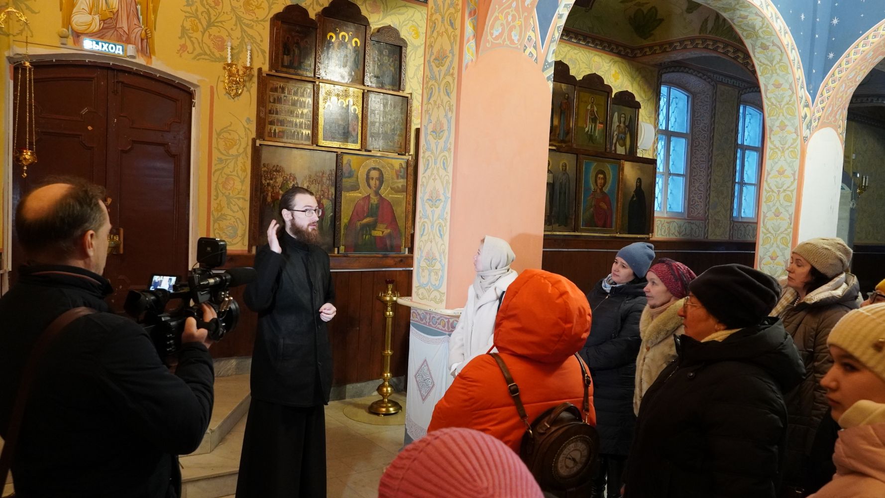 Завершился день в Воскресенской церкви Йошкар-Олы, расположенной на территории Вознесенского собора. Директор паломнической службы «Елеон», помощник настоятеля Вознесенского собора по миссионерской работе чтец Григорий Михеев представил собравшимся концепцию новых настенных росписей, рассказал про ветхозаветные прообразы страданий и воскресения Христа и напомнил историю устроения этого храма. В завершение экскурсии Григорий Николаевич поблагодарил Туристско-информационный центр Йошкар-Олы и всех организаторов за многолетнее сотрудничество и подарил всем участникам экскурсии настенные календари на текущий год.